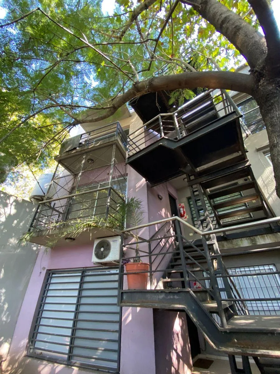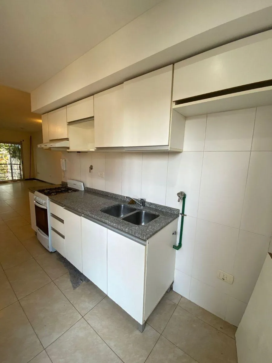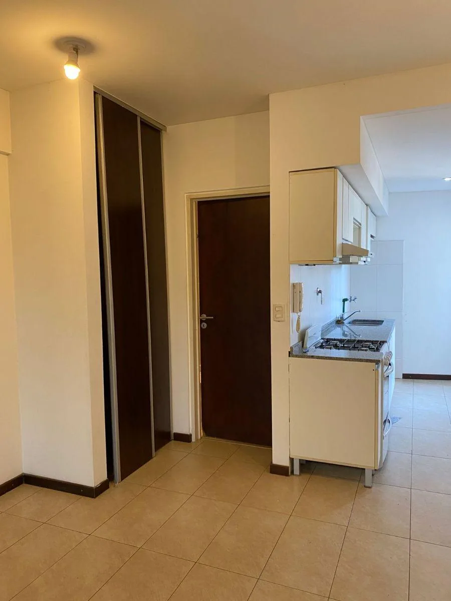 Kitnet no 1º andar, acessada por escada, com ambiente integrado e balcão de frente para a rua. Inclui armário com portas de correr, banheiro completo e cozinha semi-integrada com alacena e armário inferior, além de espaço para máquina de lavar. Aluguel + condomínio (com AYSA) + ABL + Edesur + Metrogas + seguro contra incêndio. Contrato de 24 meses com reajuste a cada 4 meses pelo índice ICL; não são aceitos animais de estimação.