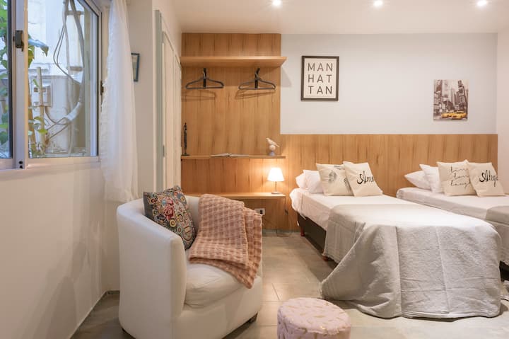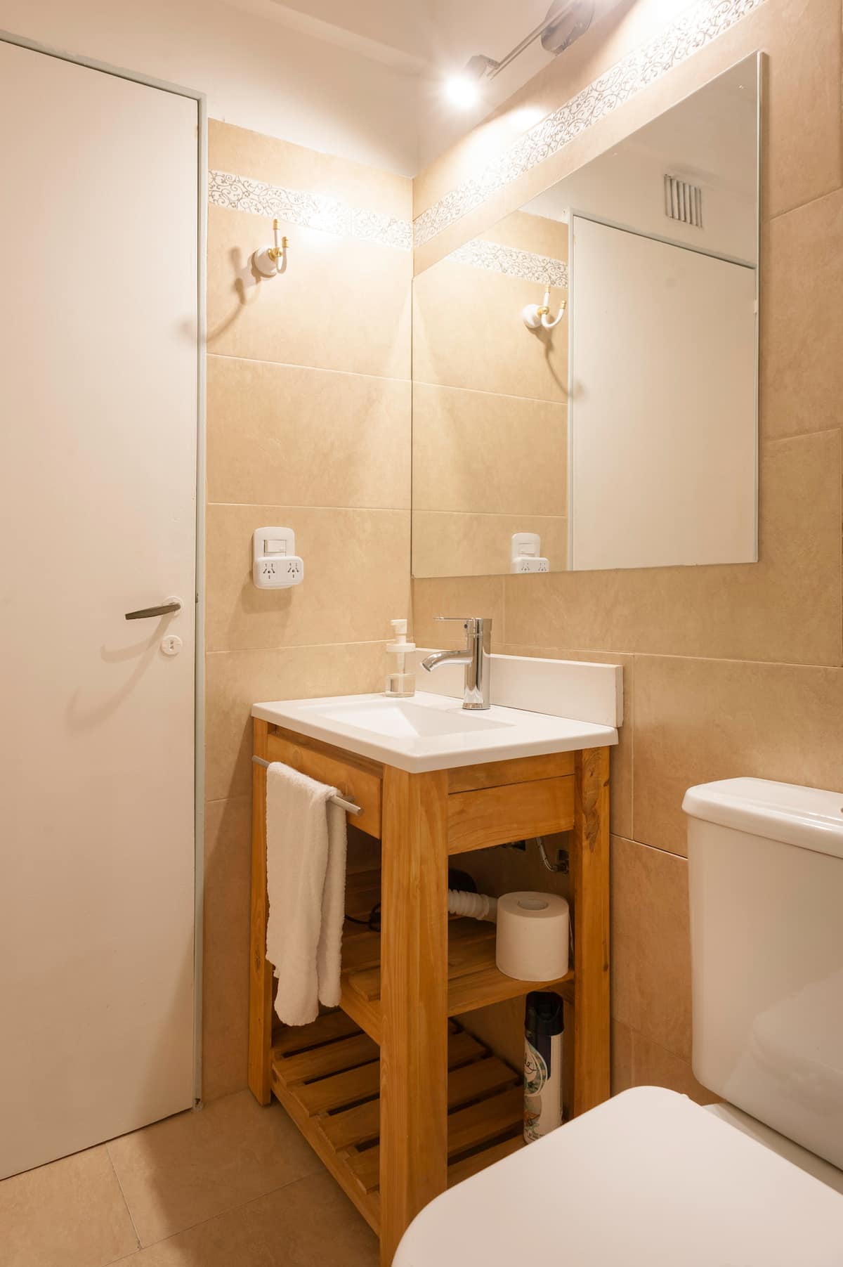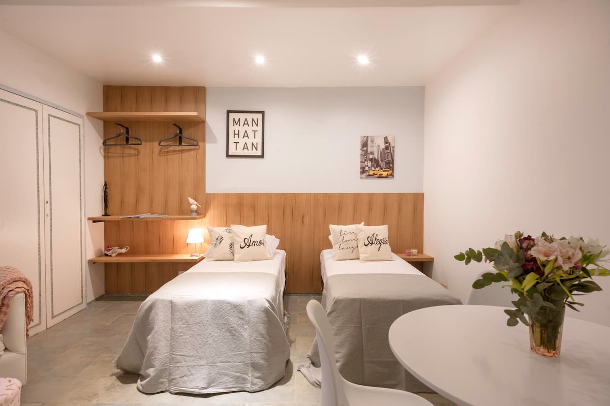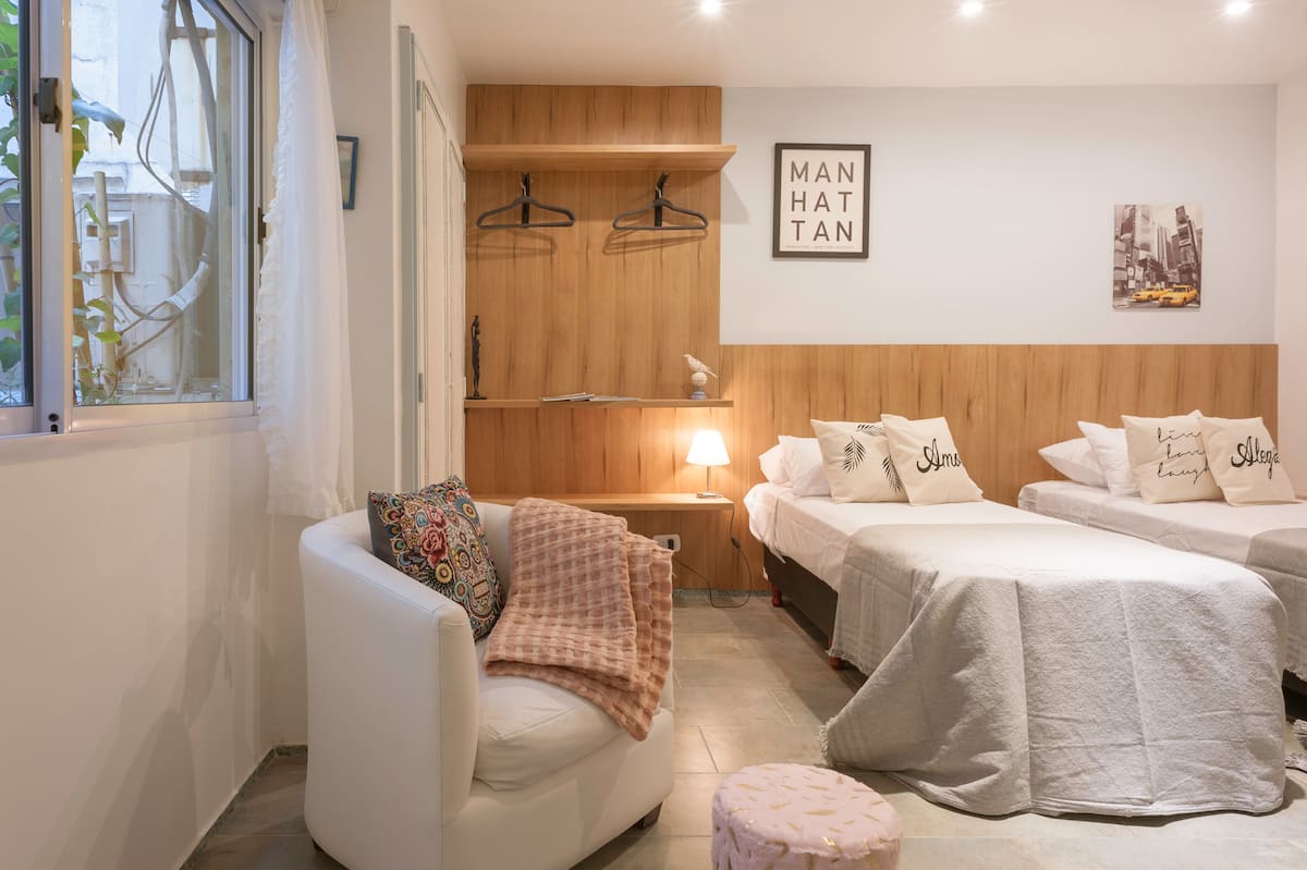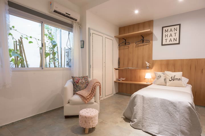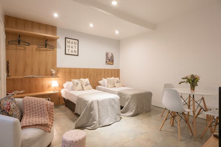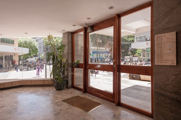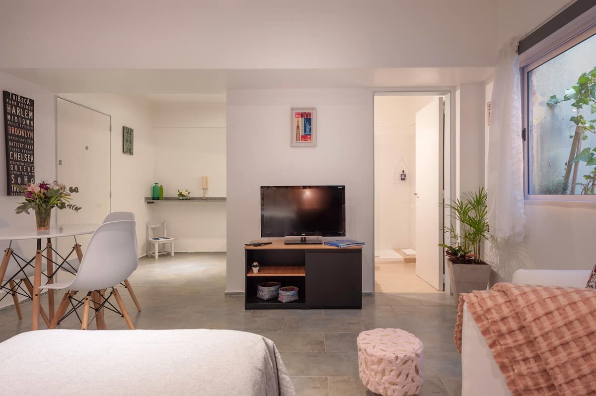 Studio de 30 m² em Recoleta, reformado em novembro de 2022. Possui janela voltada para um pátio interno, com bastante iluminação. O apartamento inclui banheiro e cozinha reformada, com cama e itens de roupa de cama descritos na publicação.