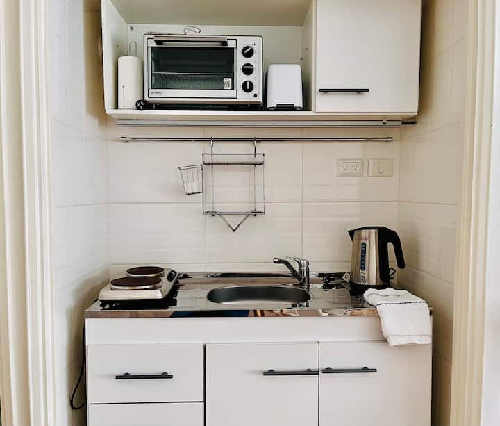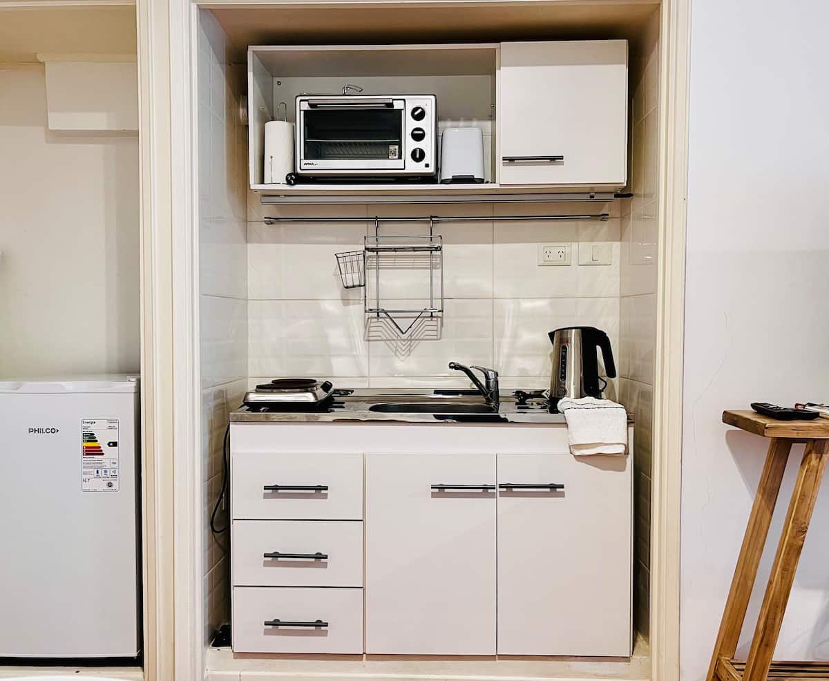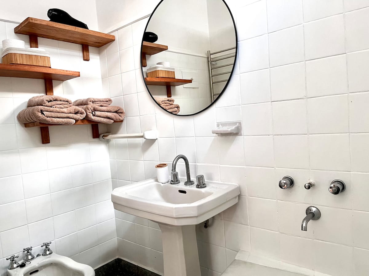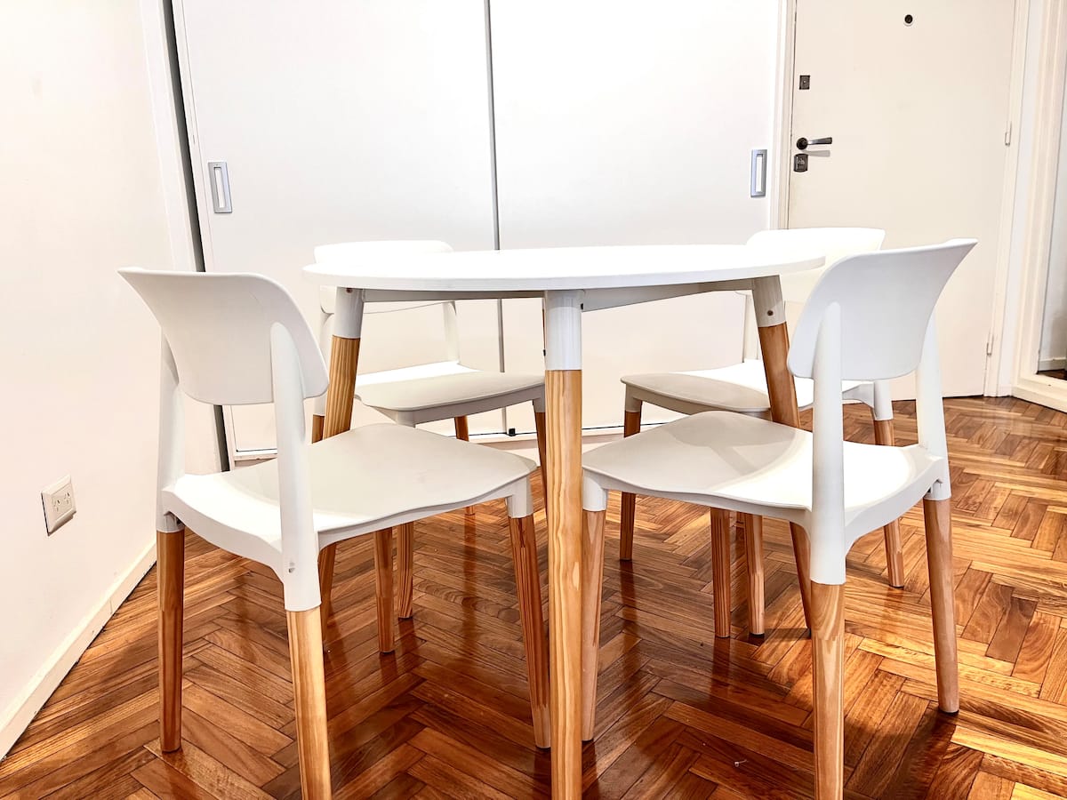 Kitnet em Recoleta, com decoração descrita como agradável. Disponibiliza TV e WiFi, armário grande, além de utensílios como torradeira e chaleira elétrica. A unidade fica na Calle Junín, a uma distância a pé das atrações de Recoleta, da Av. Santa Fe, e de pontos como o Tourist Bus. Para uso de sofá-cama, é necessário solicitar a montagem antes da chegada.