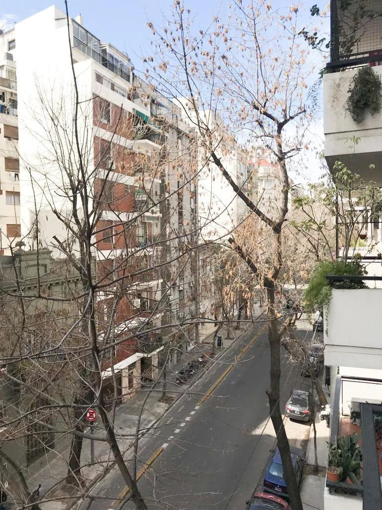 Kitnet com varanda no 4º andar, de frente para a rua, em Recoleta. O ambiente tem saída para a varanda e conta com cortinas black out; a cozinha é separada a gás, com armários acima e abaixo da bancada e geladeira. O imóvel tem banheiro completo e ar-condicionado (frio/calor). Condomínio aproximado de ARS 178.000. Locação por 2 anos, com ajuste a cada 4 meses pelo IPC (se aceita seguro de caução). Localização próxima à Subte D (estação Agüero) e a Av. Coronel Díaz e Av. Pueyrredón (3 quadras).