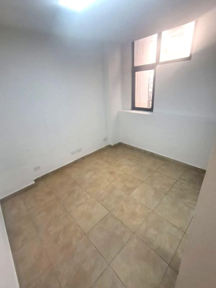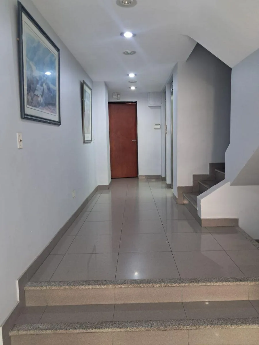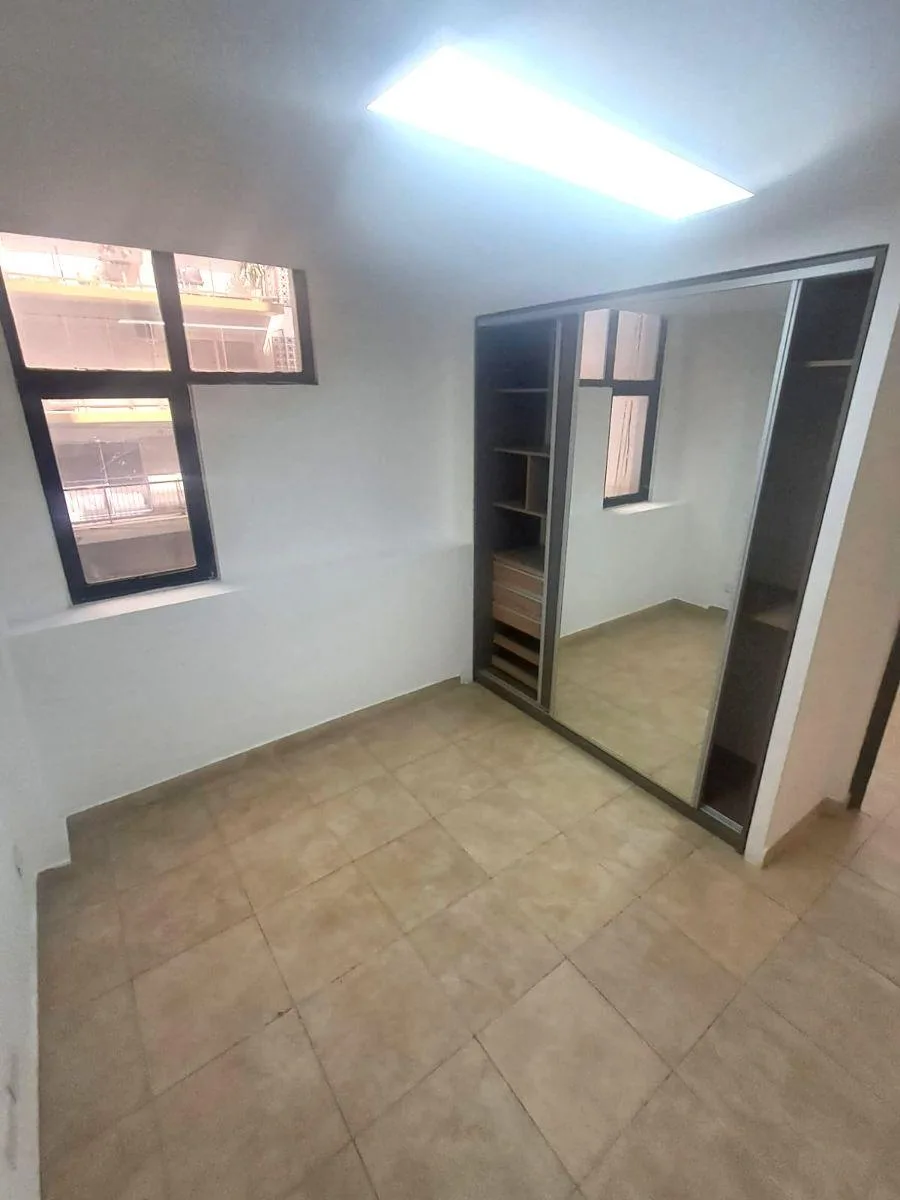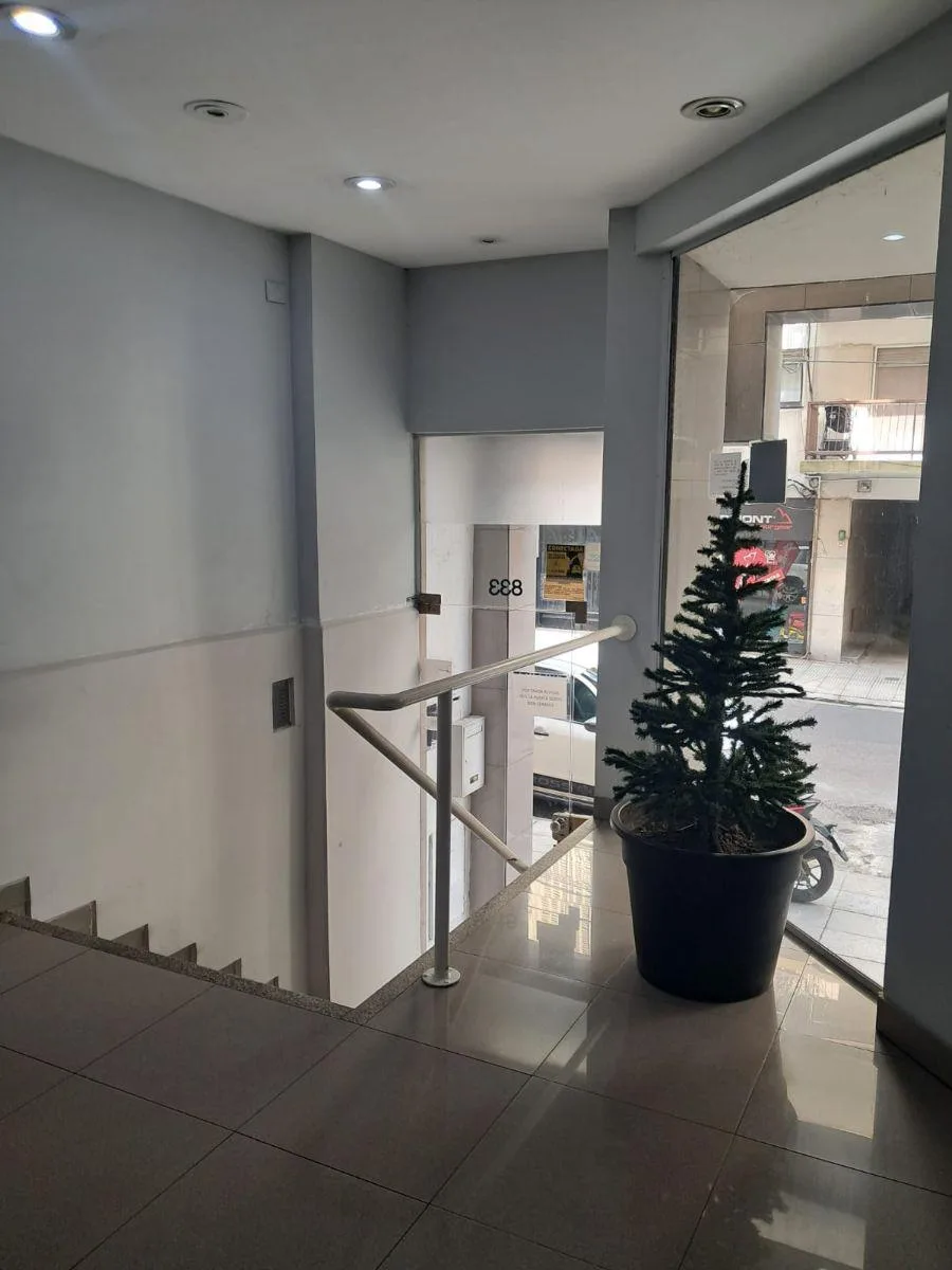 Apartamento de dois ambientes com 45 m², no primeiro piso, de frente para a rua, em prédio com 8 andares e 2 unidades por andar. Ambientes com living e área de jantar com cozinha integrada (5 x 4) e dormitório com armários (3 x 3), além de 1 banheiro completo. Todos os serviços são elétricos; apto para uso profissional ou moradia. Aluguel de $ 540.000 e condomínio de $ 170.000, com fiança mediante garantia de capital ou seguro de caución, comprovação de renda e contrato de 2 anos com reajustes t