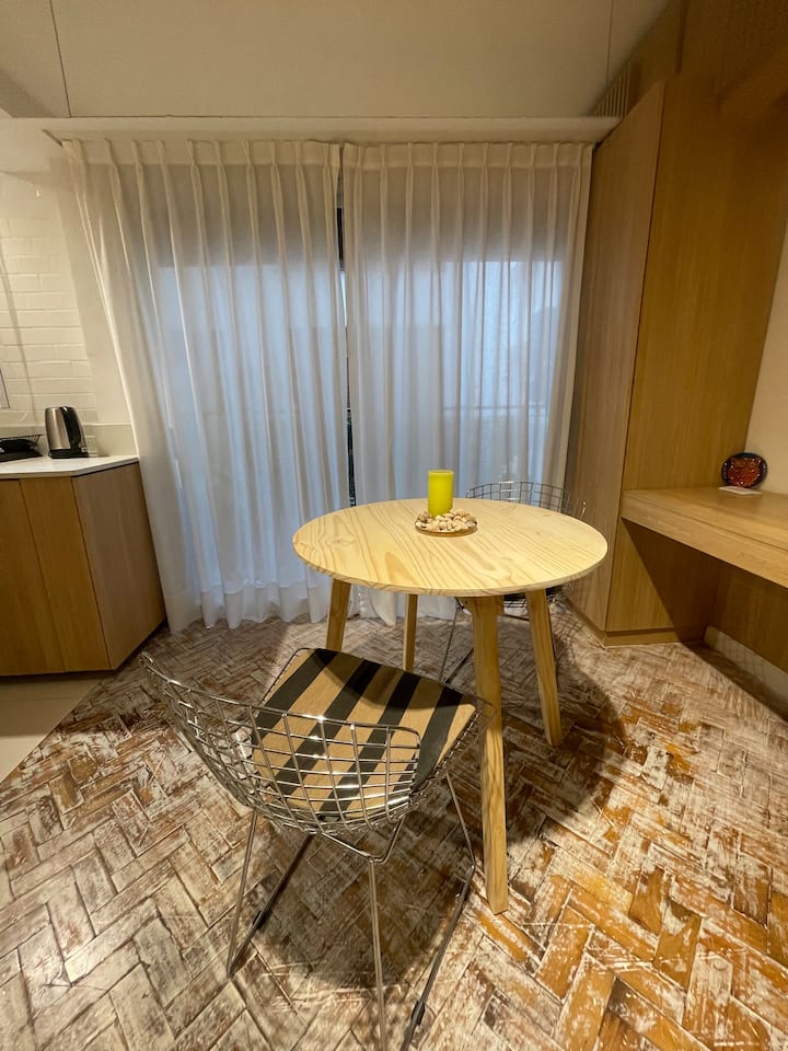 Apartamento studio em Recoleta, a 4 blocos da Av. Santa Fe e do subte, e a 4 blocos da Av. Las Heras. Possui uma cama de casal com sistema para levantar integrada a um móvel, liberando espaço para circulação; é possível manter a cama fixa. A TV é smart, com acesso a plataformas, sem canais a cabo.