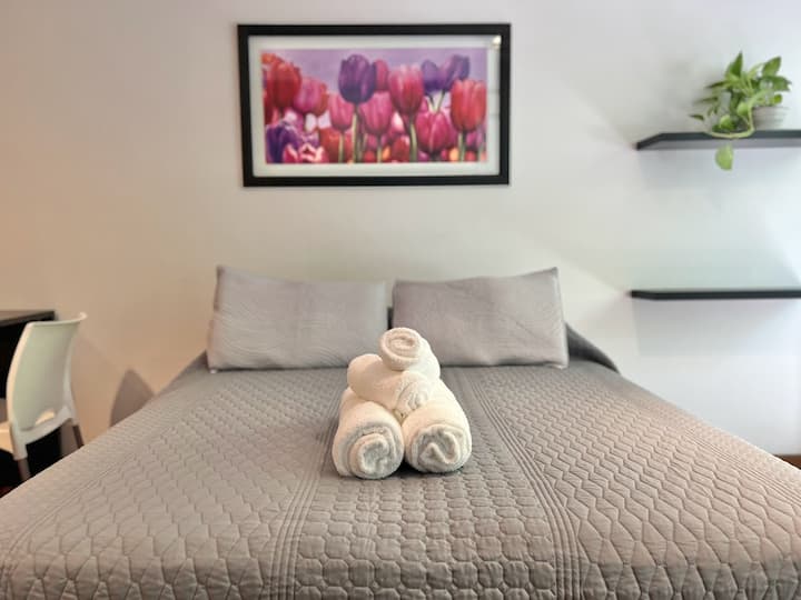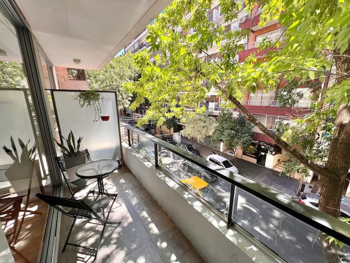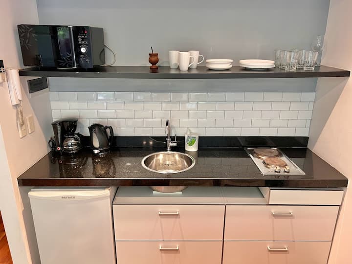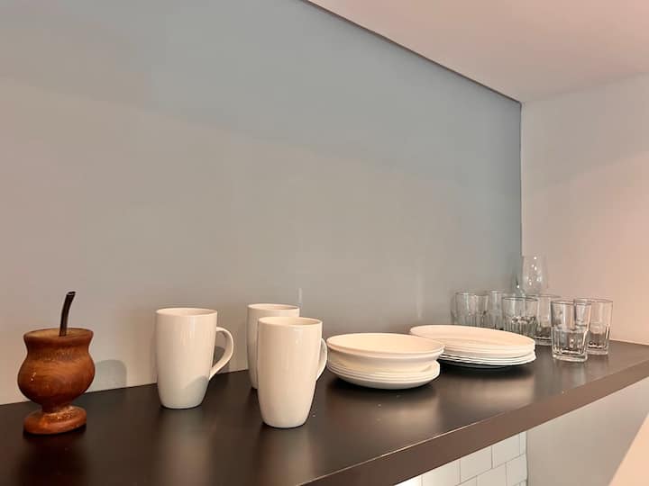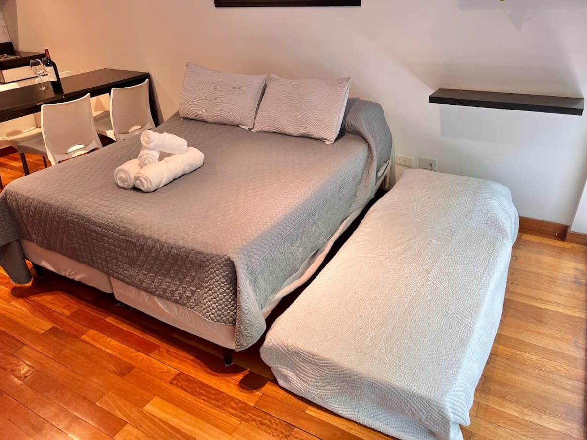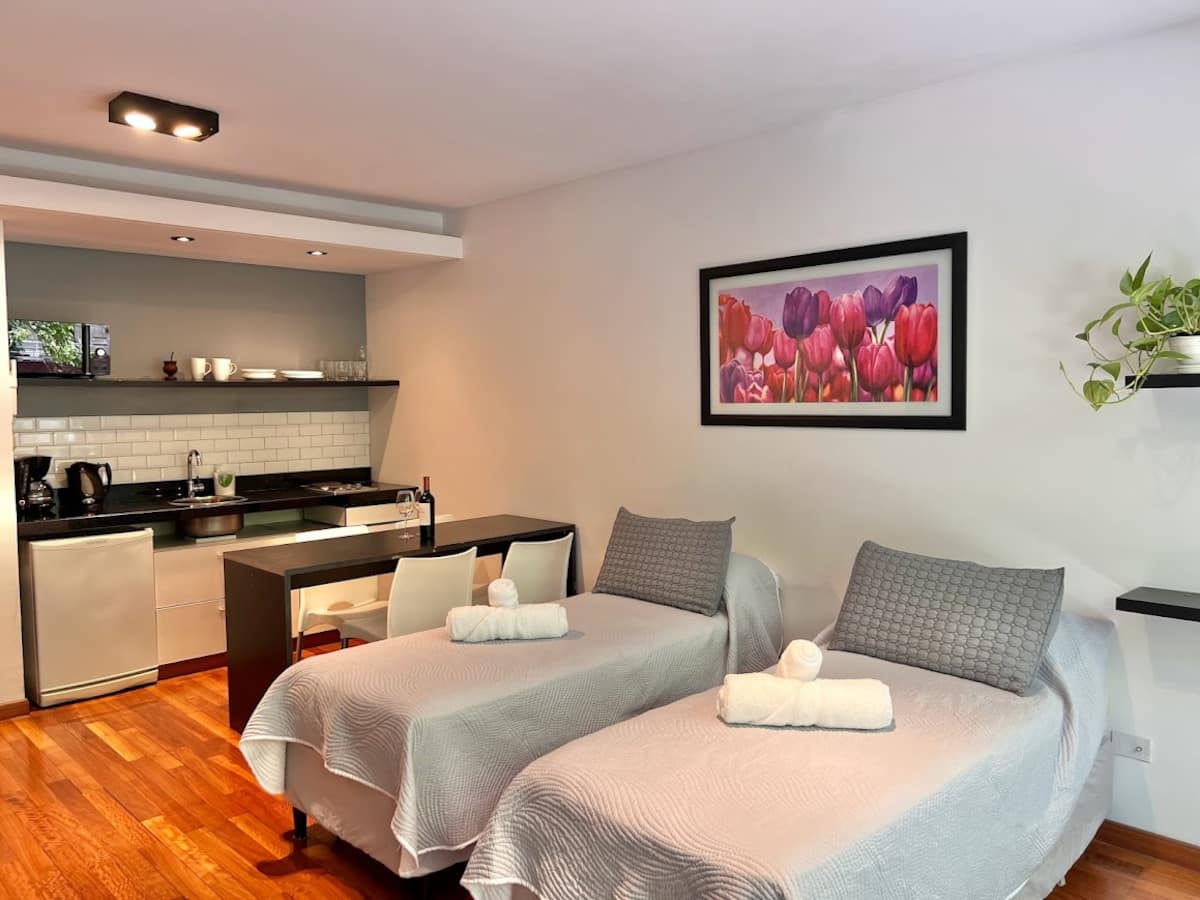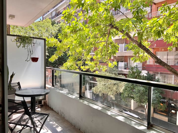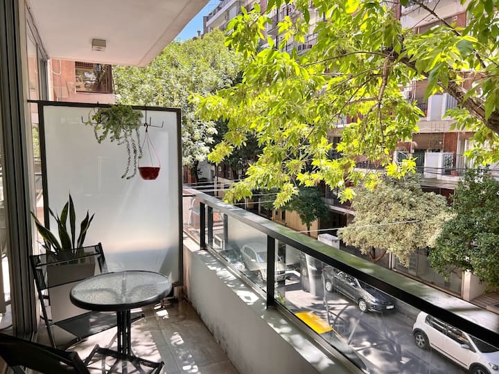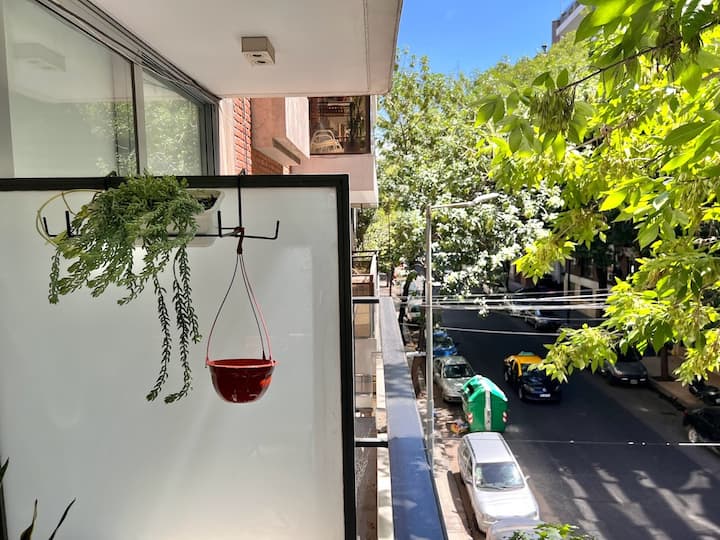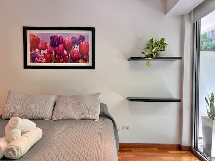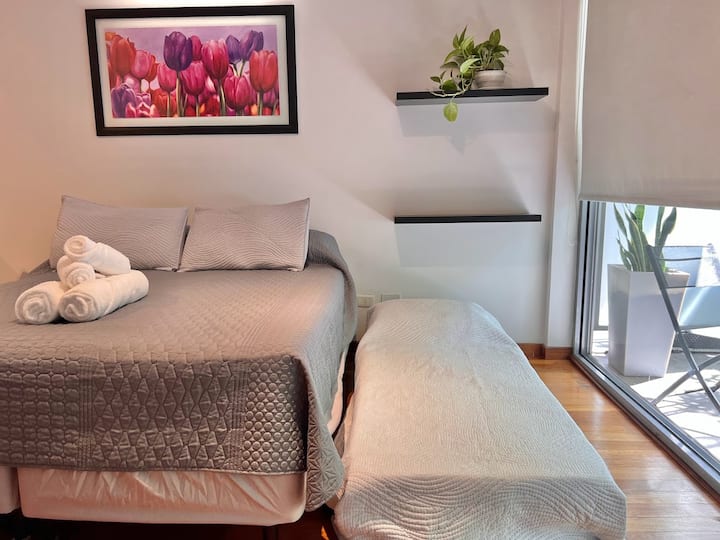 Studio (kitnet) em Recoleta, com varanda e voltado para a rua, em edifício moderno. Apartamento mobiliado e equipado, com cozinha completa, internet (wifi) e smart TV. Há área de lavanderia no prédio e setor de spa com sauna e piscina interna, com uso ao longo do ano.