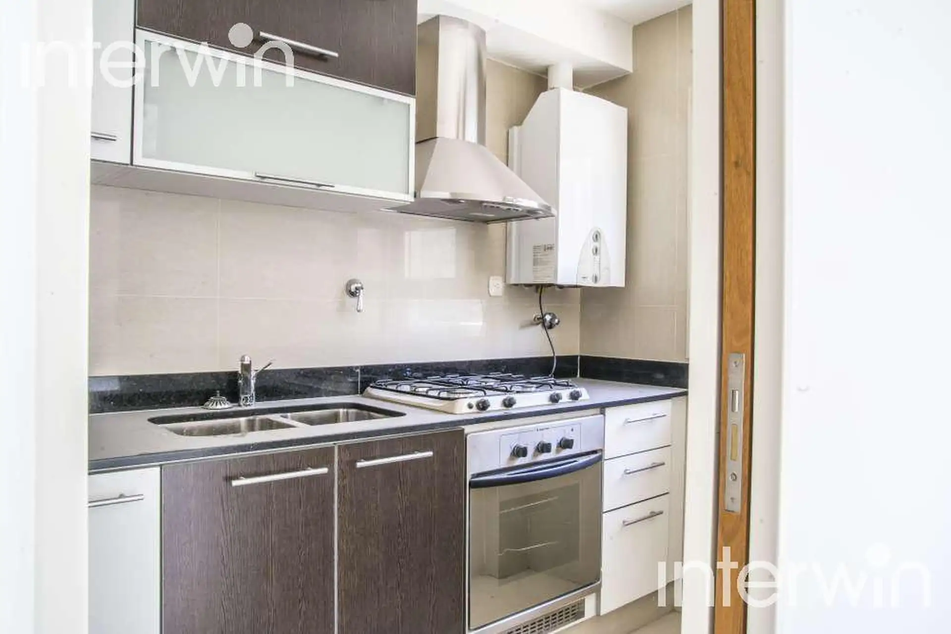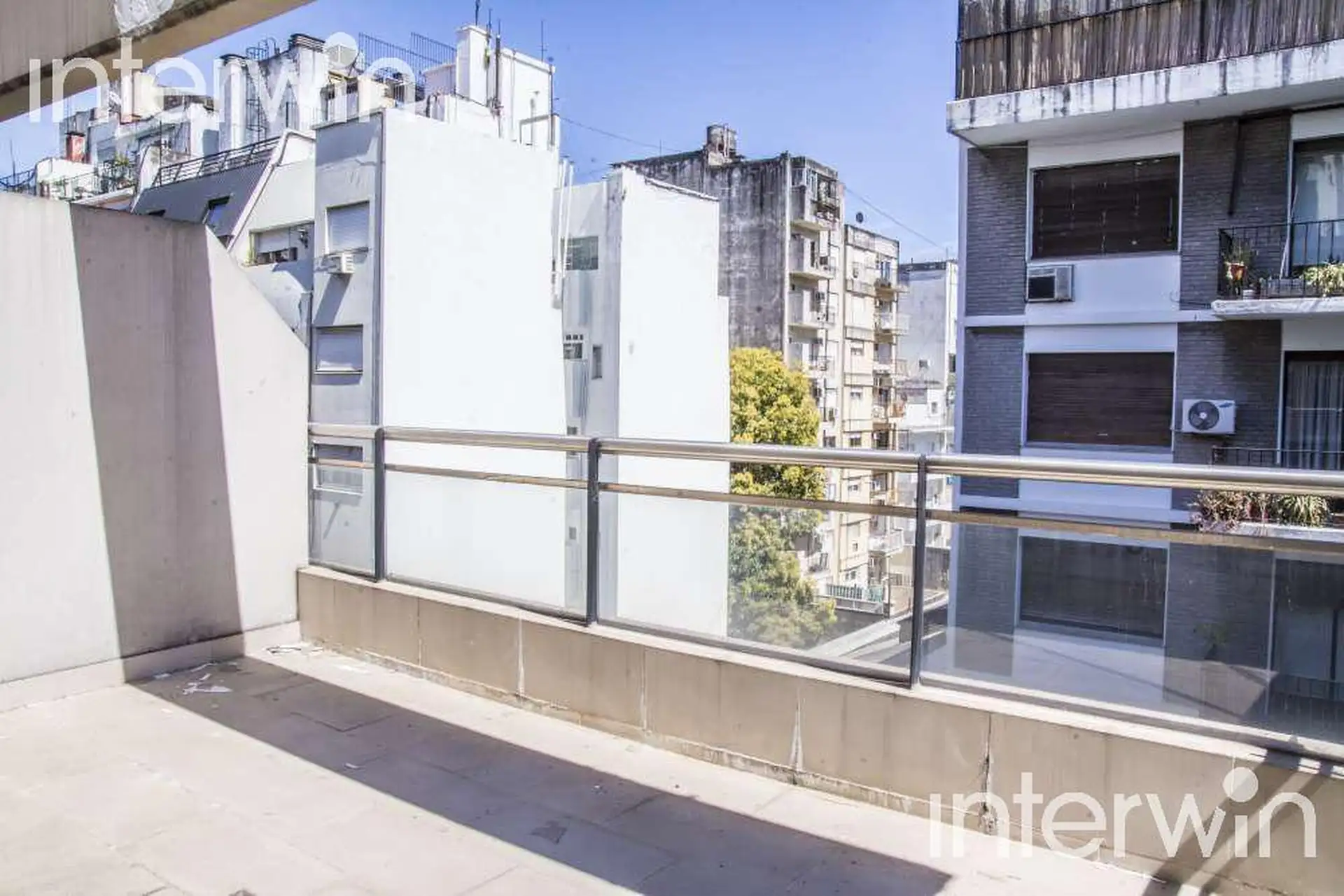 Kitnet em Recoleta, no 6º andar, de frente para a rua, em Azcuenaga, a 50 metros da Av. Santa Fe. É um apartamento para uso profissional. O prédio tem térreo e 8 andares, com subsolo para vagas de garagem. No último andar há piscina e solarium; também há salão de festas amplo com churrasqueira e lavanderia. A cozinha tem forno e cooktop Ariston em aço inoxidável. O aquecimento de água e a calefação são por caldeira individual Baxi. Há instalação para ar-condicionado tipo split, sem provisão de e