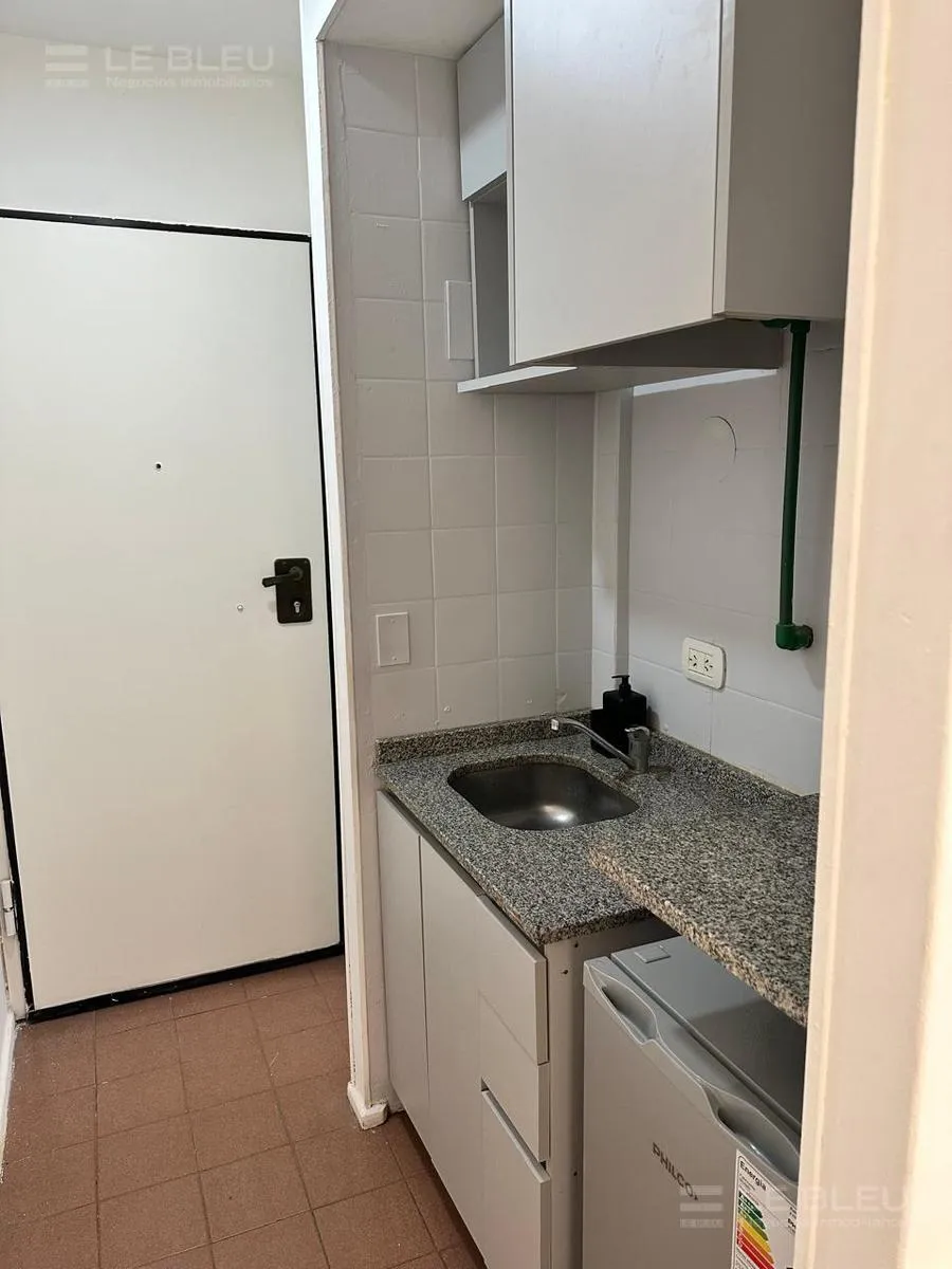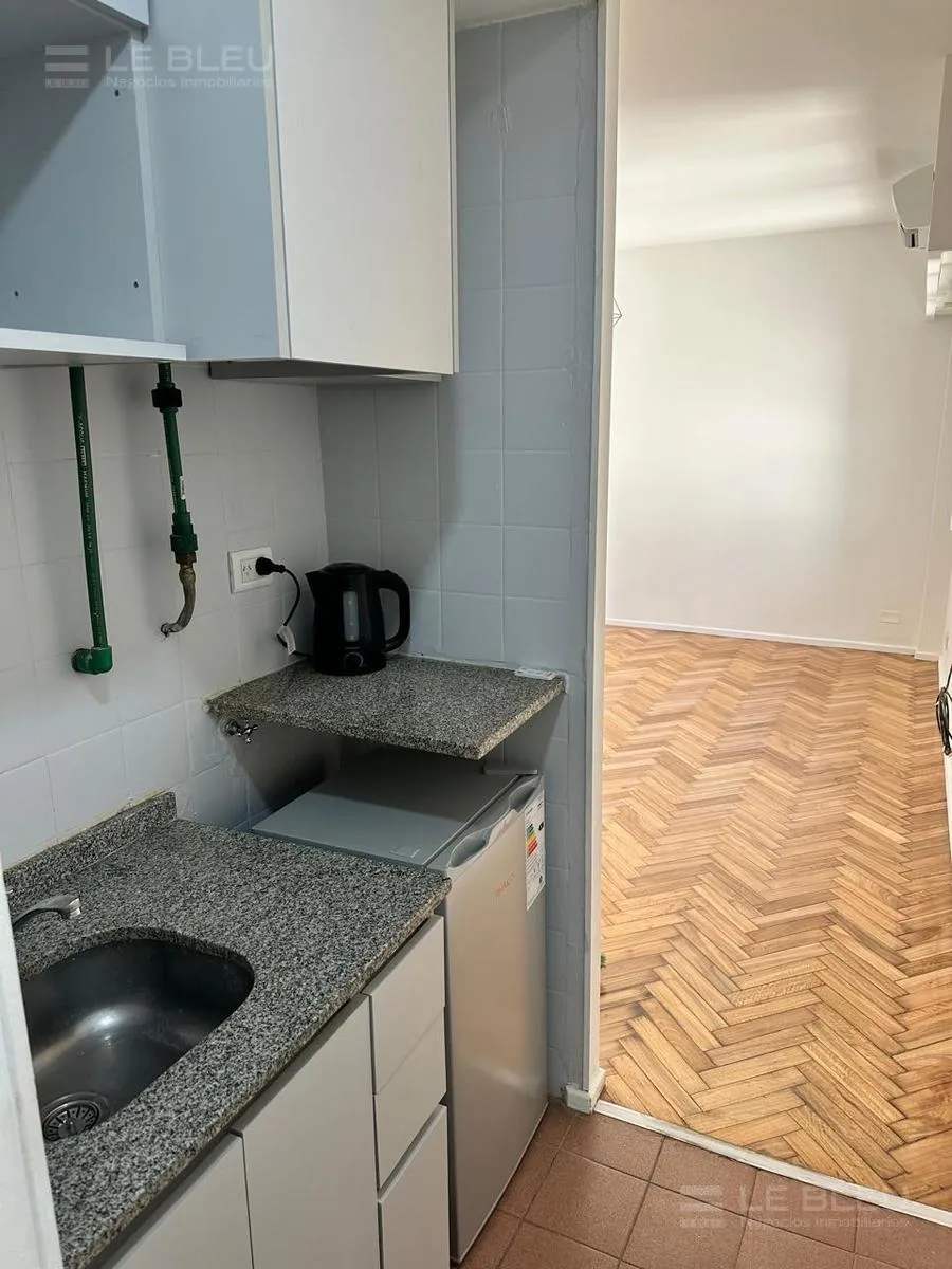 Kitnet em Recoleta, apto profissional, em bom estado. Cozinha separada com móveis novos (nunca habitados), geladeira Philco sob bancada e aquecimento por caloventor de parede. Banheiro completo, eletricidade totalmente elétrica e baixa despesa de condomínio. A locação é anual mediante garantia proprietária ou seguro de fiança; exige 1 mês de depósito e 1 mês de adiantamento, com reajuste trimestral a cada 3 meses pelo IPC.
