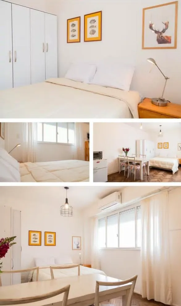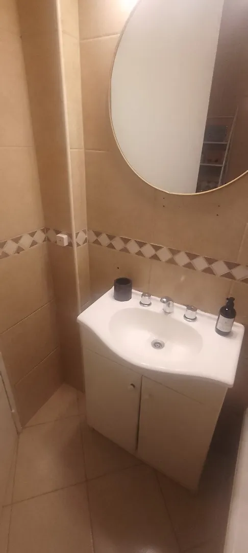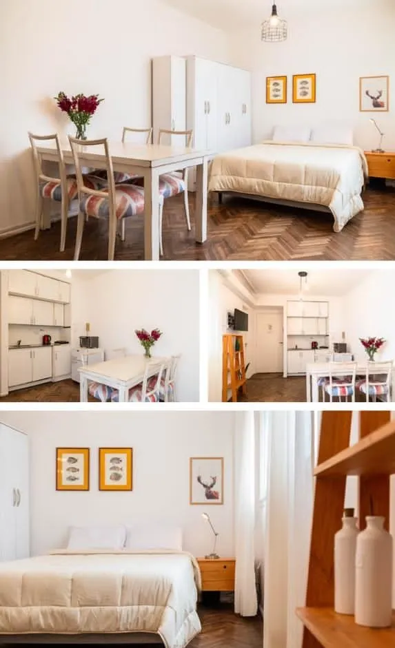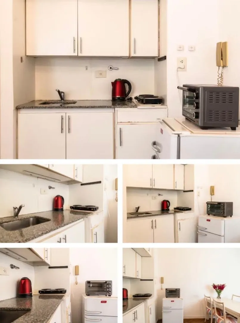 Kitnet mobiliada com 20 m² totais no 7º andar, de fundos. Cozinha integrada elétrica e banheiro completo. Há ar-condicionado e o edifício tem cerca de 50 anos, bem conservado. Locação temporária mínima de 3 meses e máxima de 1 ano; condomínio aprox. de $50.000. Regras de ocupação: até 2 pessoas. Requerem 1 mês adiantado e 1 mês de depósito, com aumentos trimestrais e comprovante de renda; para contratos de 1 ano ou mais, é solicitado seguro de caução ou garantia CABA.