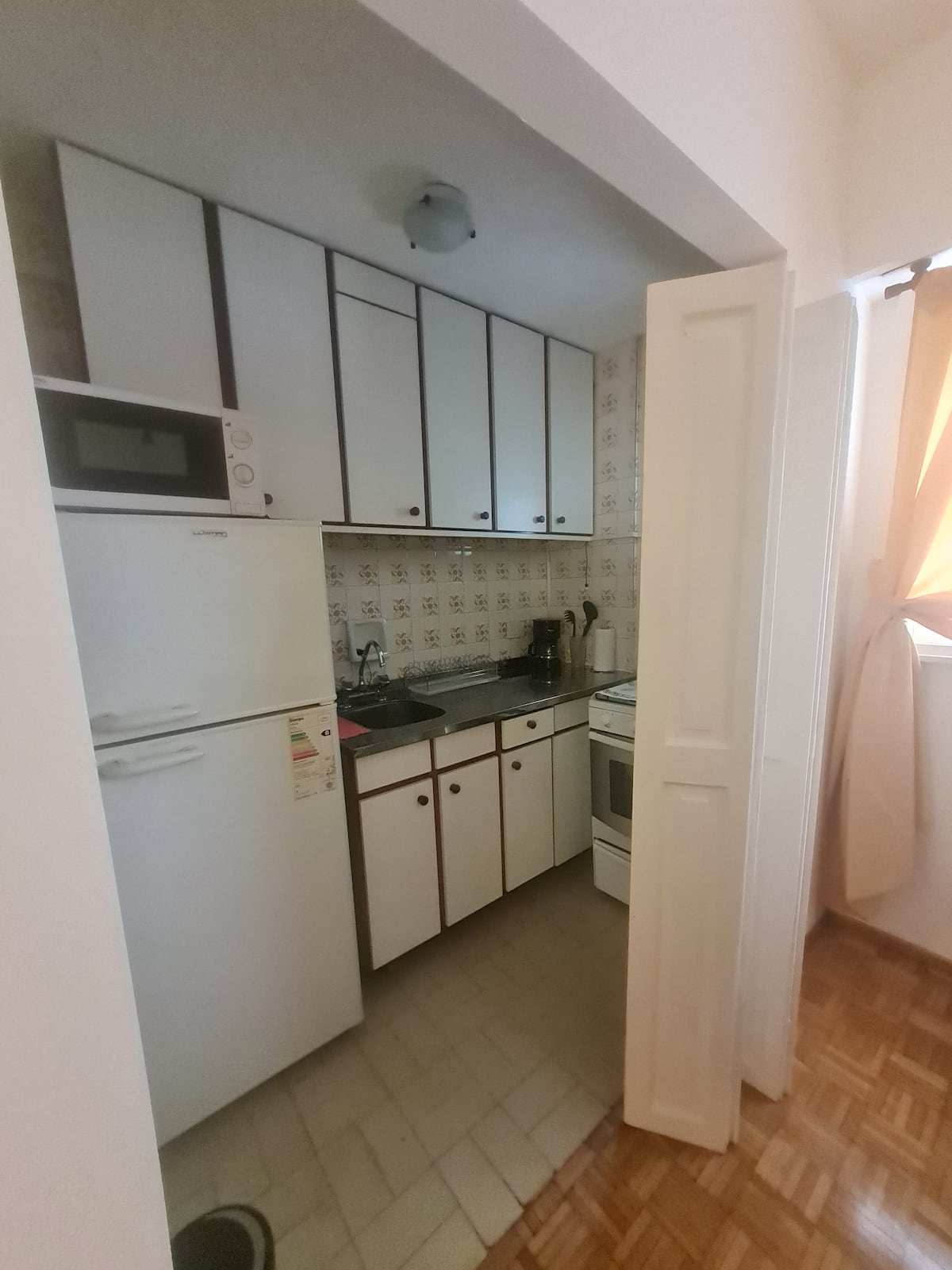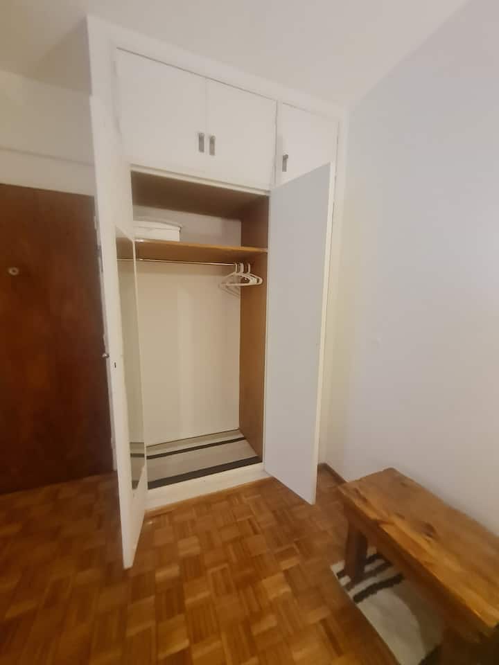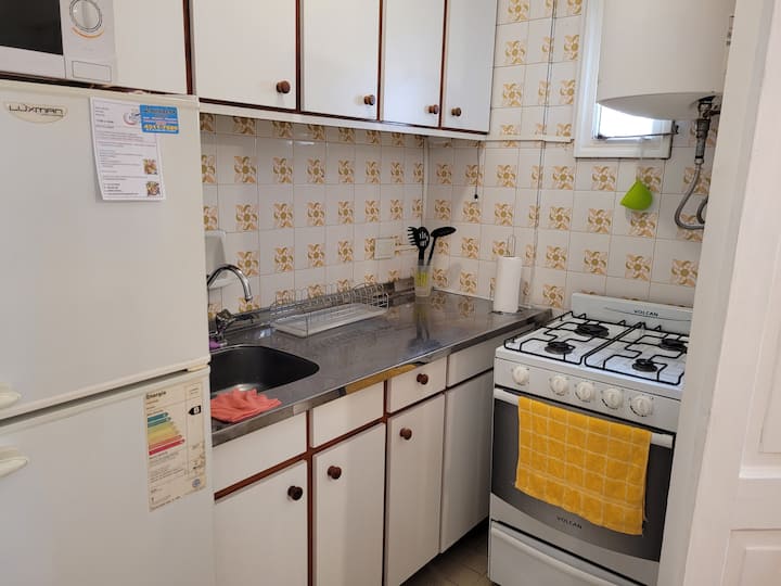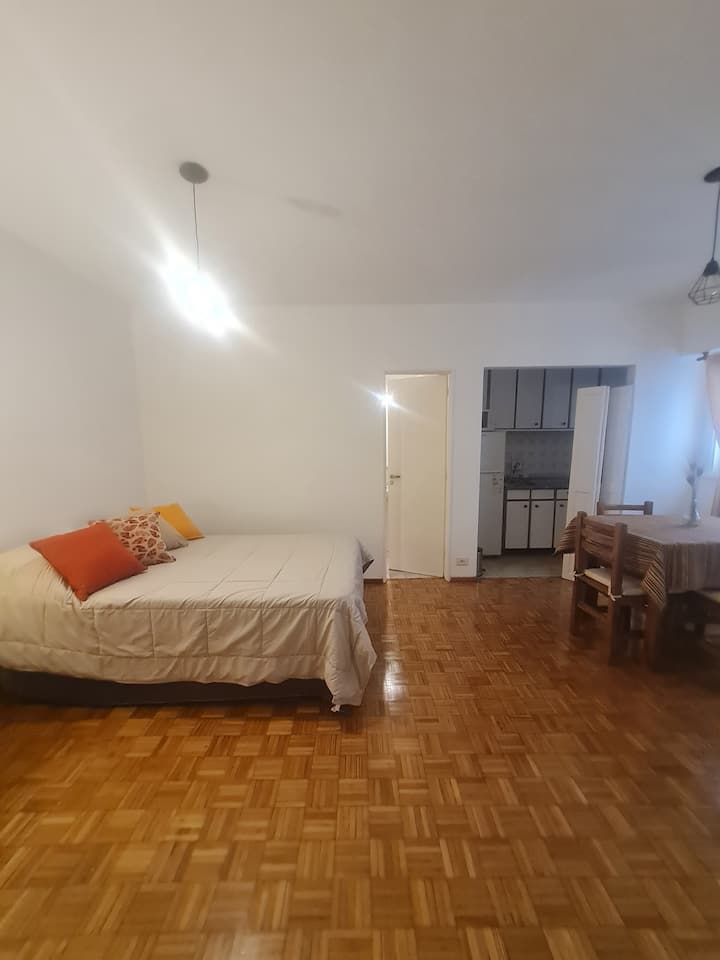 Kitnet mobiliada em Buenos Aires, no bairro Retiro. Fica a 1 quarteirão da Av. 9 de Julio e da Av. Santa Fe, com acesso a Teatro Colón e à Plaza San Martín, além do terminal de Retiro. O imóvel está totalmente equipado e inclui cozinha completa.