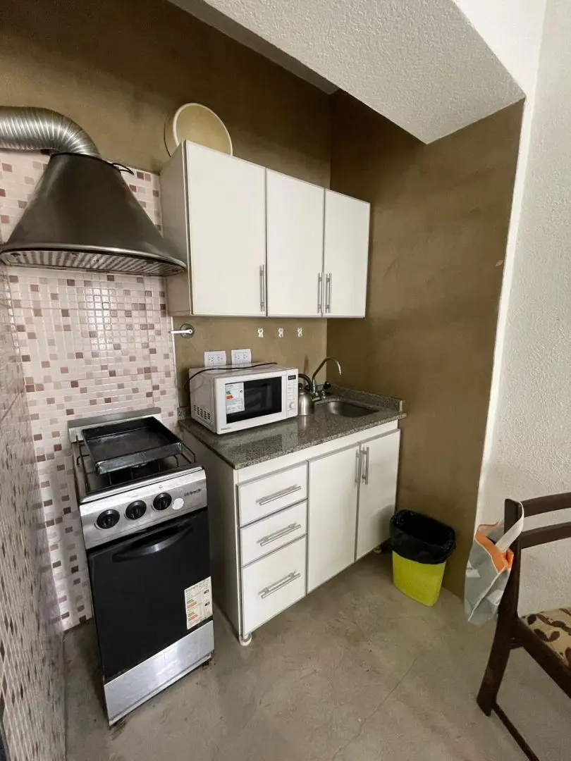 Kitnet (monoambiente) divisível em Recoleta, com cozinha integrada, área de living, quarto com armário e banheiro completo. Há área de lavanderia e espaço para armazenamento. Unidade mobiliada; contratação máxima de 6 meses. Depósito de USD 500 e necessidade de seguro-fiança ou pagamento antecipado da locação; não aceita animais.