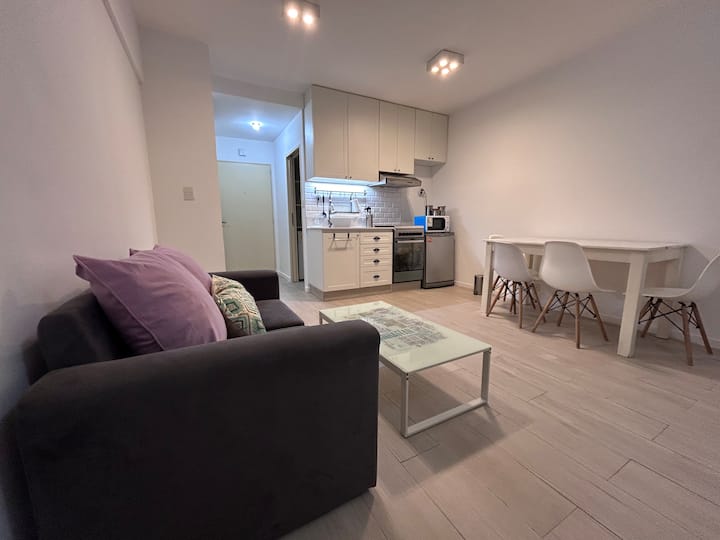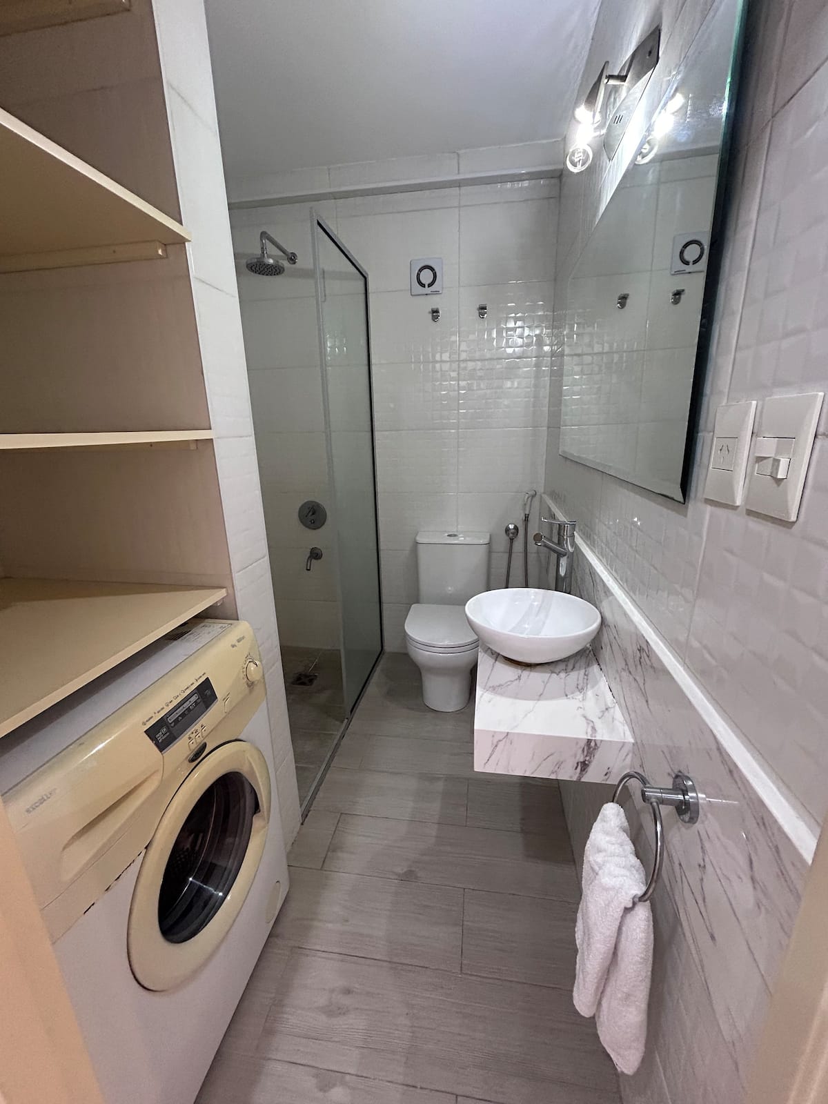 Apartamento em Retiro. A unidade conta com área de dormir tipo studio, banheiro completo e armário. O imóvel tem máquina de lavar, cozinha com utensílios, geladeira, ar-condicionado com função quente e fria, micro-ondas, torradeira, chaleira elétrica, TV a cabo com recursos de streaming, acesso Wi-Fi e armário para armazenamento.