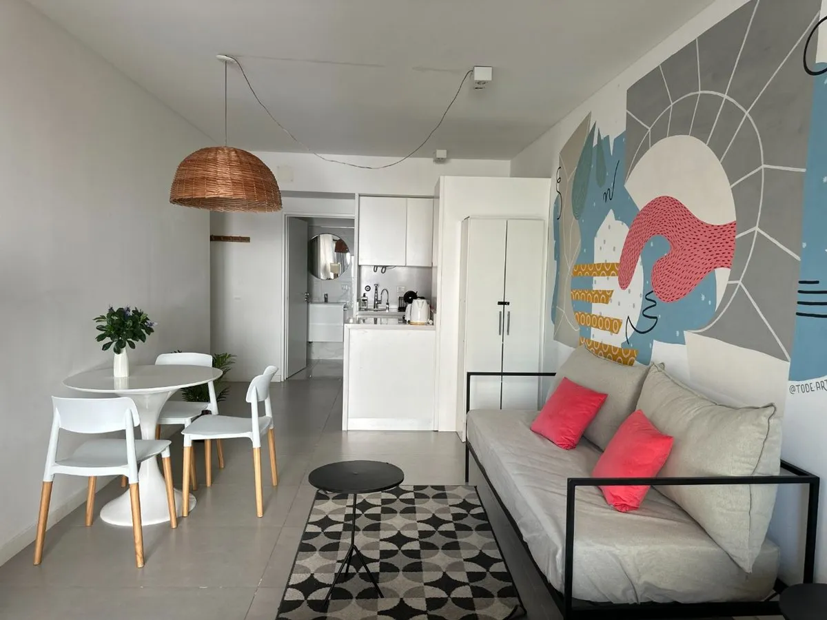 Kitnet mobiliada de 35 m², no 7º andar de um prédio com 8 andares, com orientação para os fundos. Inclui 31 m² cobertos e 4 m² de varanda, além de 1 banheiro completo. O imóvel tem armários e área de armazenamento, e está equipado com móveis, eletrodomésticos e utensílios. Fica no limite entre Recoleta e Retiro/Microcentro, a alguns metros da Av. Santa Fe.