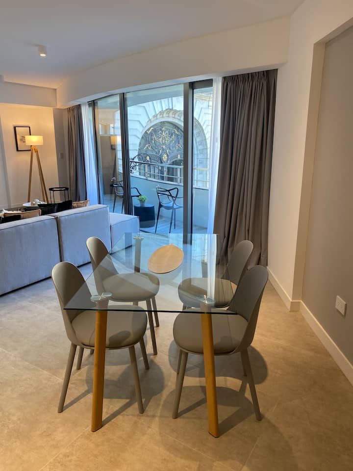 Kitnet com 95 m² em Retiro, com vista para o Palácio Belle Epoque. A unidade tem 1 banheiro completo e 1 lavabo, e acomoda até 3 hóspedes. Há área de dormir com cama king size e outra área com cama de solteiro, além de sala de estar, área de jantar e área de trabalho. A cozinha é completa e equipada, com decoração e quadros contemporâneos; segurança 24/7.