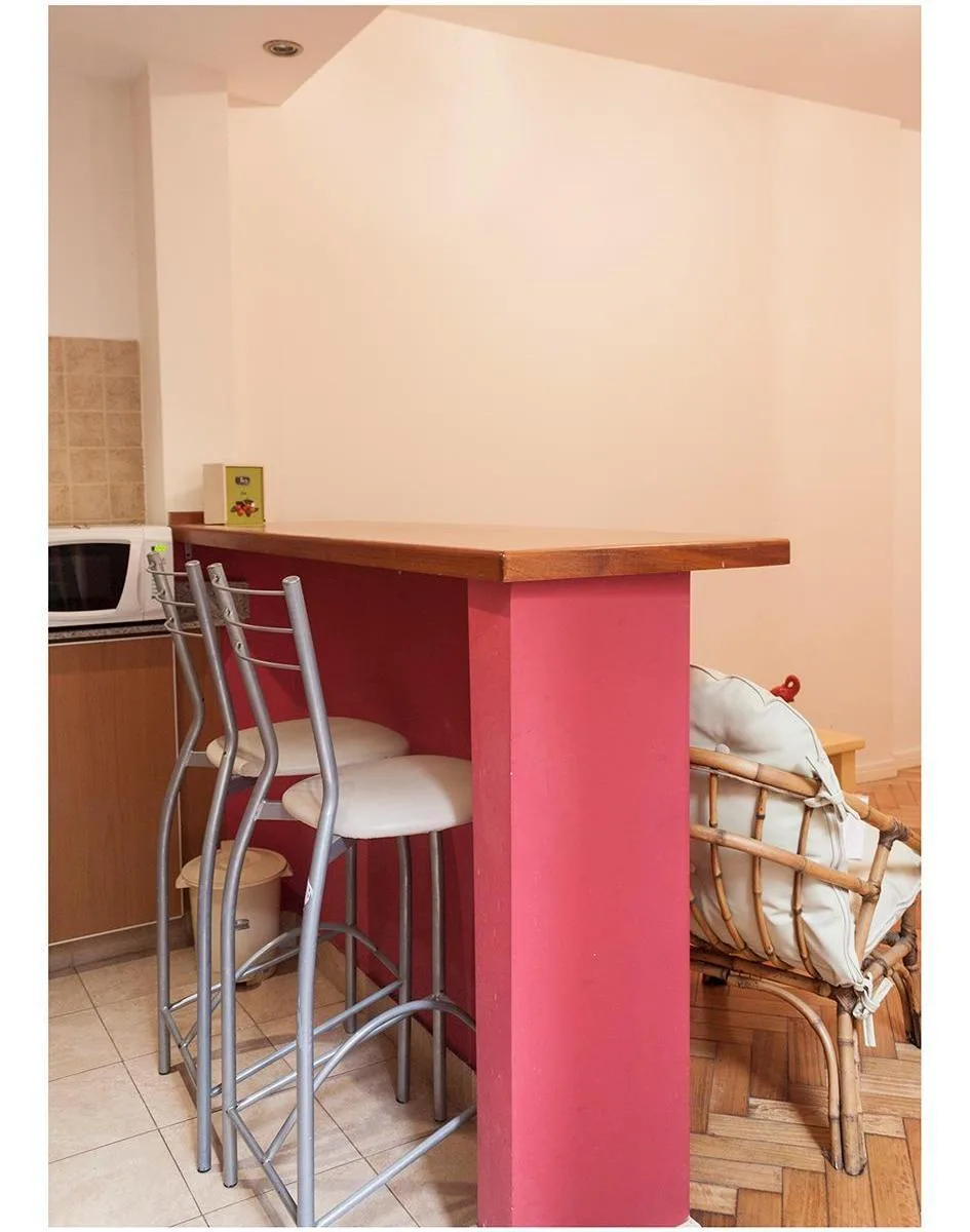 Kitnet (1 ambiente) com pátio interno, banheiro completo e cozinha integrada com desayunador diário, totalmente mobiliada e equipada. Iluminação natural e disponibilidade a partir de 15/4. Fica a uma quadra da Av. 9 de Julio e a uma quadra da Av. Santa Fe. Aluguel de USD 500, com Aysa, ABL e cabo e Wi-Fi incluídos; luz e condomínio a cargo do inquilino.