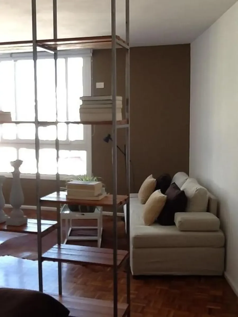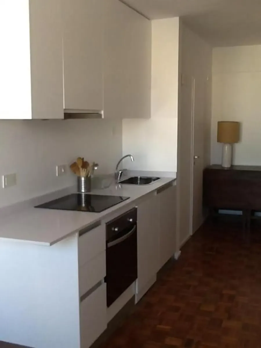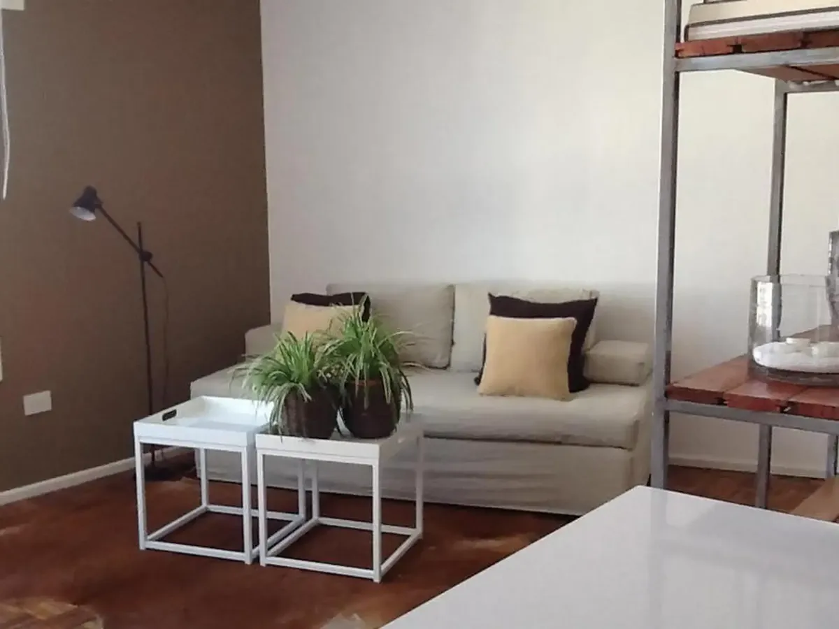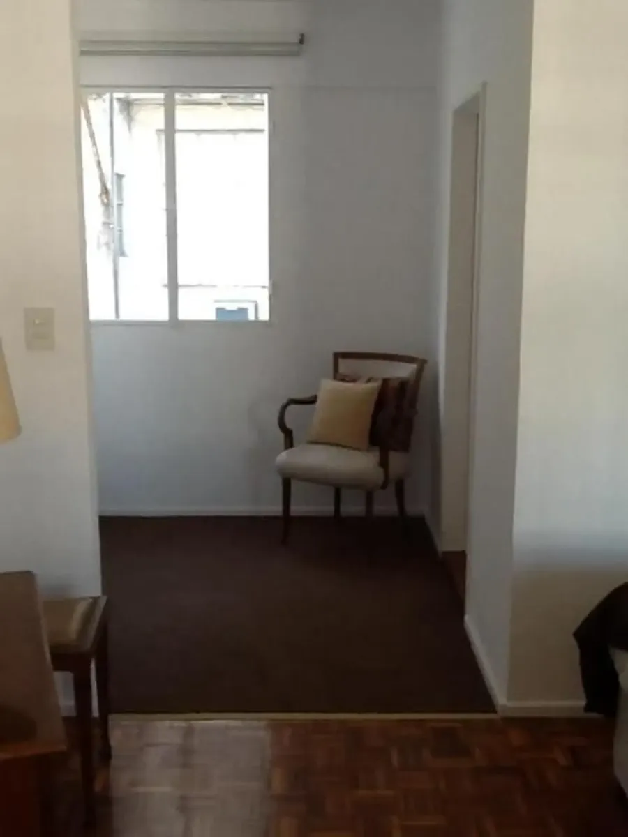 Apartamento tipo estúdio em andar alto, com piso em madeira, sala de estar e sala de jantar integradas. Totalmente mobiliado e equipado, com cama de casal e armários embutidos. Cozinha integrada com geladeira e ar-condicionado frio/calor; aquecimento central. Há TV e banheiro completo com box de chuveiro, além de lavabo na recepção. O aluguel mensal inclui condomínio, ABL, AYSA, luz e Wi-Fi, com possibilidade de limites de consumo. Capacidade para 2 pessoas. Não aceita animais e não se destina