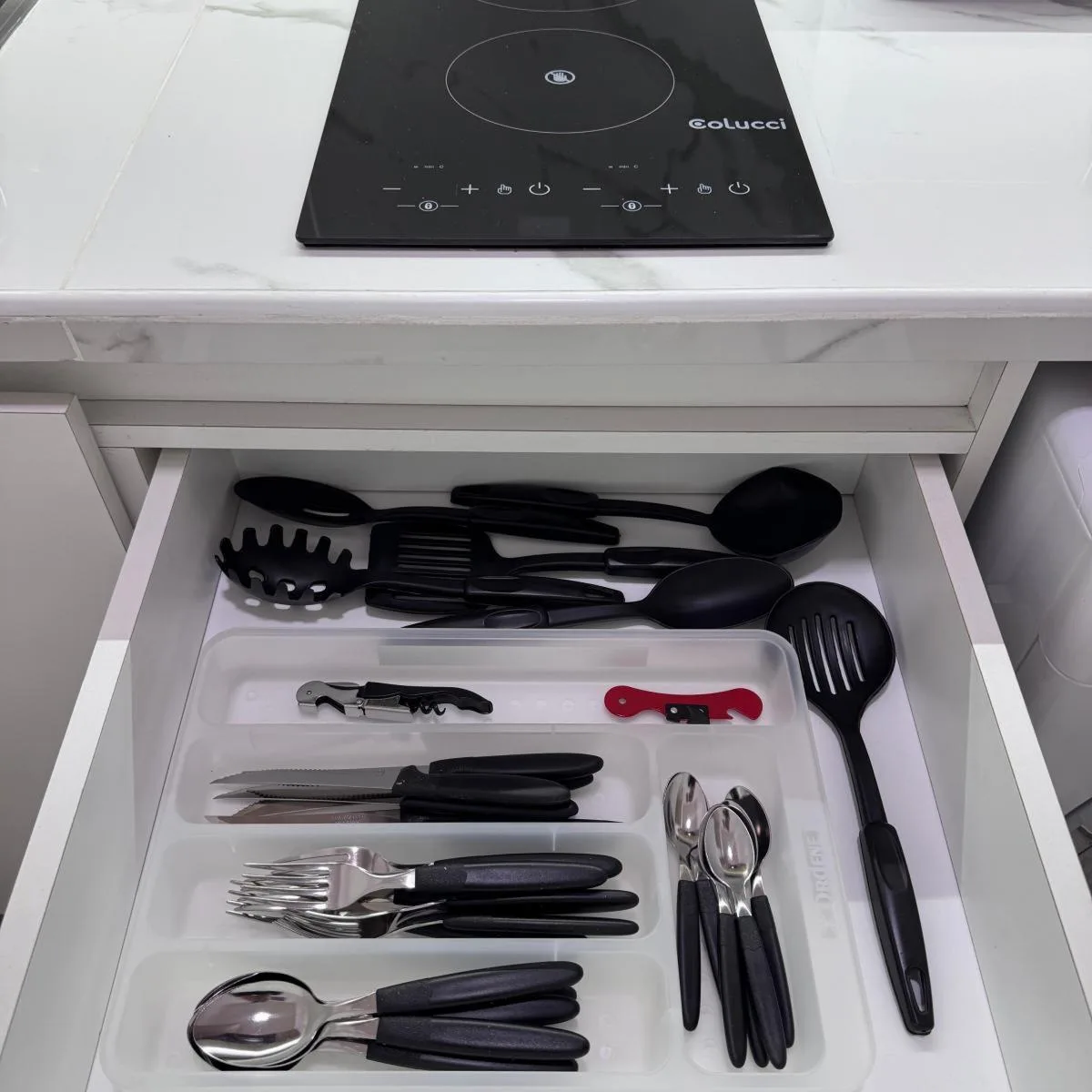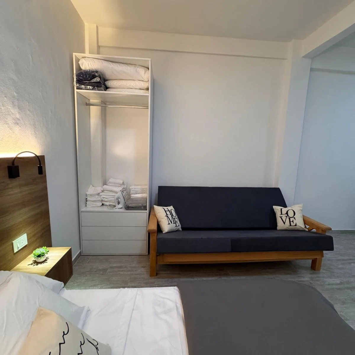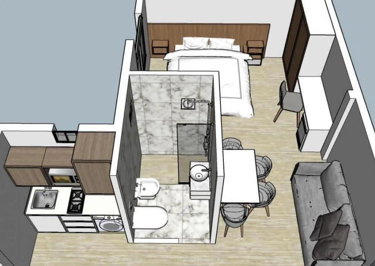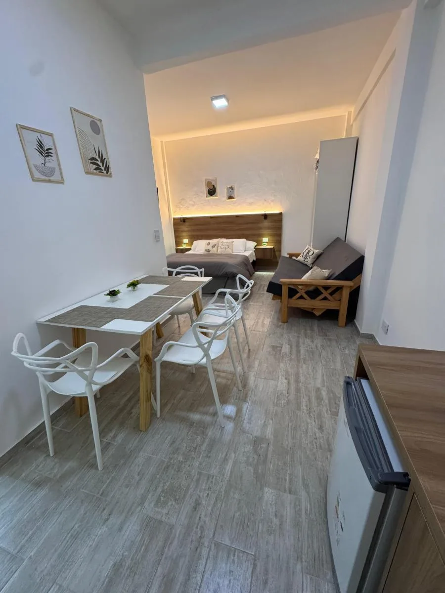 Kitnet de 1 ambiente para aluguel, com 1 banheiro, aproximadamente 30 m² cobertos. Fica em piso alto acessado por elevador, com planta interna e orientação ao norte, na esquina entre Calle Carlos Pellegrini e Av. Córdoba, em San Nicolás. Possui cozinha equipada com armários sob e sobre a bancada, área principal com nichos para armazenamento embutidos e banheiro completo. Mobiliado.