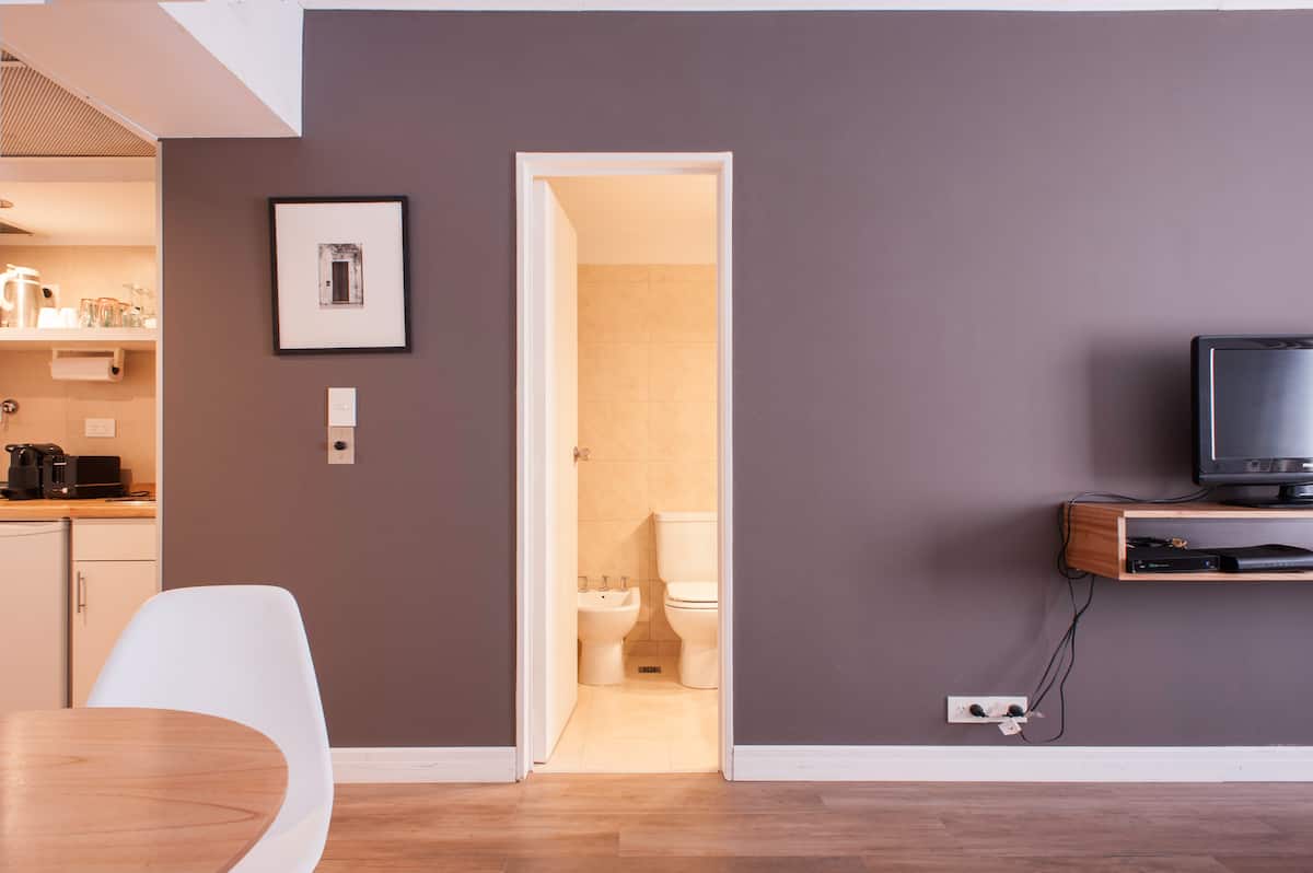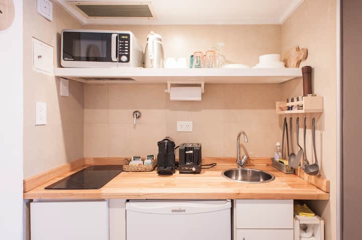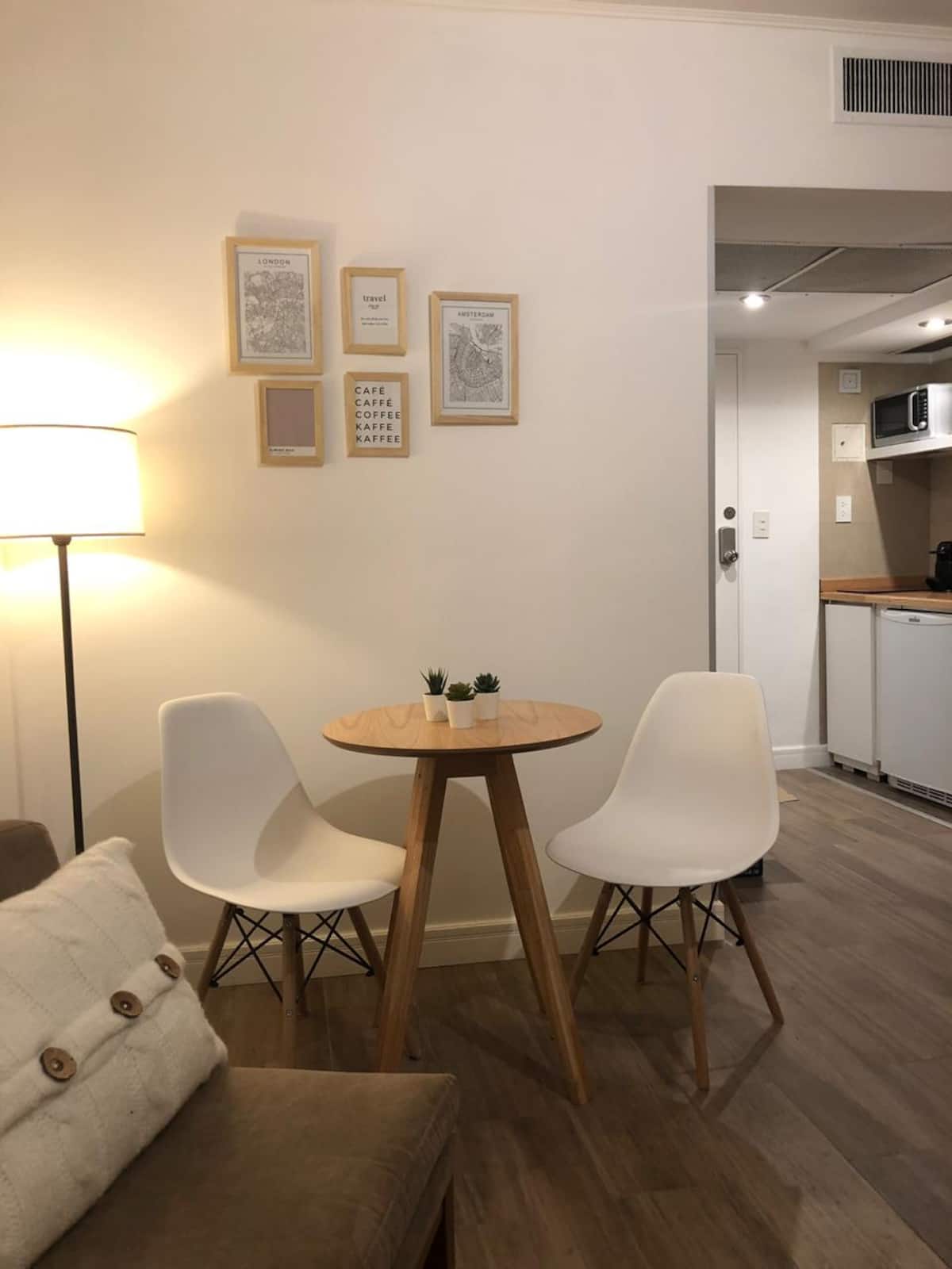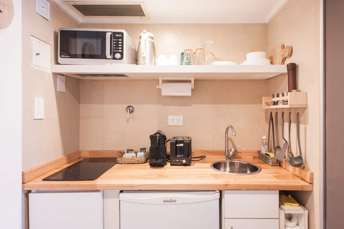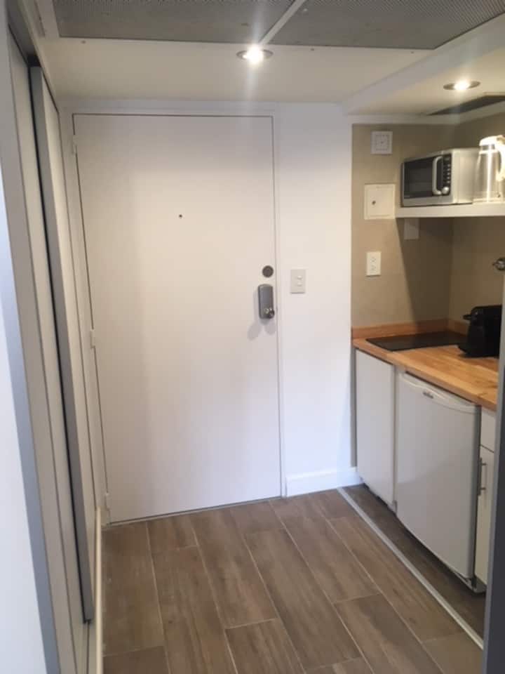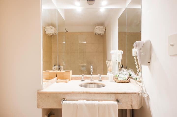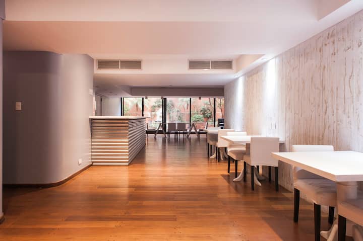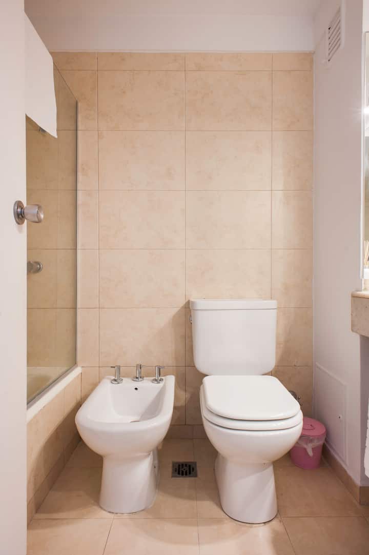 Studio em Buenos Aires, em Retiro, com 24h de segurança. Fica a poucos passos da Plaza San Martin e a cerca de 5 minutos a pé da Estação Central de Trem e Ônibus de Retiro, da Florida Peatonal e da estação de metrô. O apartamento tem kitchenette com máquina de café Nespresso, torradeira, micro-ondas e chaleira elétrica; cama king-size, TV LED de 32" com canais a cabo, além de cofre eletrônico e fechadura com código. O edifício oferece academia, espaço de co-working com Wi-Fi gratuito e pátio; no
