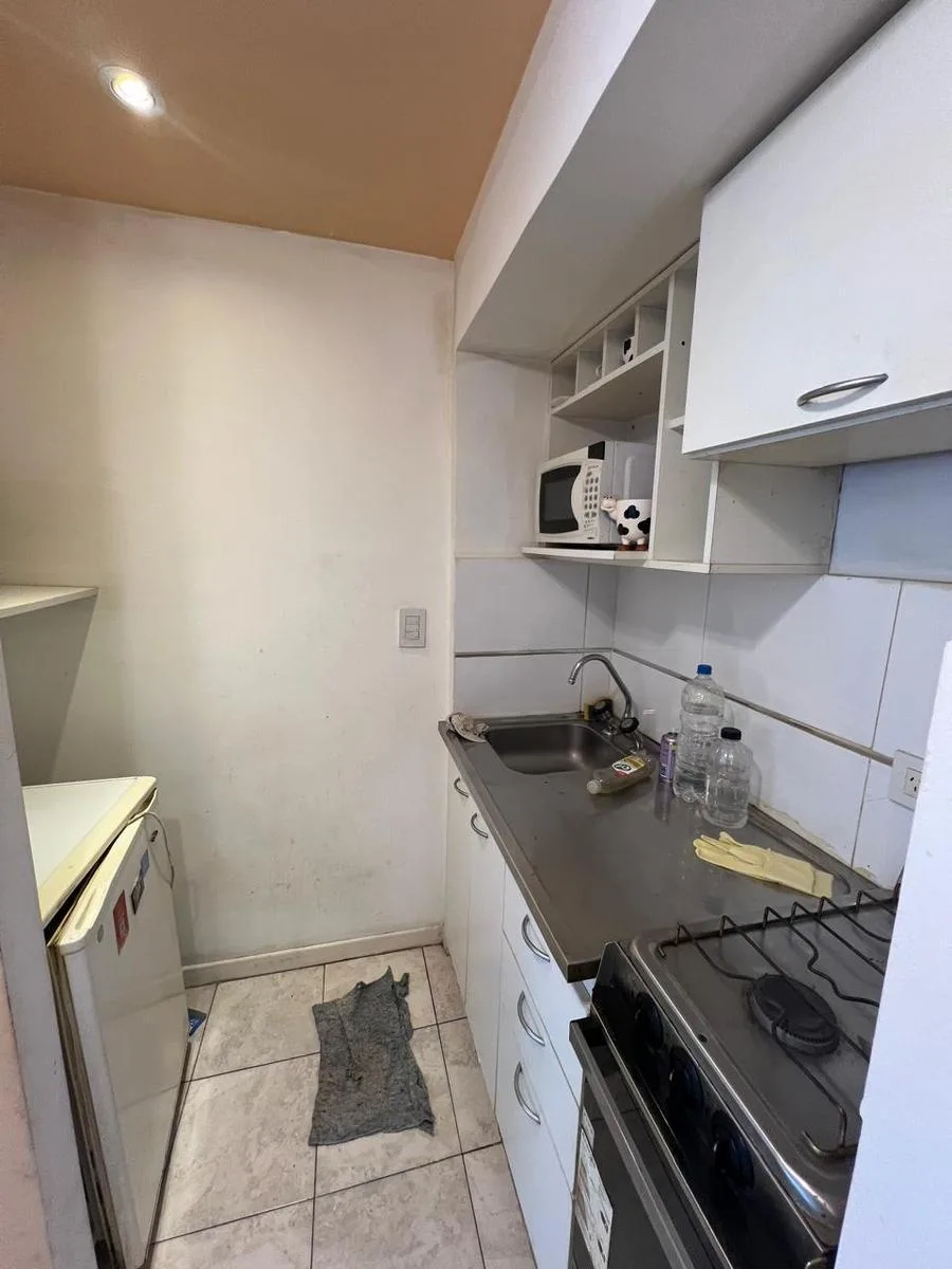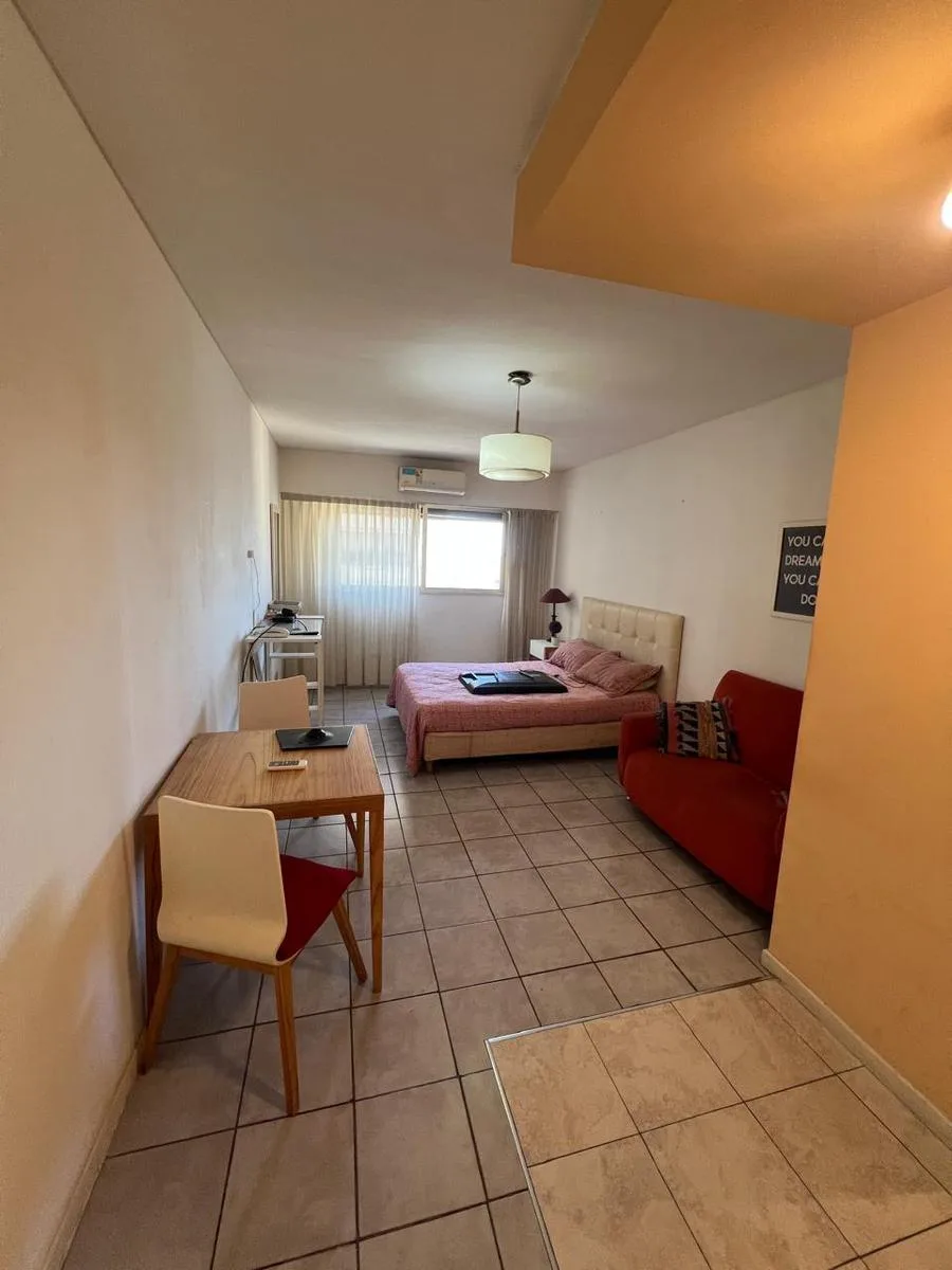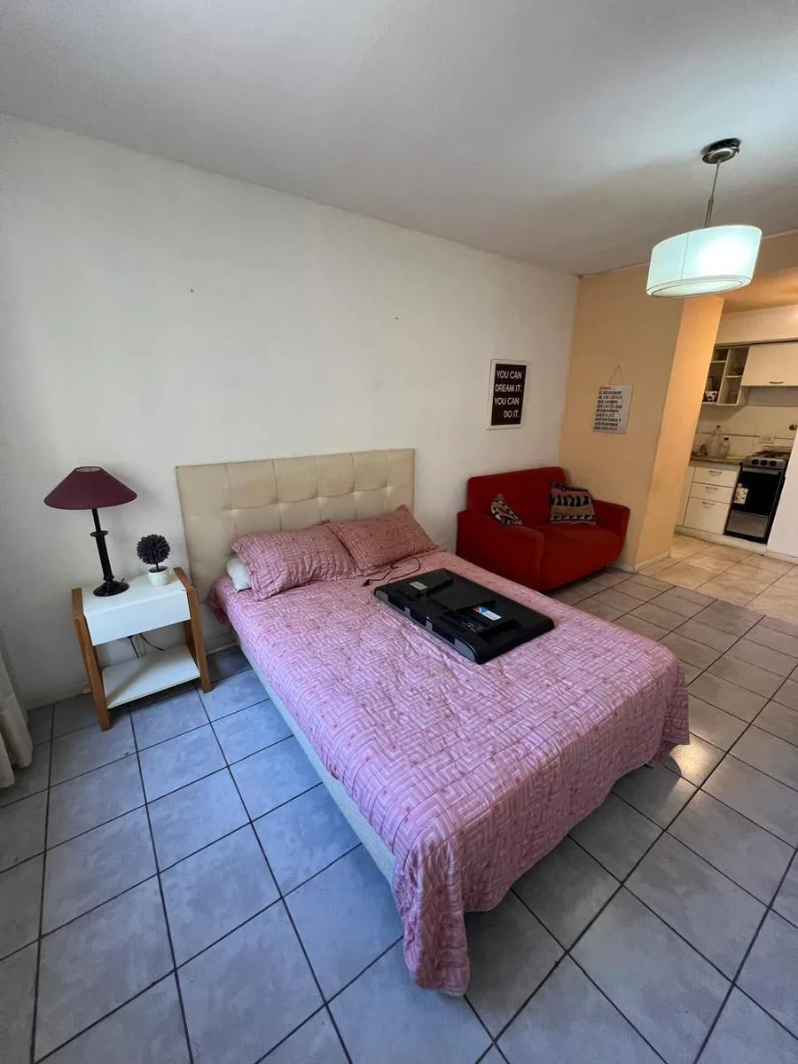 Kitnet mobiliada com 1 ambiente, banheiro completo e cozinha completa com geladeira e micro-ondas. Fica em andar alto, sobre a Av. Libertador, com vista para o rio e ar-condicionado. O imóvel é mobiliado como aparece nas fotos e tem cama (estrado/sommier). Localizada ao lado do Patio Bullrich, na área de Recoleta.