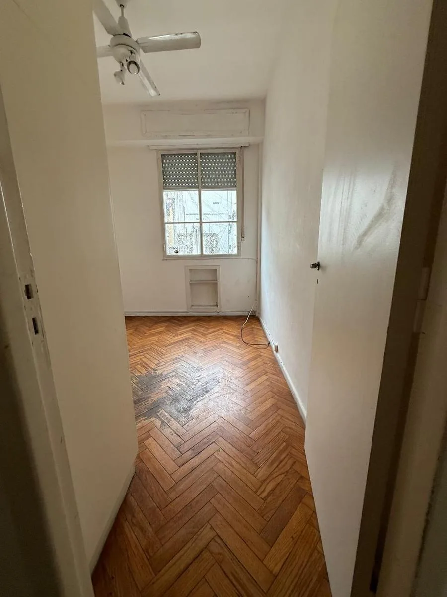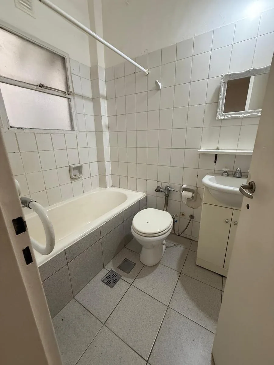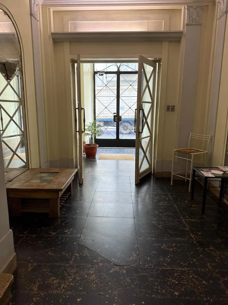 Kitnet com 23 m², orientação norte, no andar do prédio, com ampla janela de frente. Piso de parquê, ar-condicionado split e ventilador de teto, com cozinha semi-integrada e fogão elétrico. Banheiro completo com banheira e armário para organização do espaço. Contrato de 2 anos, com reajustes trimestrais pelo IPC. Próximo às estações de Subte Tribunales (Linha D) e Uruguay (Linha B), e a teatros e instituições como o Teatro Colón e faculdades da UBA.