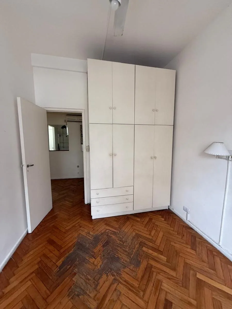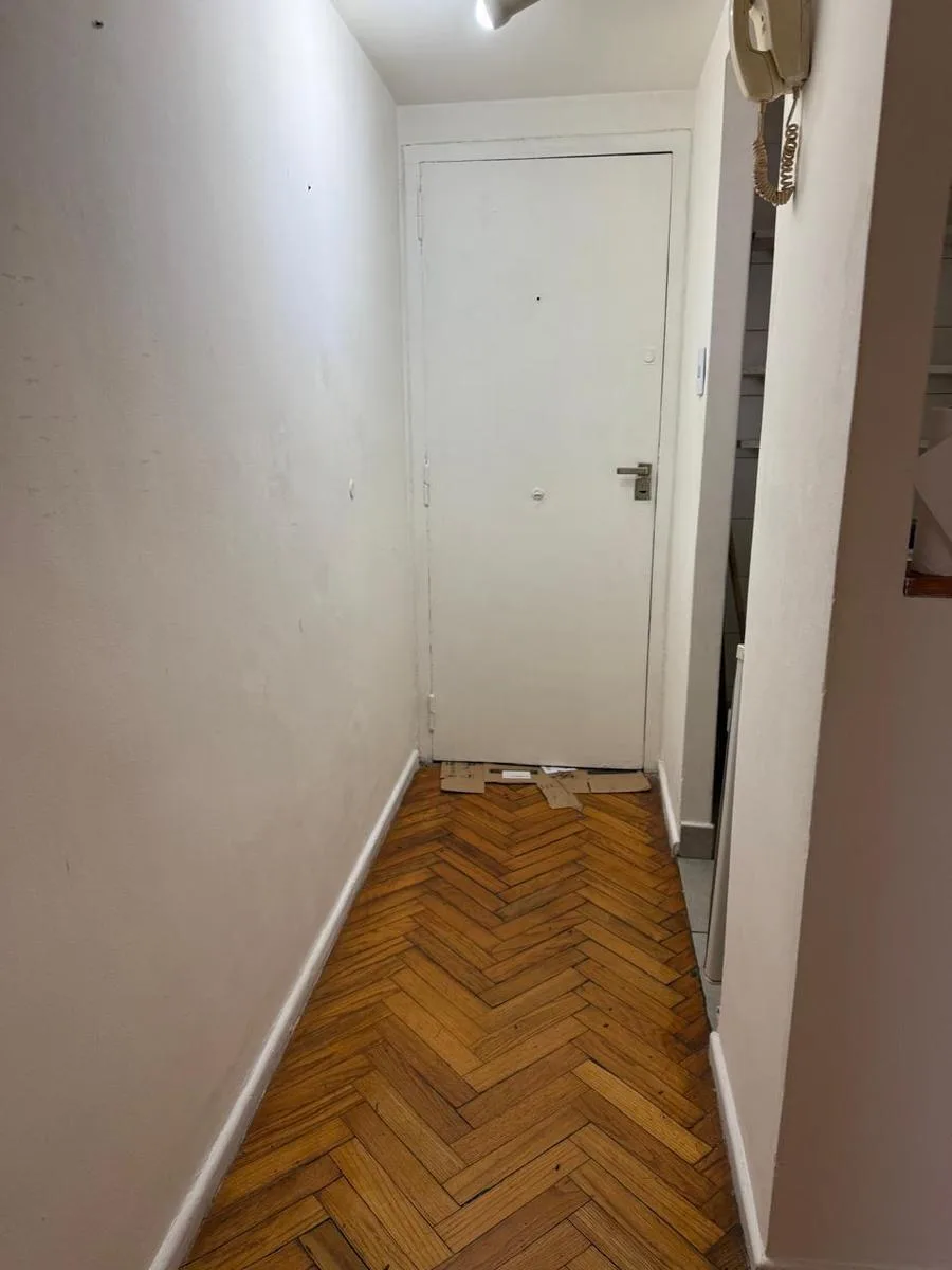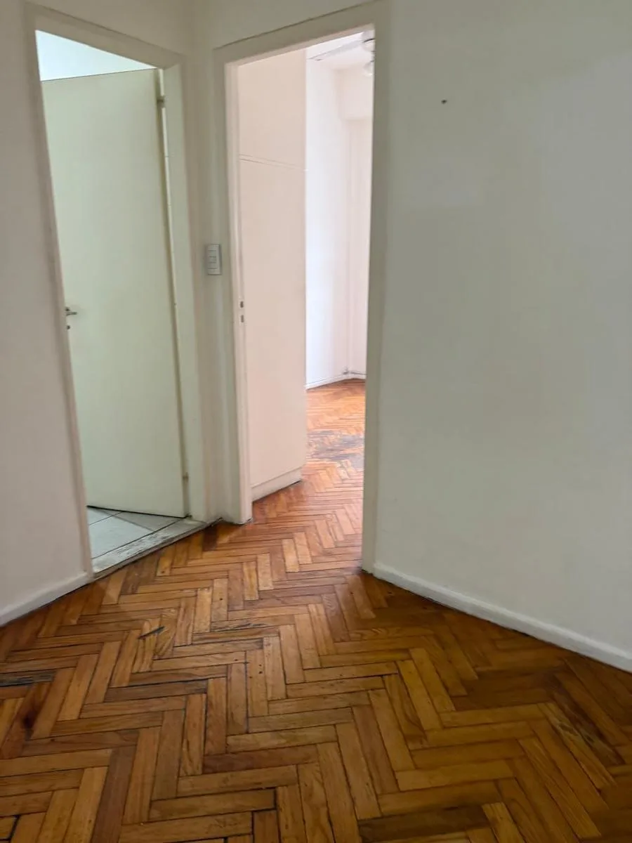 Kitnet com 23 m², orientação norte, no andar do prédio, com ampla janela de frente. Piso de parquê, ar-condicionado split e ventilador de teto, com cozinha semi-integrada e fogão elétrico. Banheiro completo com banheira e armário para organização do espaço. Contrato de 2 anos, com reajustes trimestrais pelo IPC. Próximo às estações de Subte Tribunales (Linha D) e Uruguay (Linha B), e a teatros e instituições como o Teatro Colón e faculdades da UBA.