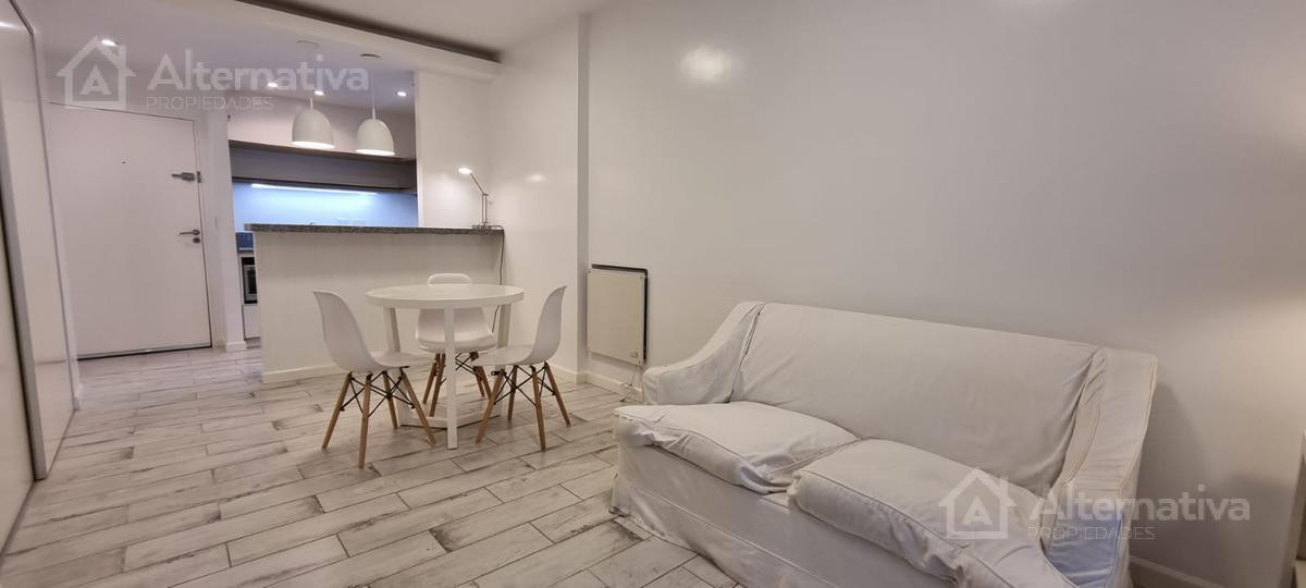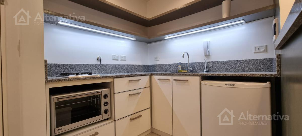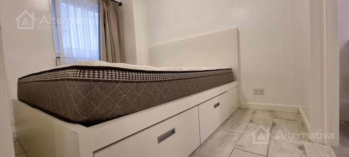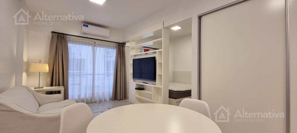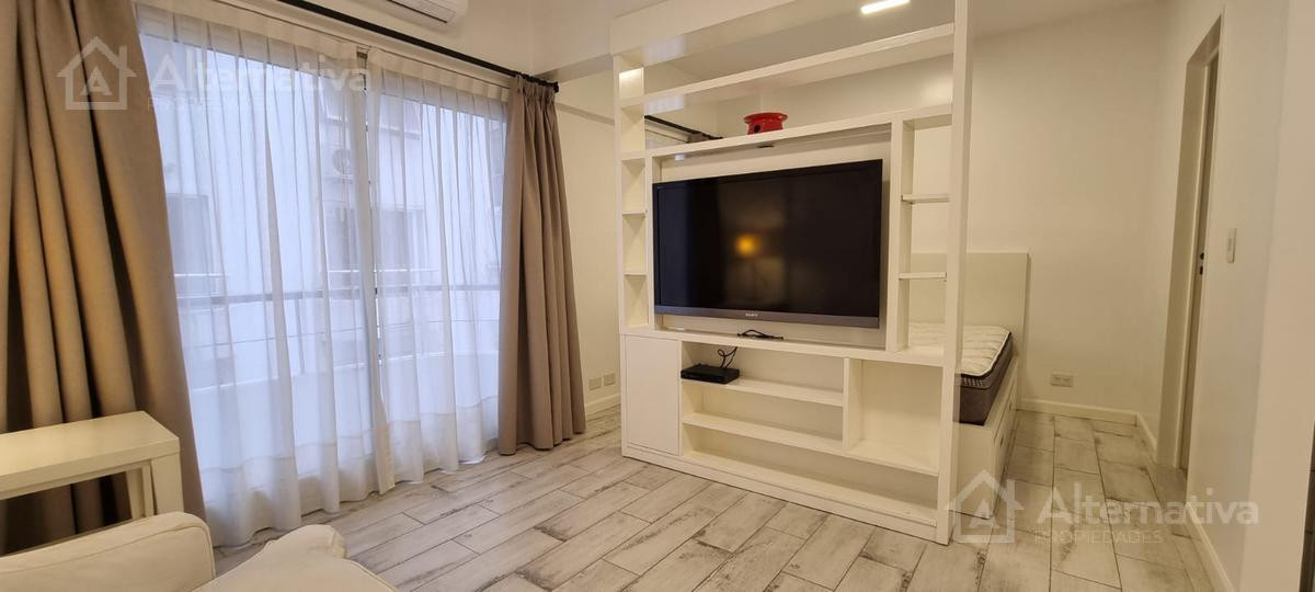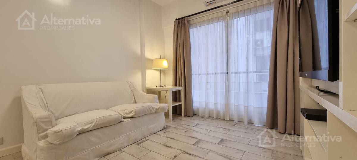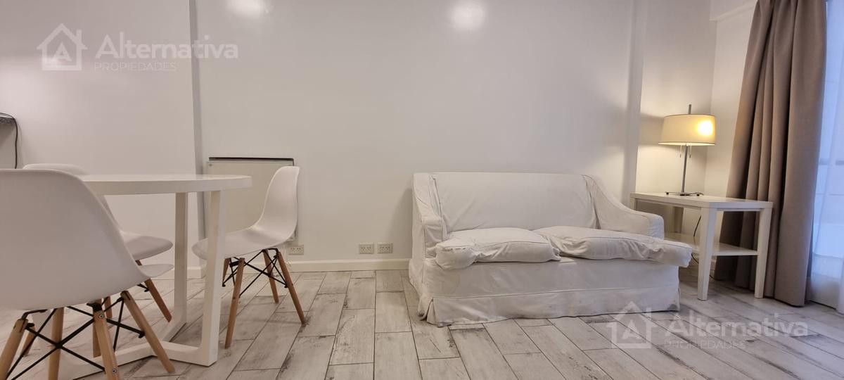 Apartamento de 1 ambiente (kitnet) em Retiro, a 1 quadra de Av. Del Libertador e a 1 quadra de Av. 9 de Julio. Possui cama queen size e TV, além de internet Wi-Fi, banheiro em suíte, sofá de 2 lugares, fogão (anafe), forno elétrico, geladeira com torneira monocomando e aquecedor de água elétrico. Há varanda voltada para os fundos do edifício. Todos os serviços estão incluídos, com limite de consumo elétrico de $1.000.