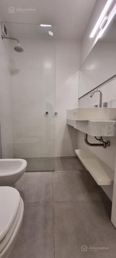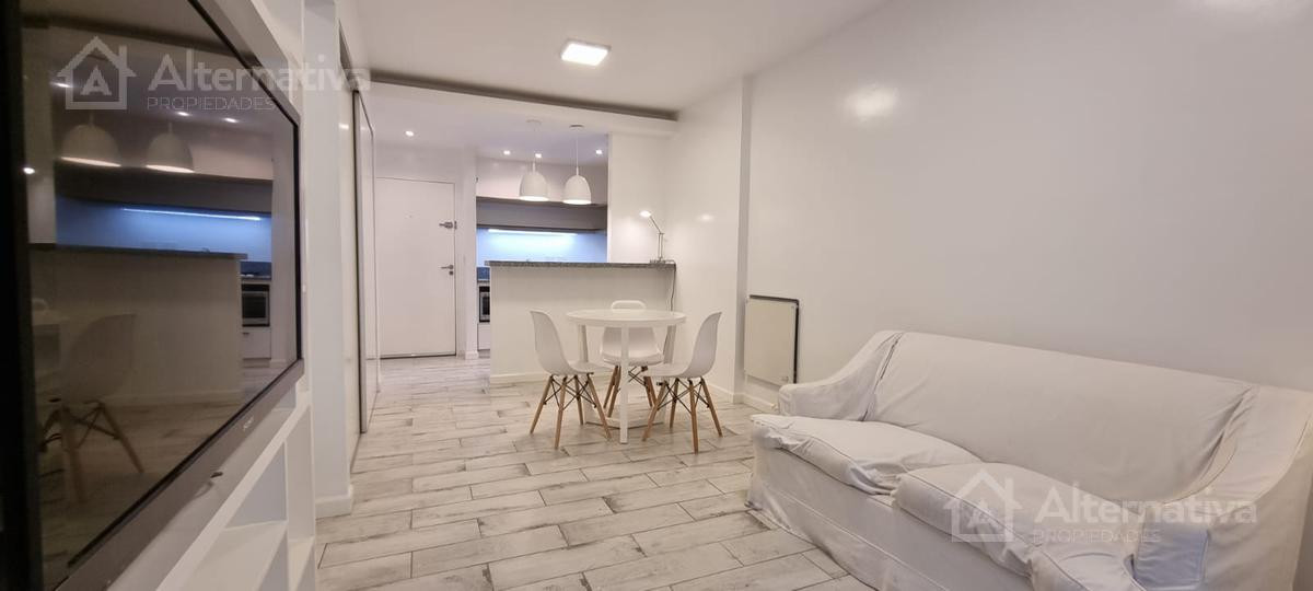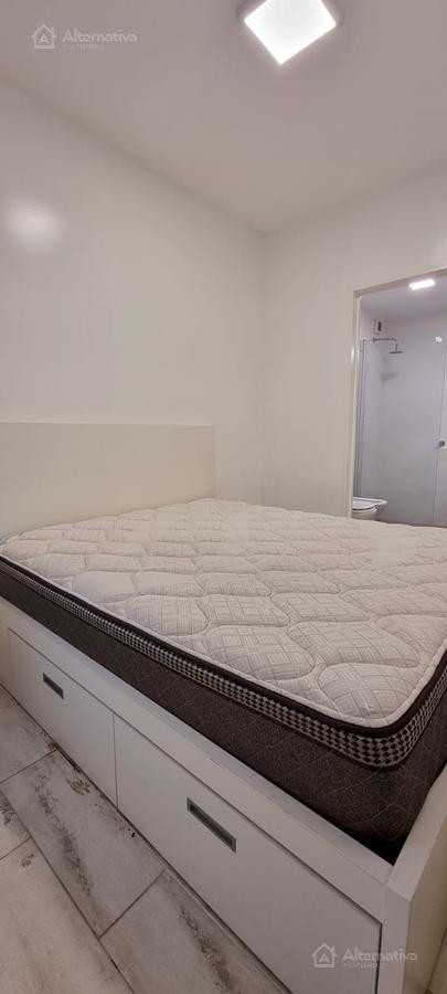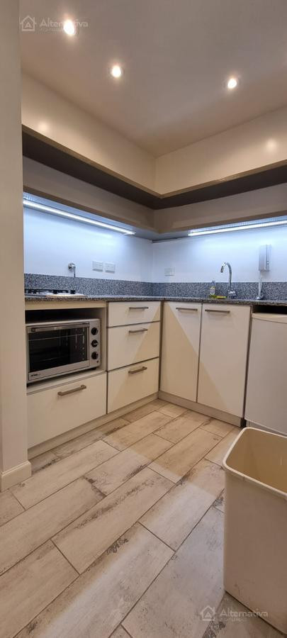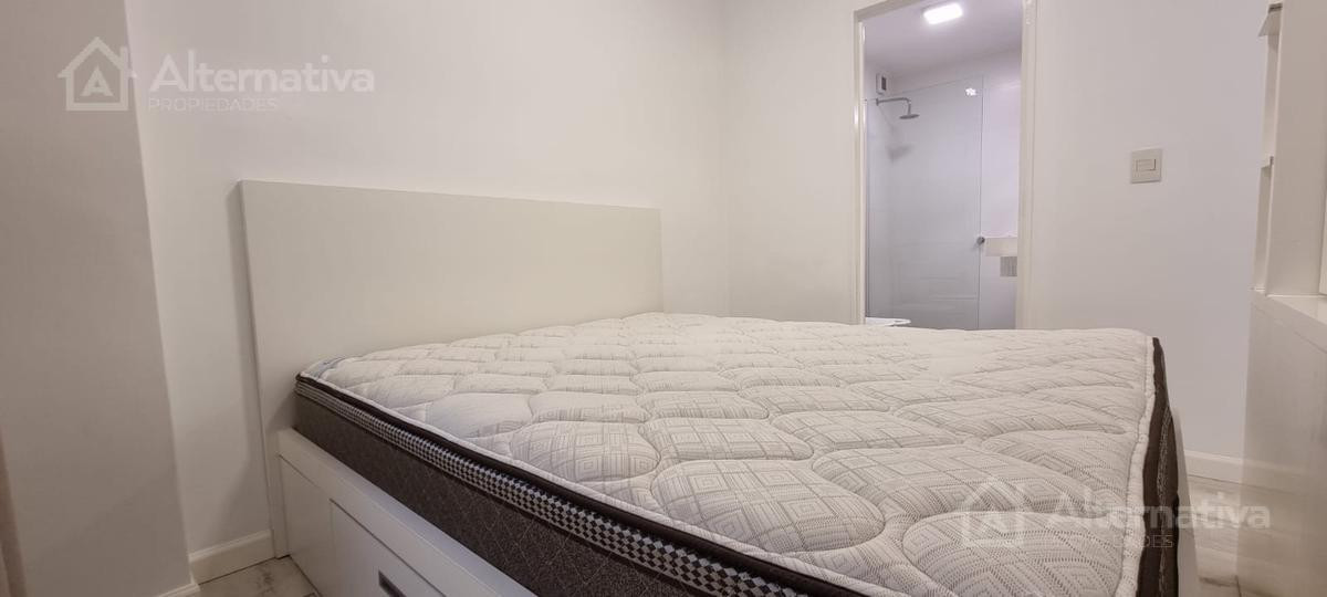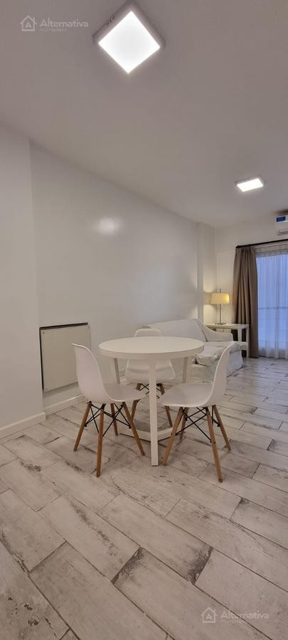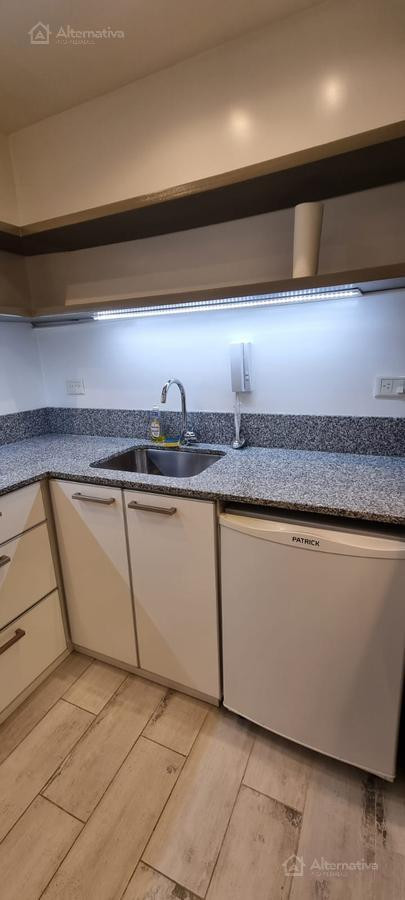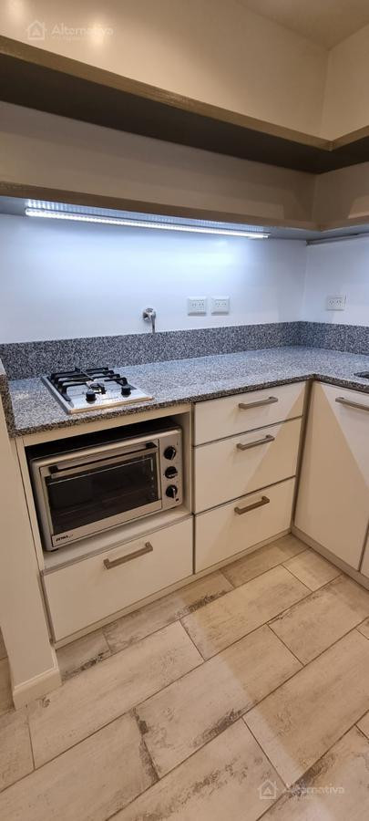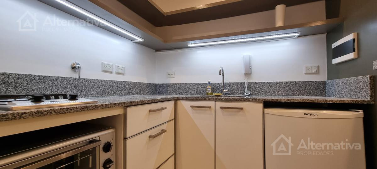 Apartamento de 1 ambiente (kitnet) em Retiro, a 1 quadra de Av. Del Libertador e a 1 quadra de Av. 9 de Julio. Possui cama queen size e TV, além de internet Wi-Fi, banheiro em suíte, sofá de 2 lugares, fogão (anafe), forno elétrico, geladeira com torneira monocomando e aquecedor de água elétrico. Há varanda voltada para os fundos do edifício. Todos os serviços estão incluídos, com limite de consumo elétrico de $1.000.
