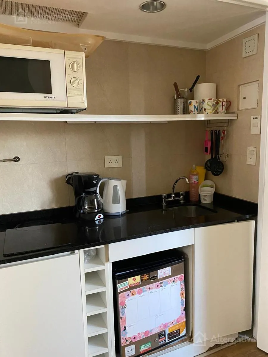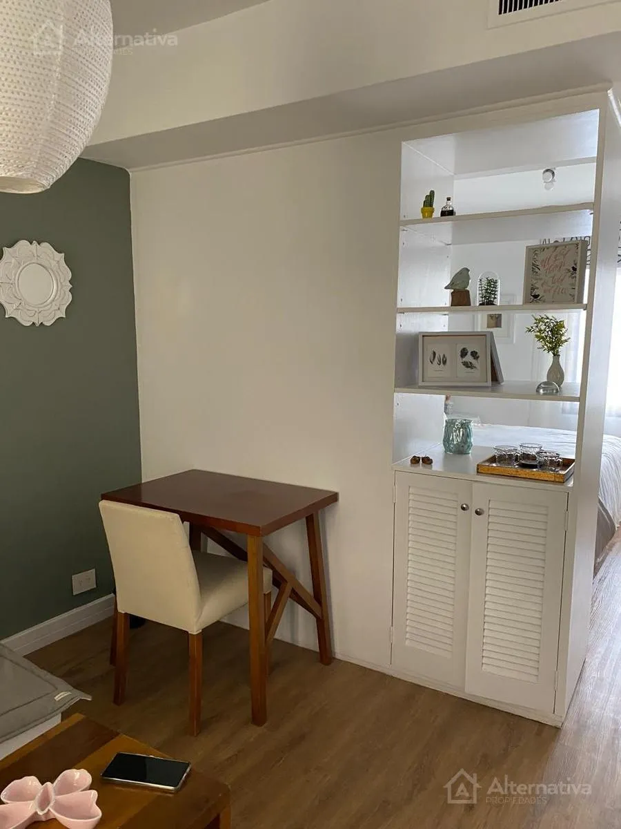 Kitnet mobiliada de 1 ambiente em Retiro, com aluguel mínimo de 3 meses e até 1 ano, renovável. Na área de living, há sofá-cama e kitchenette com geladeira, cooktop elétrico e micro-ondas, além de pratos, tábua e ferro de passar. Há sommier tipo hotel, com opção de tamanho queen ou duas camas de solteiro, TV com cabo e internet Wi-Fi; banheiro completo com banheira. O imóvel tem aquecimento e ar-condicionado central e vista para o pátio interno. O prédio oferece segurança 24 horas, co-working co