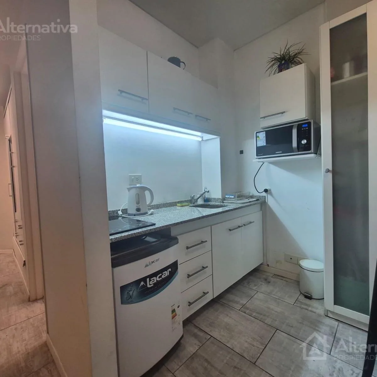 Kitnet de 1 ambiente em Retiro, com banheiro completo e cozinha equipada com eletrodomésticos e utensílios. Possui ar-condicionado frio/calor e área de armazenamento. A unidade é entregue mobiliada com cama, sofá, mesa, cadeiras e itens para estadia, além de roupa de cama. O pacote inclui condomínio e serviços, internet e energia elétrica com limite de consumo.