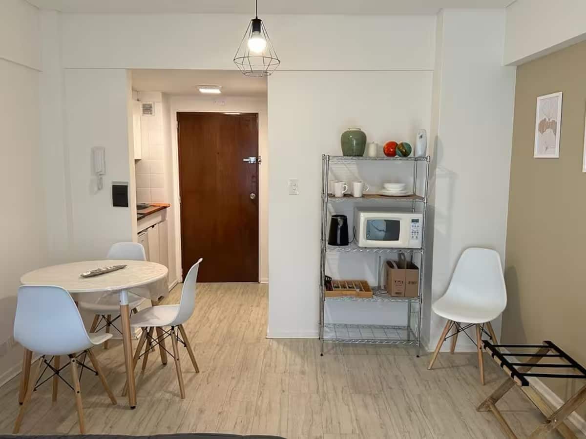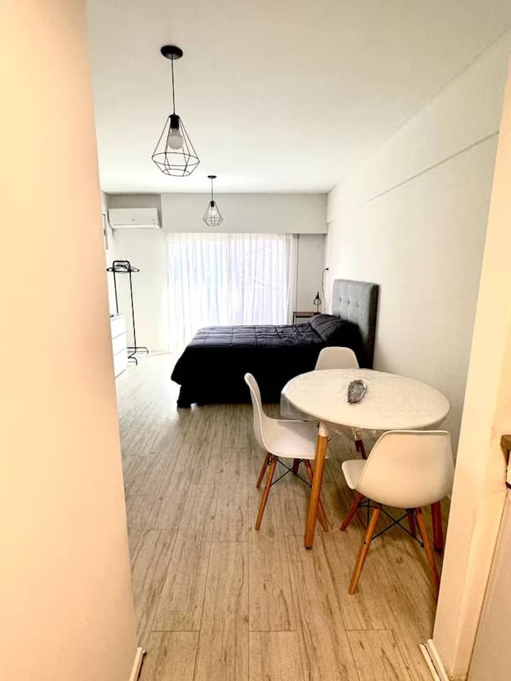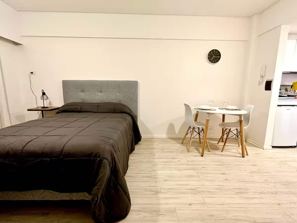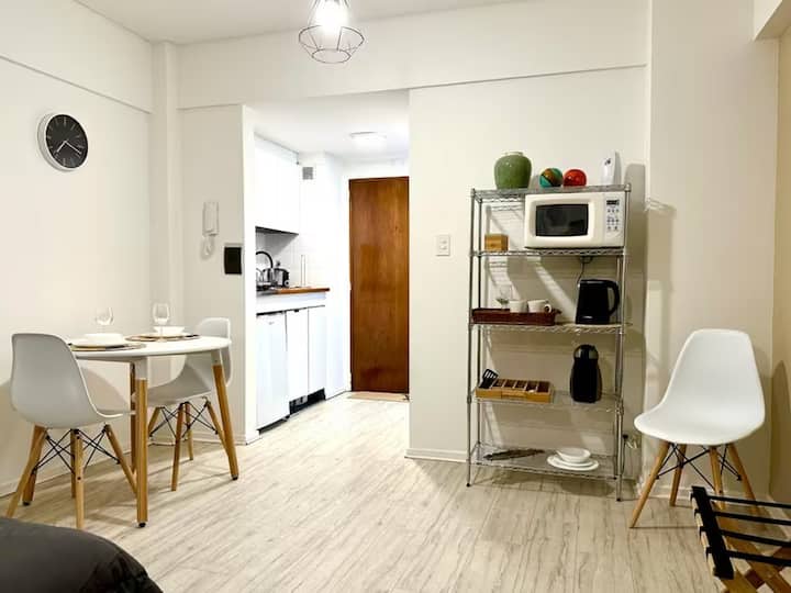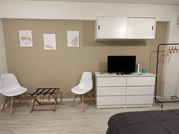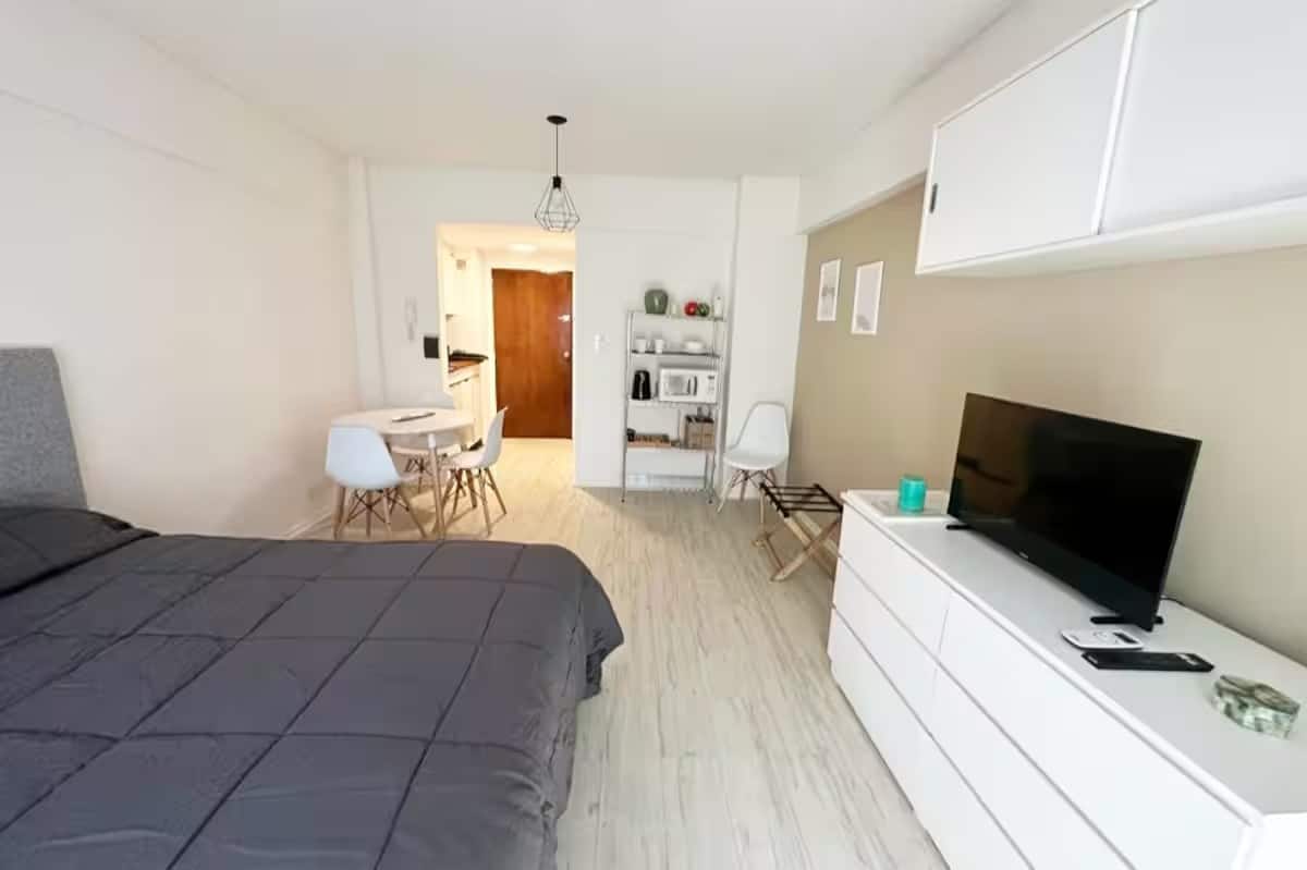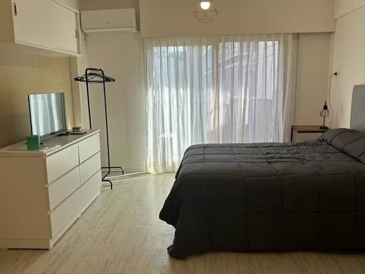Loft reformado, mobiliado e totalmente equipado. Inclui cama queen, cozinha, micro-ondas e banheiro completo. Conta com Smart TV e Wi-Fi de alta velocidade.