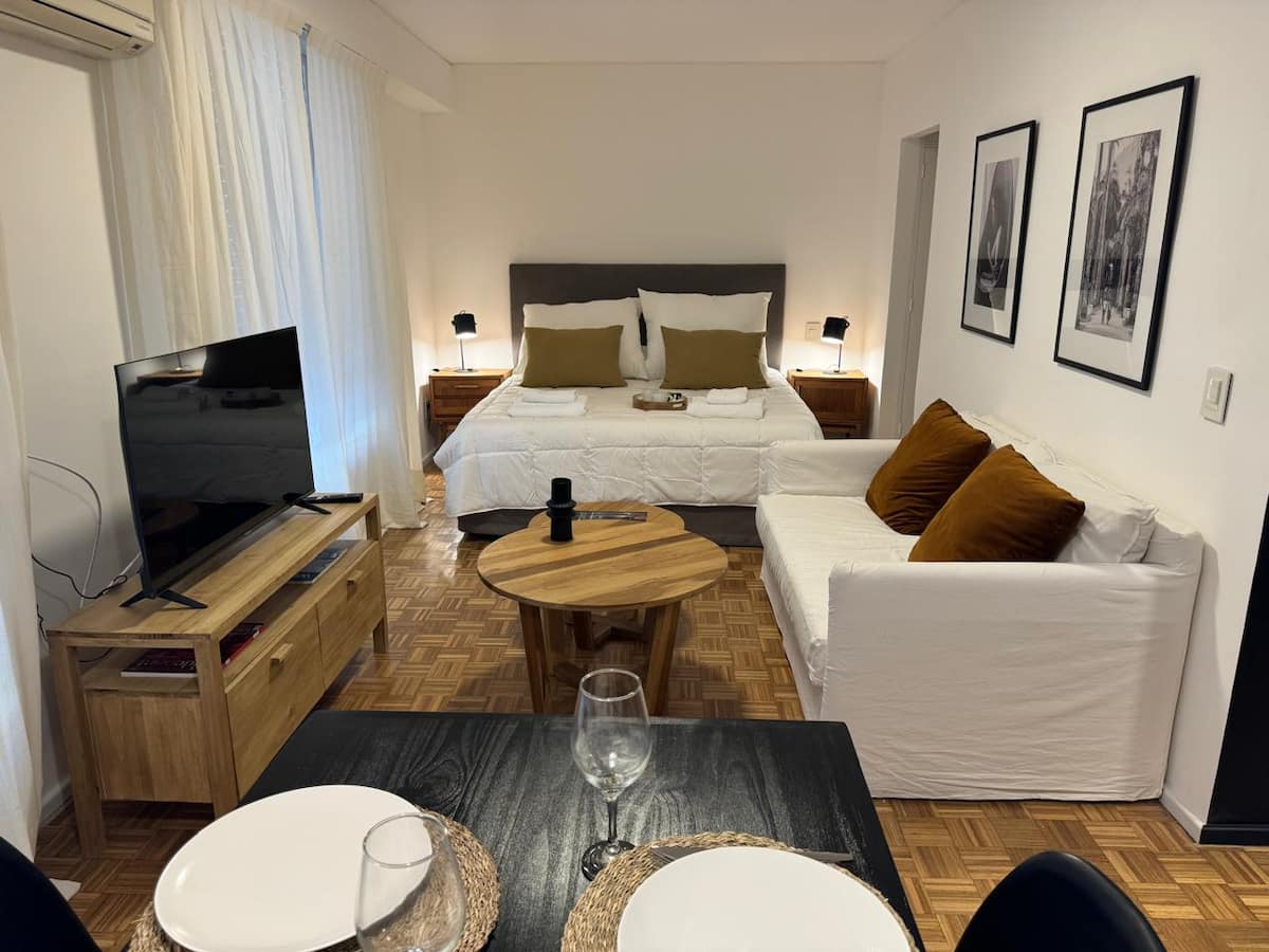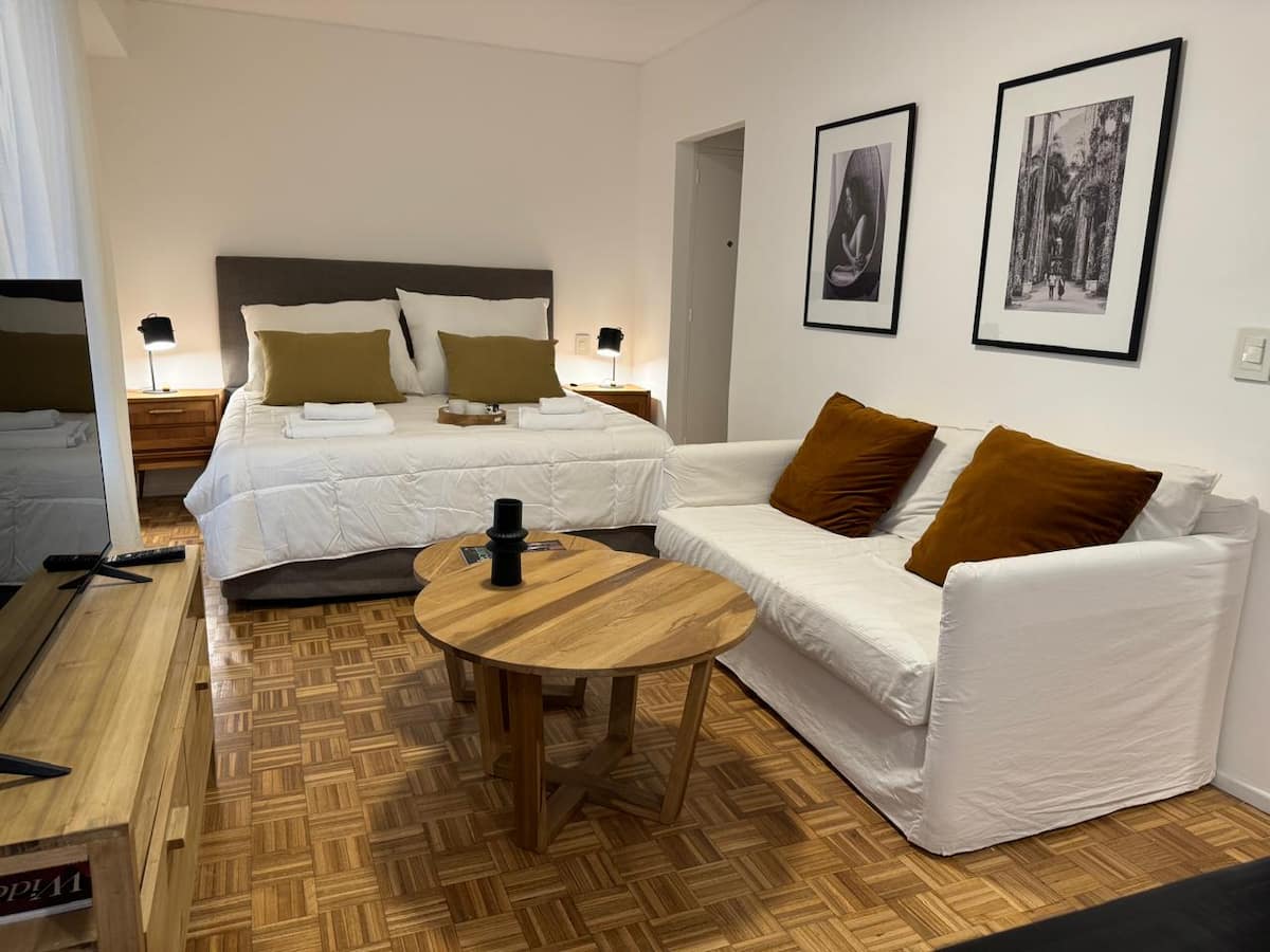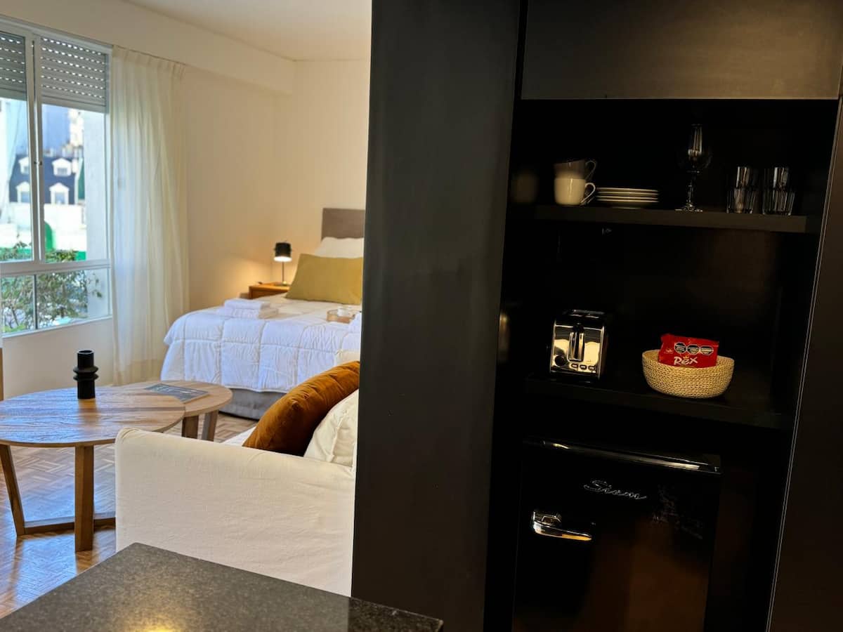Apartamento da rede Shilton Apartments em Retiro, voltado a estadias de turismo ou viagens a trabalho. Studio com kitchenette, máquina de café Nespresso e eletrodomésticos necessários, cama king-size, roupeiro com cofre e banheiro completo. O acesso ao prédio ocorre 24 horas por dia, com entrega de chaves pela equipe de segurança.