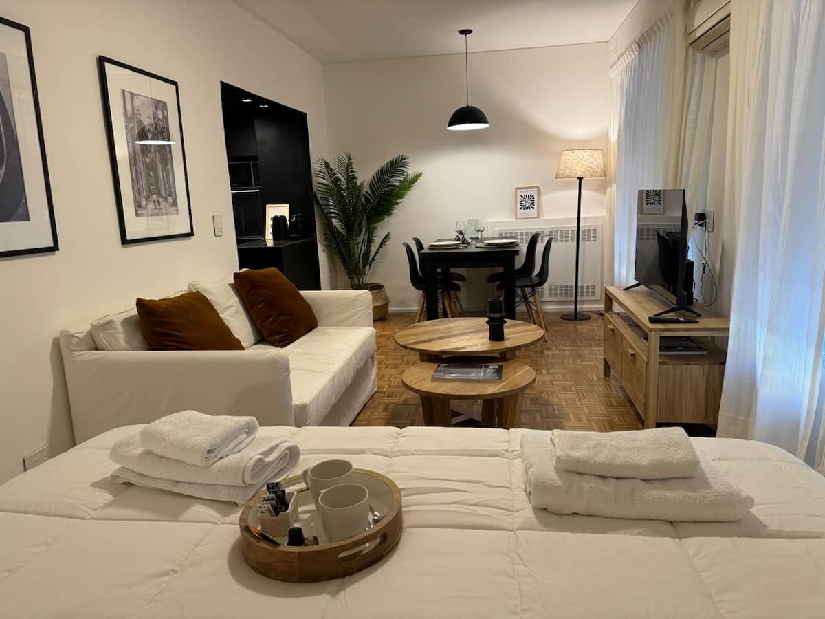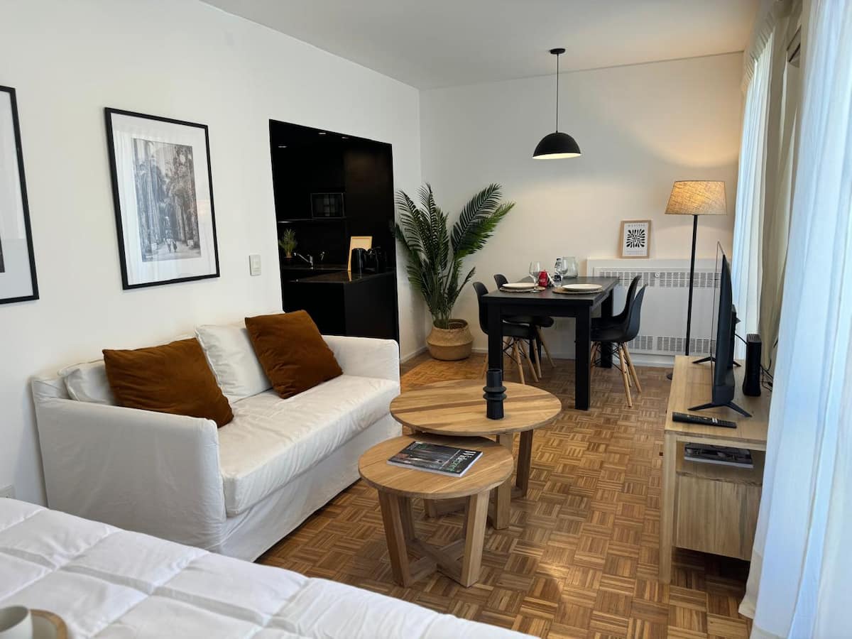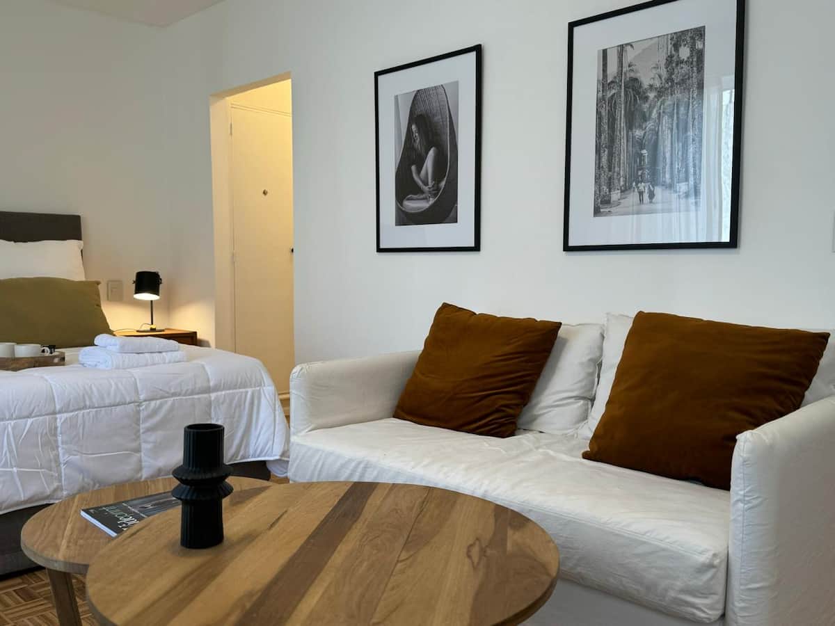 Apartamento da rede Shilton Apartments em Retiro, voltado a estadias de turismo ou viagens a trabalho. Studio com kitchenette, máquina de café Nespresso e eletrodomésticos necessários, cama king-size, roupeiro com cofre e banheiro completo. O acesso ao prédio ocorre 24 horas por dia, com entrega de chaves pela equipe de segurança.