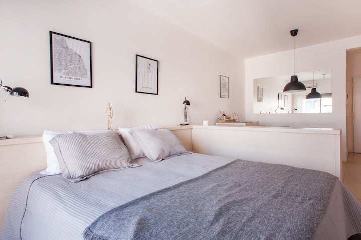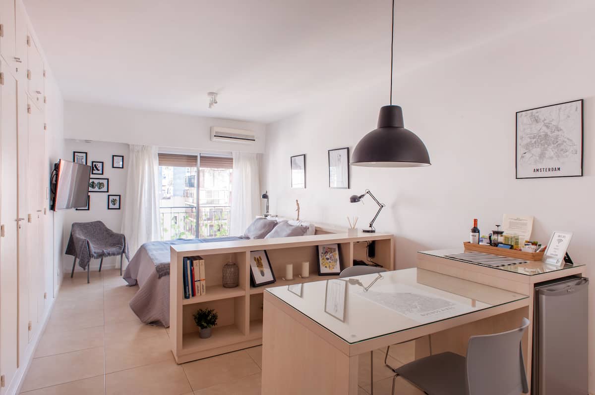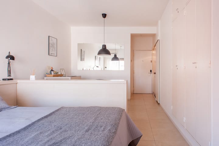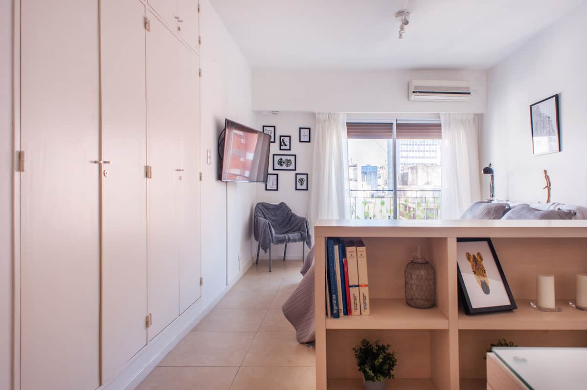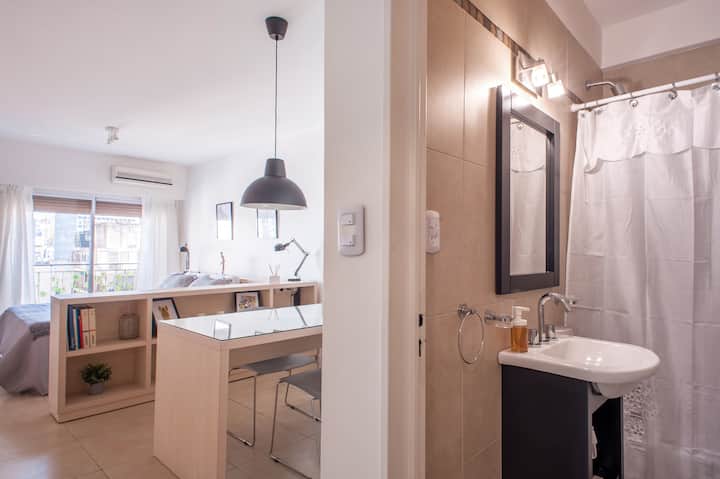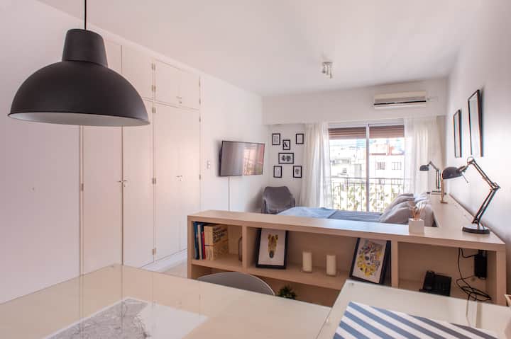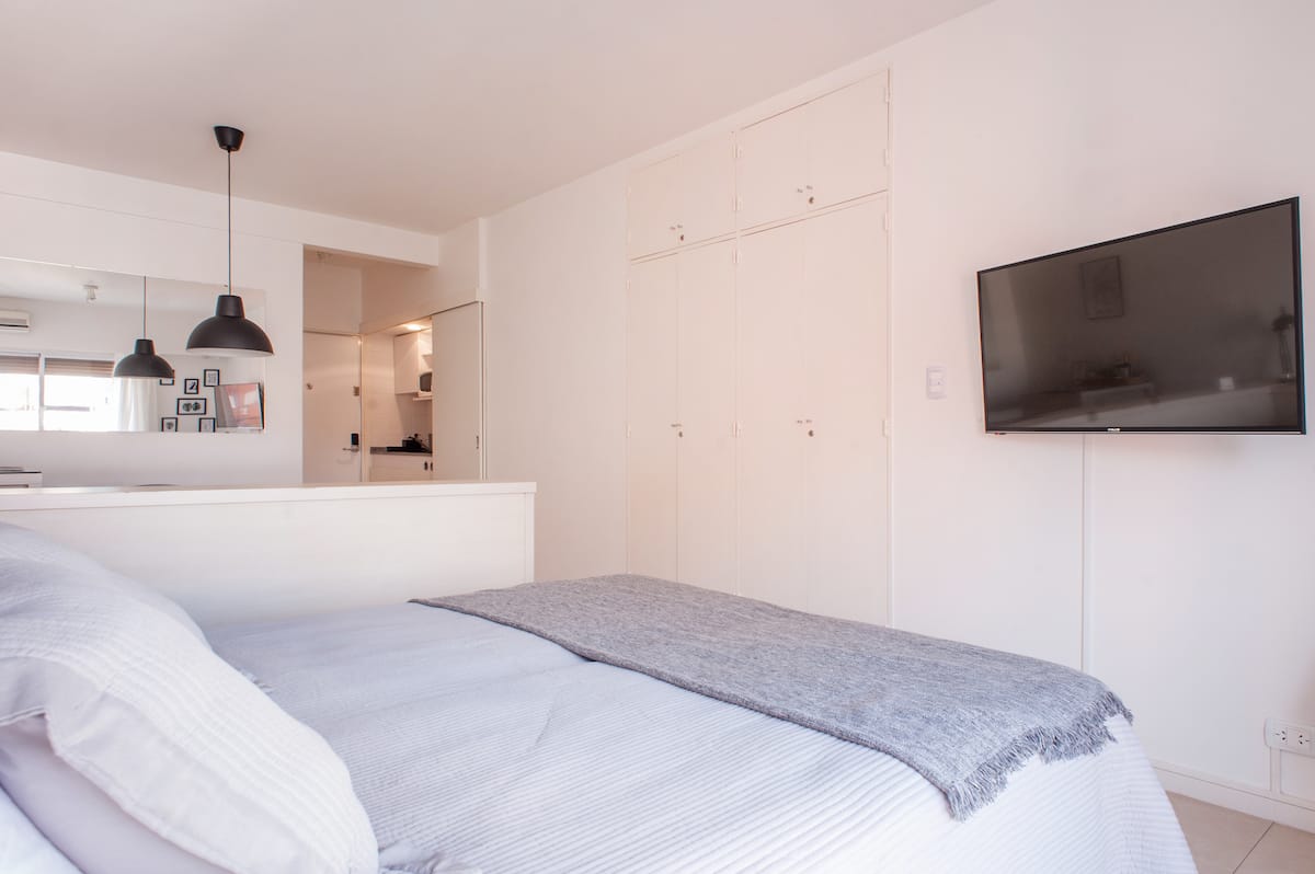 Kitnet em Retiro, em rua tranquila, com boa iluminação externa. A unidade tem cama de casal (ou duas camas de solteiro), ar-condicionado (quente e frio), geladeira, fogão elétrico e micro-ondas. Inclui torradeira, chaleira elétrica, utensílios de cozinha, ferro de passar com tábua, fechadura digital com possibilidade de auto check-in/out, internet Wi‑Fi de 100 Mbps e TV Smart HD de 43" com TV a cabo. O prédio oferece segurança 24 horas. Itens incluídos para os hóspedes: kit de café e chá, cartão