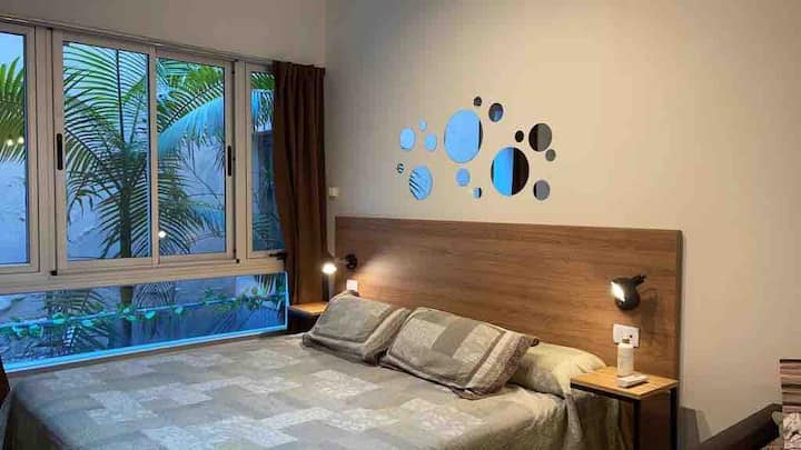 Kitnet em Retiro, com mobília e equipada com aquecimento e ar-condicionado. Conta com TV de 65". O prédio tem segurança 24 horas e a unidade usa fechadura eletrônica para acesso a qualquer horário.