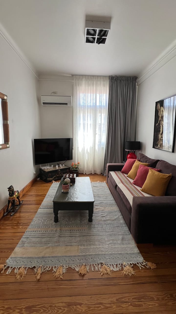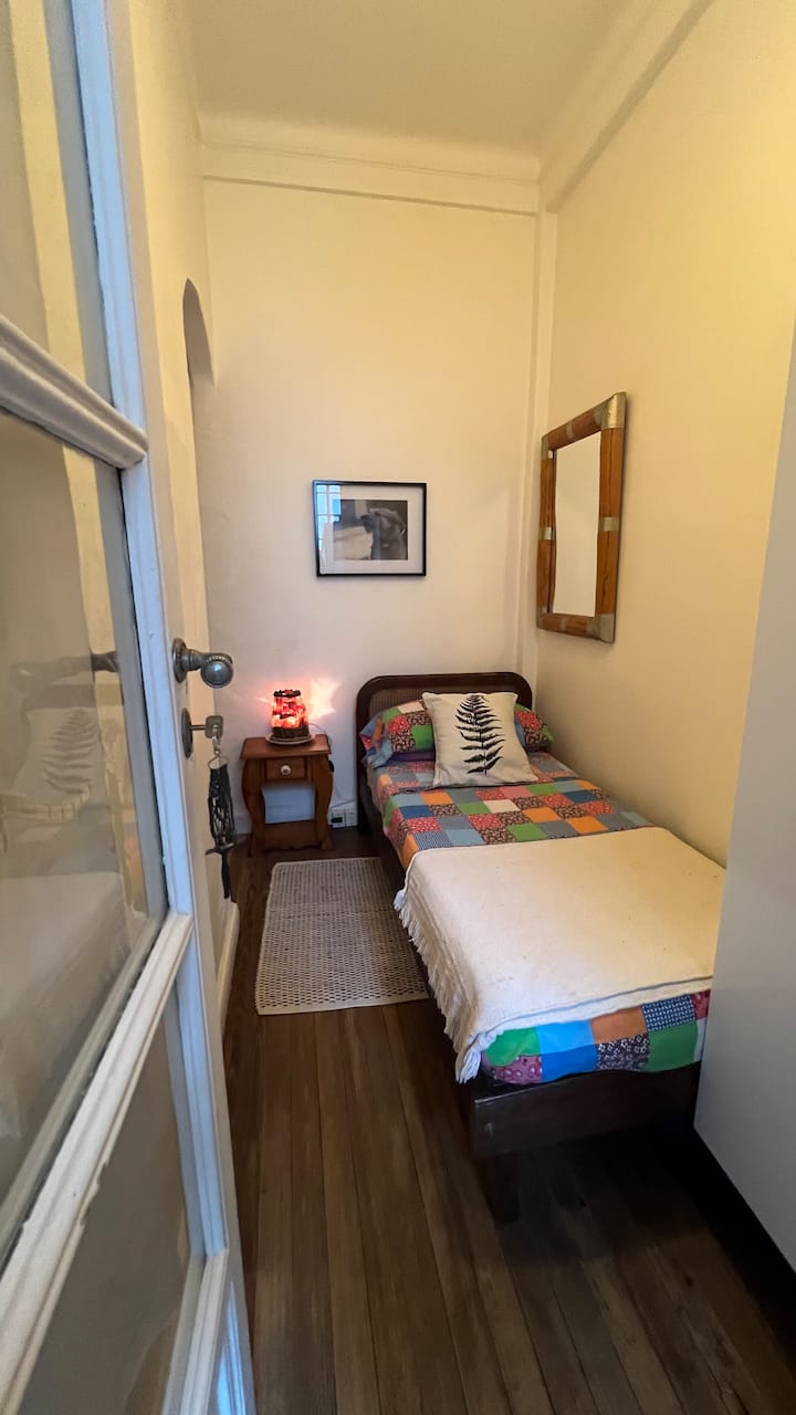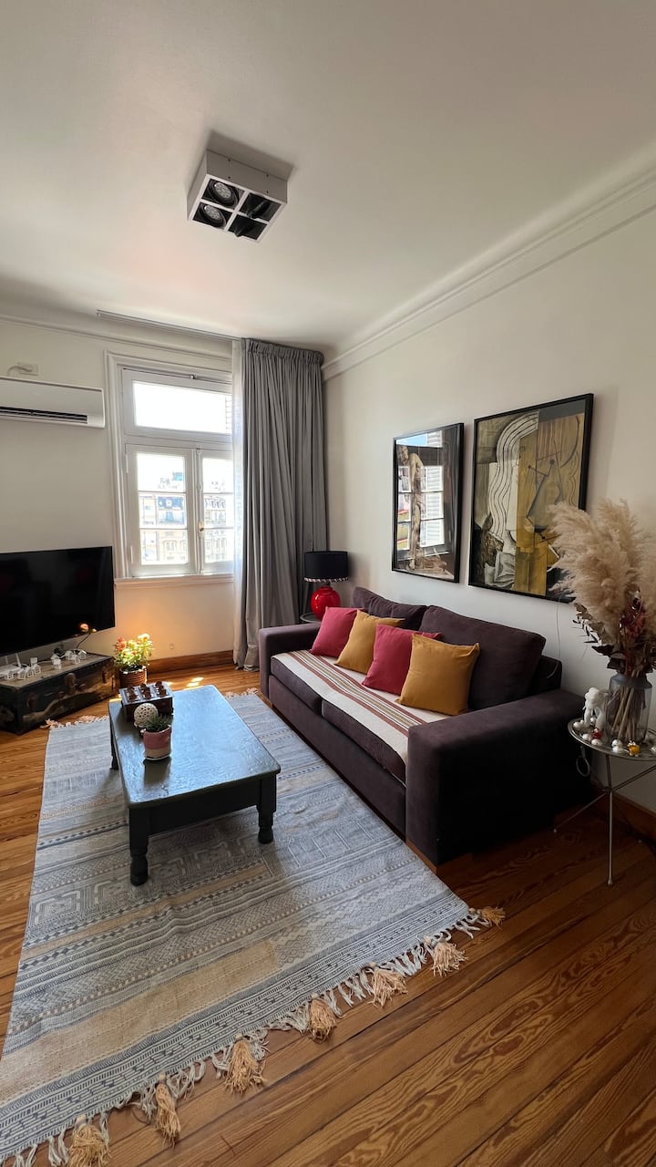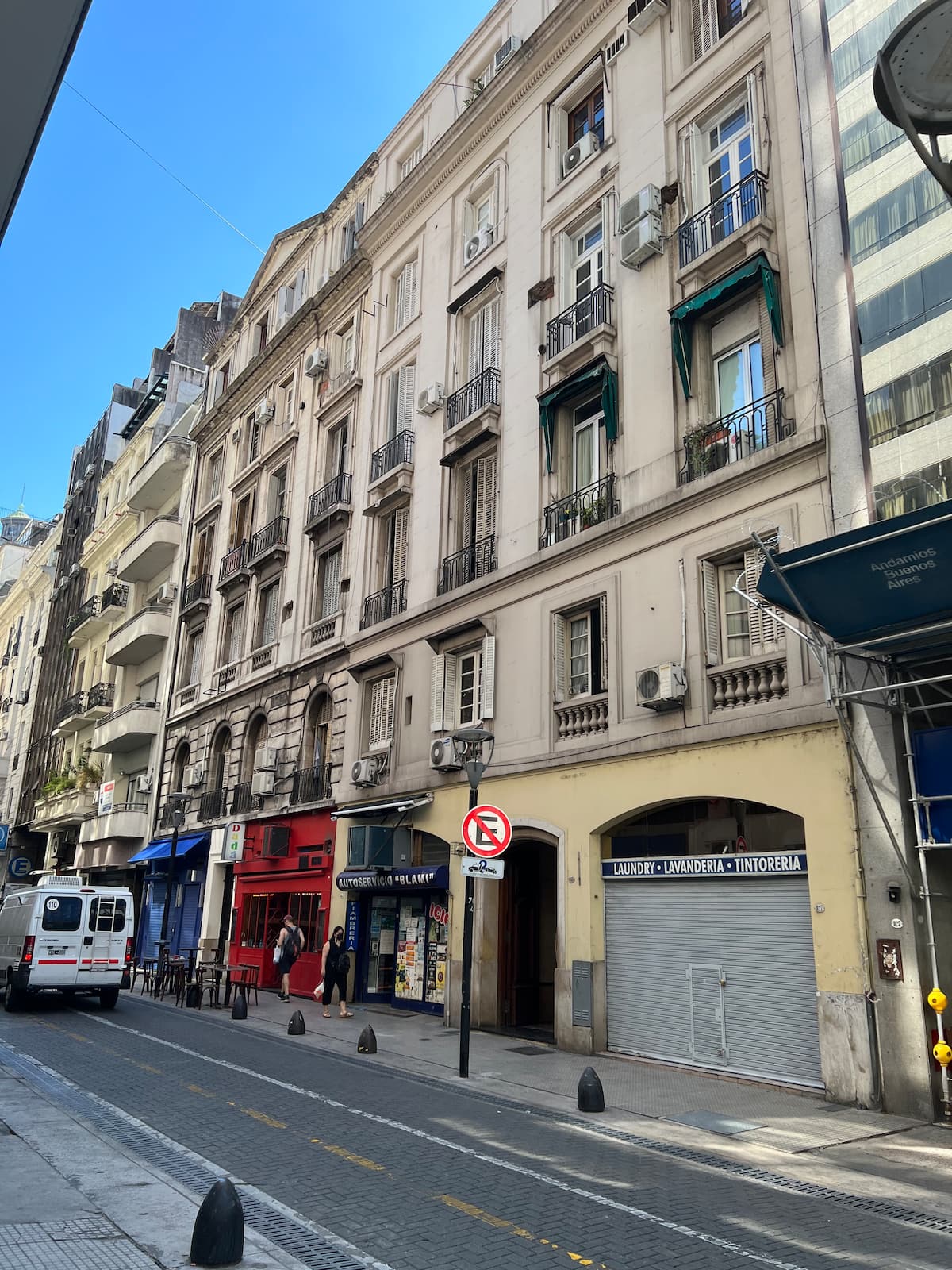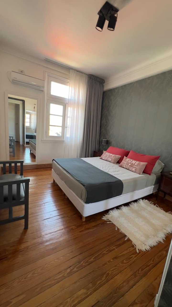 Apartamento em edifício de estilo clássico em Retiro, com iluminação natural. Conta com 2 unidades de ar-condicionado (quente/frio), piso de madeira e pé-direito alto. O imóvel inclui internet de alta velocidade e TV Smart de 55”, além de cama queen (1,60 x 2,00 m) e armário com portas de espelho. Localizado nas ruas San Martín e Paraguay, a 2 quadras da Plaza San Martín; há estacionamento pago em frente. Roupas de cama e toalhas estão incluídas, com possibilidade de extras caso um terceiro hósp