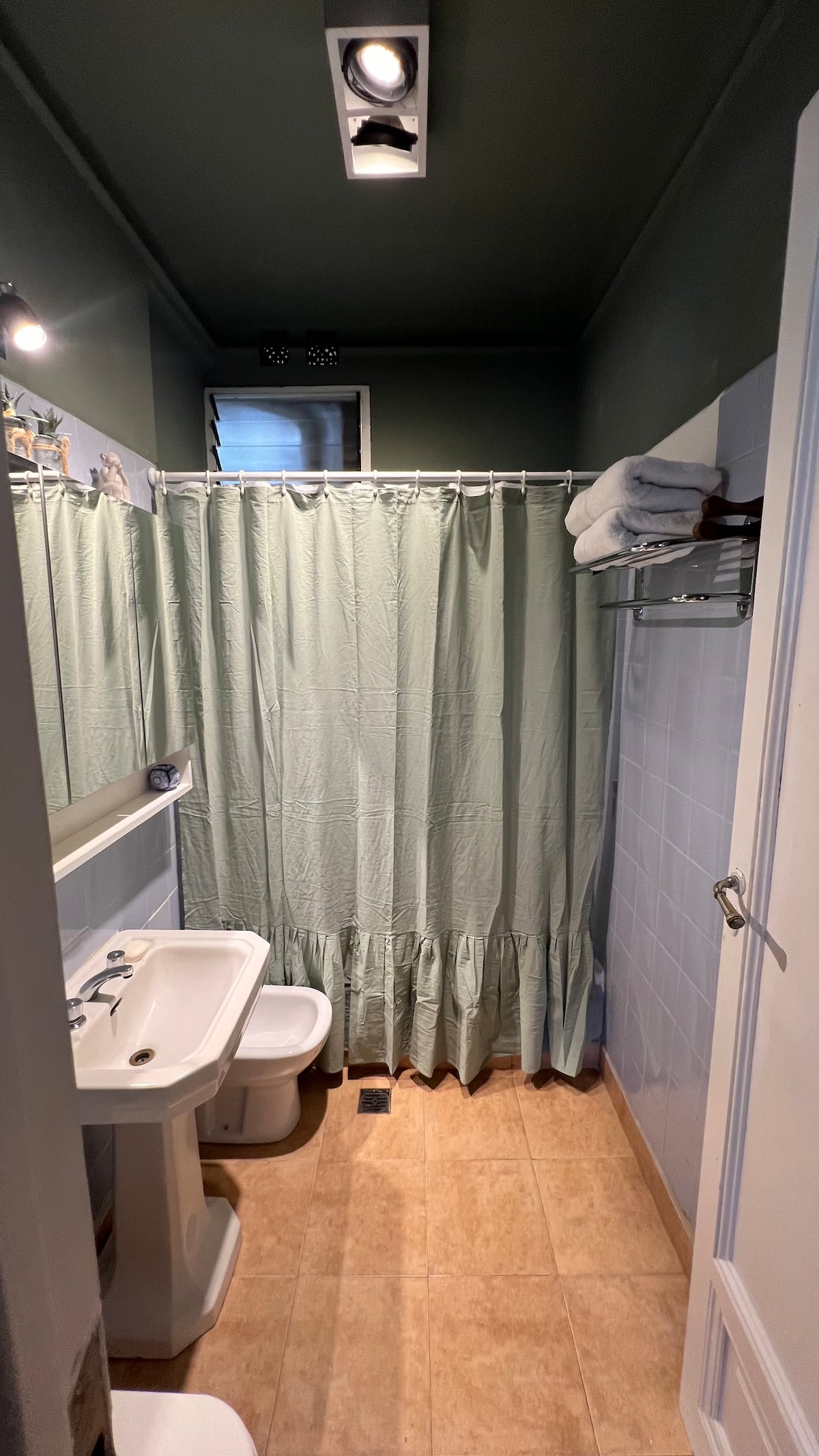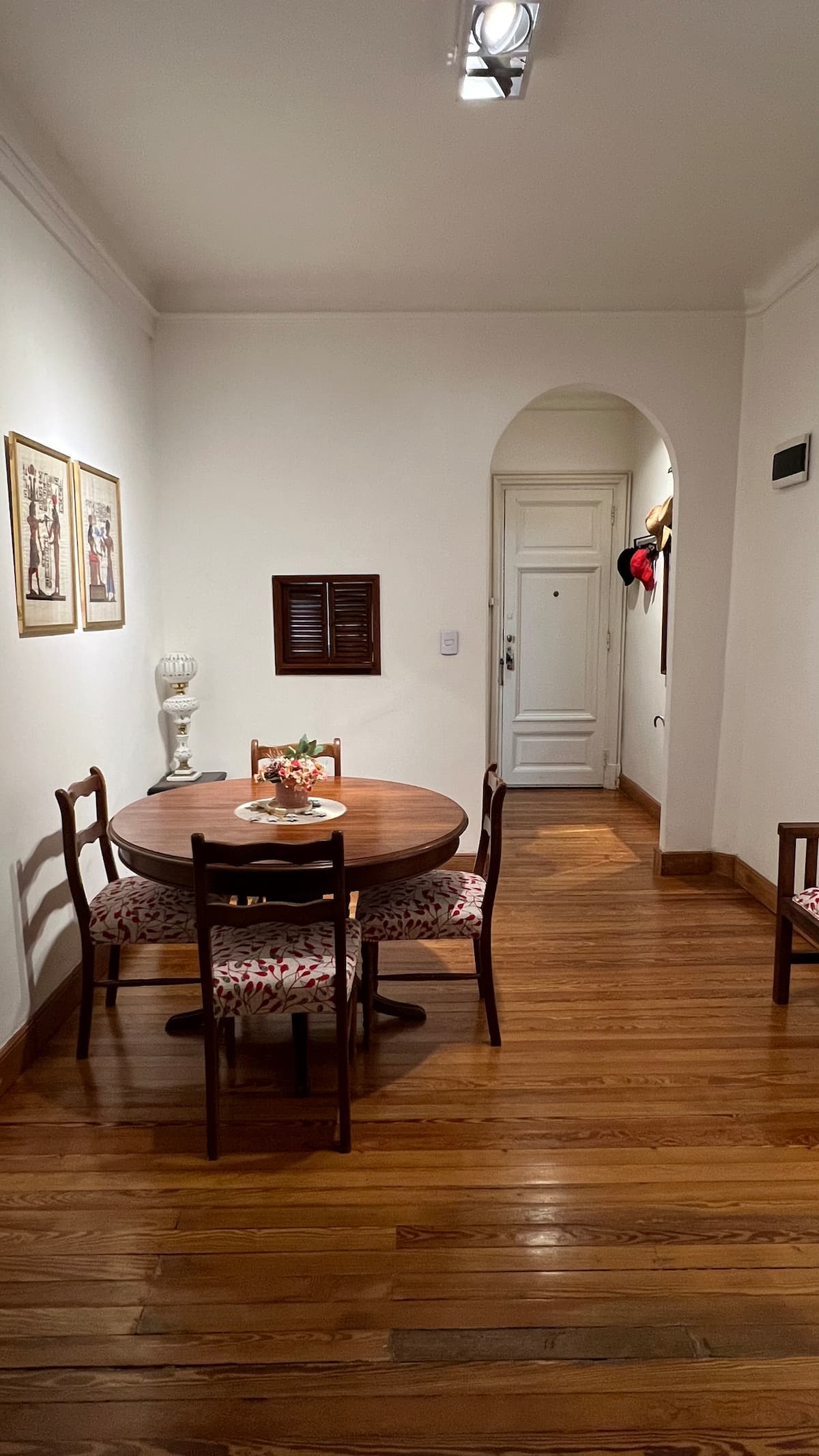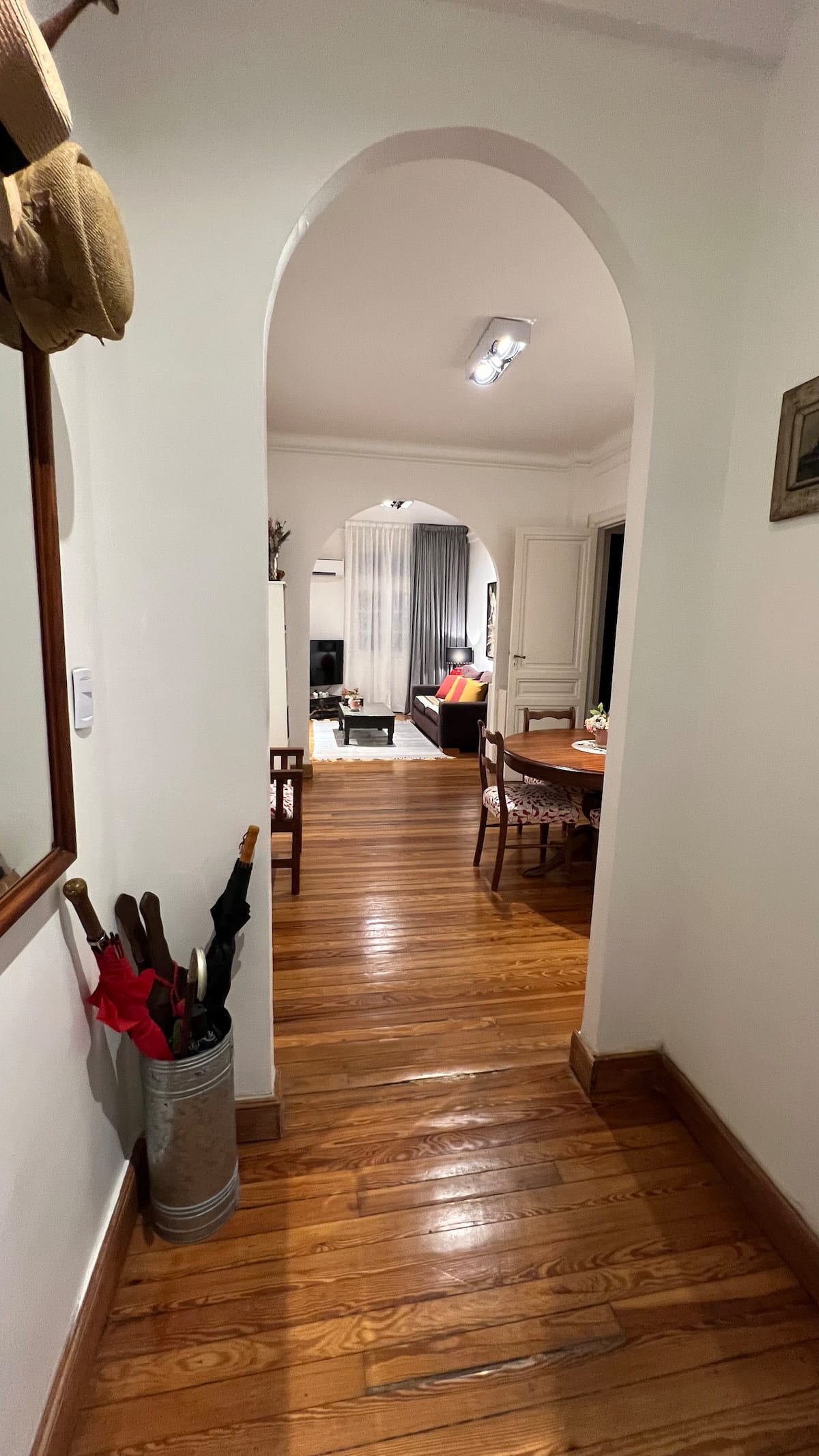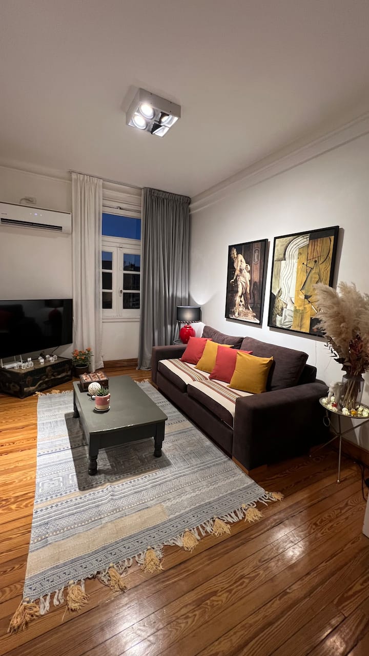 Apartamento em edifício de estilo clássico em Retiro, com iluminação natural. Conta com 2 unidades de ar-condicionado (quente/frio), piso de madeira e pé-direito alto. O imóvel inclui internet de alta velocidade e TV Smart de 55”, além de cama queen (1,60 x 2,00 m) e armário com portas de espelho. Localizado nas ruas San Martín e Paraguay, a 2 quadras da Plaza San Martín; há estacionamento pago em frente. Roupas de cama e toalhas estão incluídas, com possibilidade de extras caso um terceiro hósp