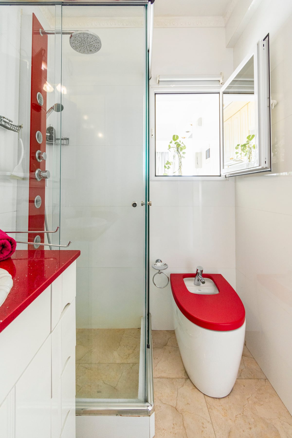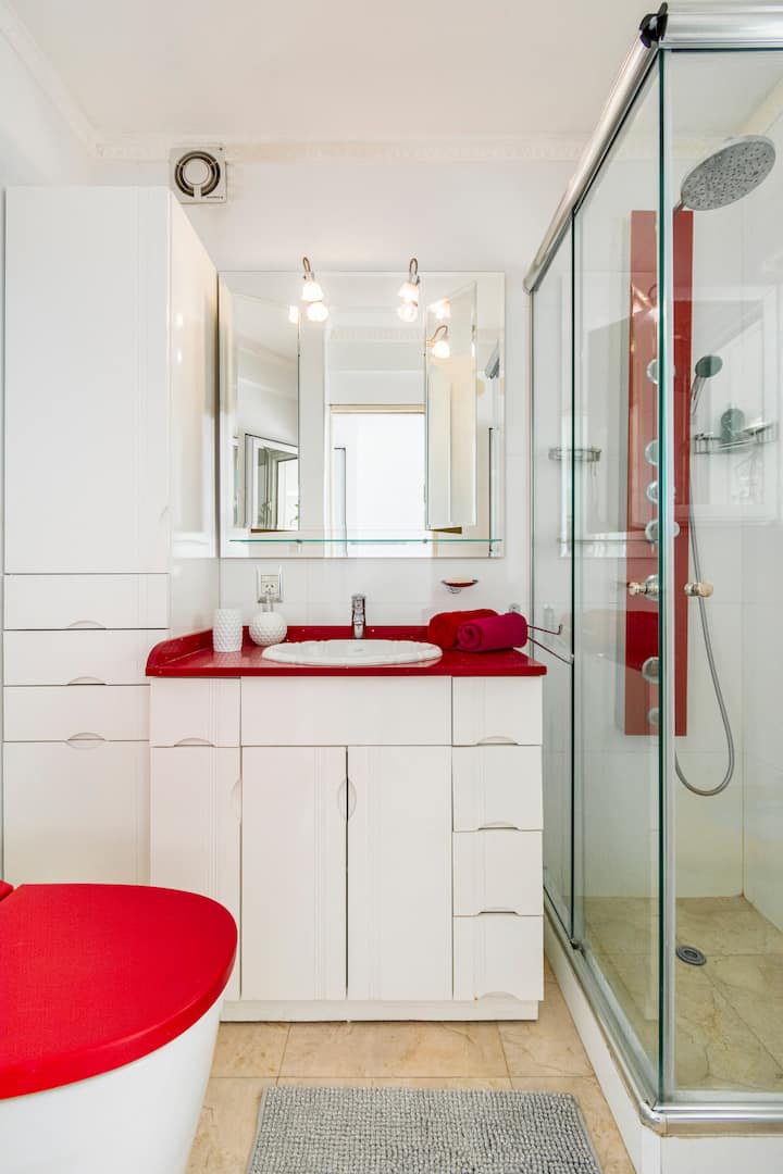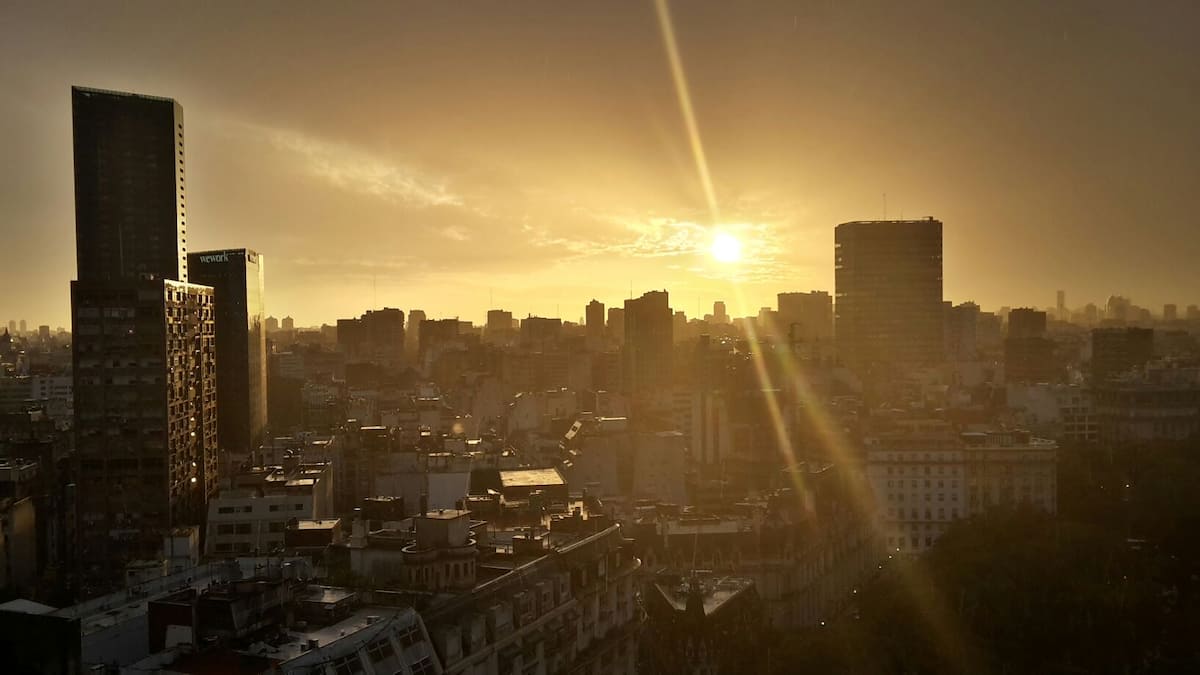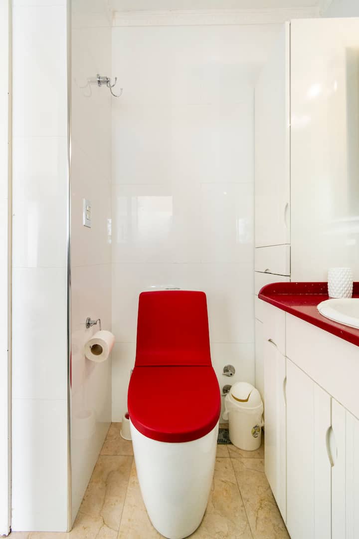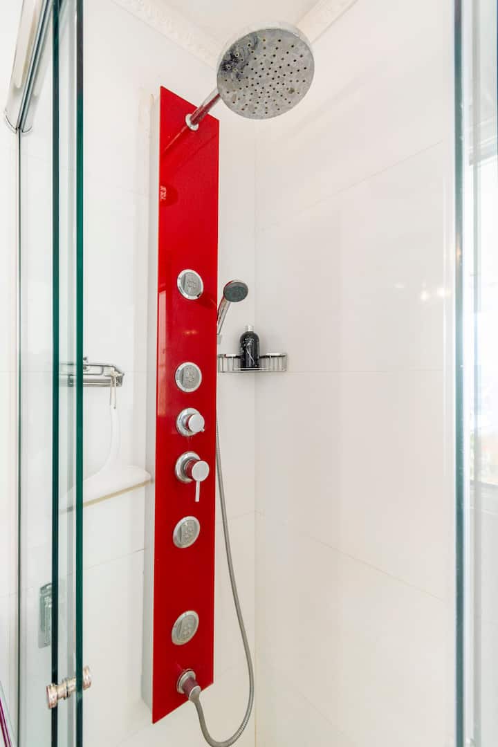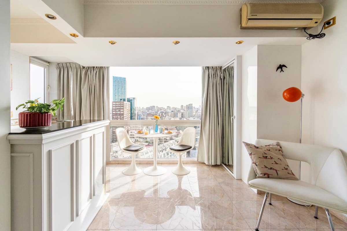 Studio mobiliado com ar-condicionado e aquecimento central no SKY HOUSE, no 21º andar. A unidade tem vista para a Plaza San Martín, a cidade e o Rio de la Plata. O estúdio inclui armários grandes com gavetas, máquina de lavar, cama, roupa de cama, secador de cabelo, ferro, TV a cabo e Wi‑Fi com boa conexão. O banheiro tem chuveiro, pia e vaso, além de espaço para armazenamento; a água quente é fornecida por caldeira central. A cozinha conta com geladeira, fogão, micro-ondas, mixer e torradeira.