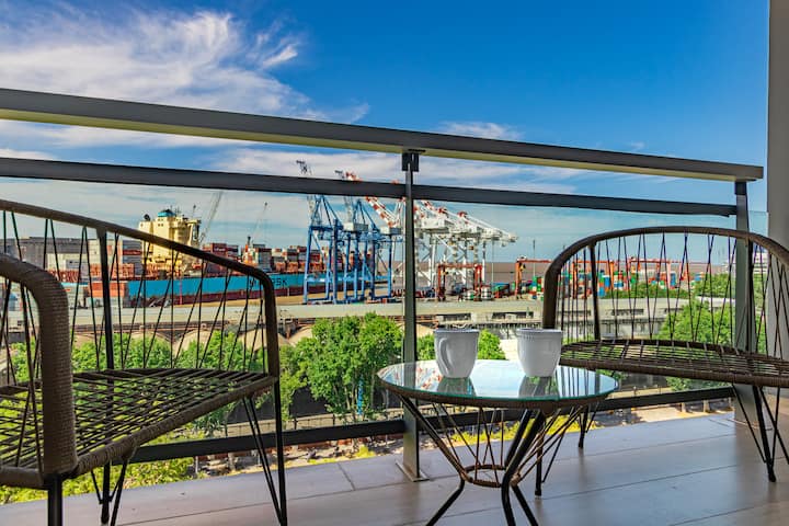 Studio mobiliado no Retiro com varanda e vista para o porto