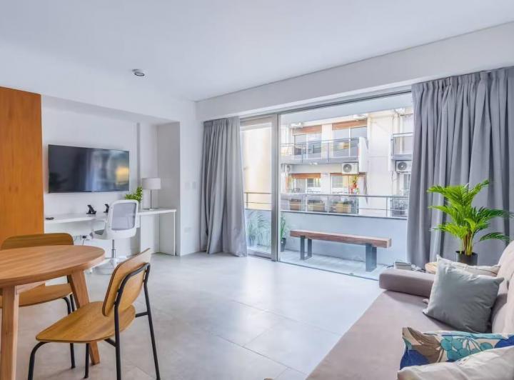 Kitnet de 1 ambiente novo (nunca habitado) com cozinha integrada com geladeira, banheiro completo e planta livre. Tem varanda sobre a calle Esmeralda e climatização individual com sistema VRV frio/calor, além de água quente por termotanque individual. O edifício Palacio Paz xxi, em frente à Plaza San Martín, tem duas entradas (uma pela Av. Santa Fe e outra pela calle Esmeralda) que se conectam a um lobby no térreo com vista para os jardins do Círculo Militar. Oferece portaria com visor, seguranç