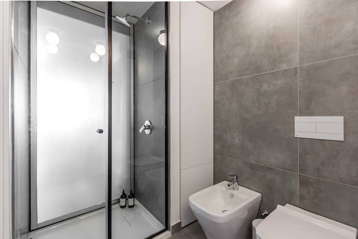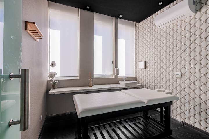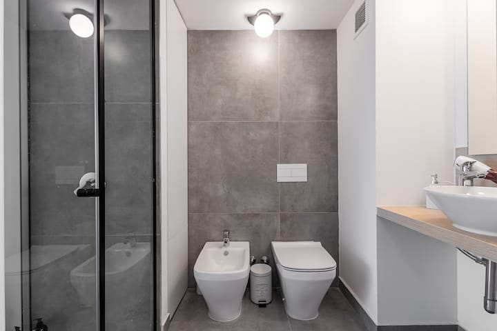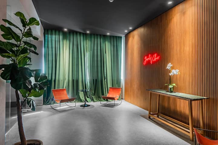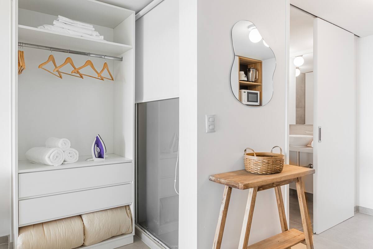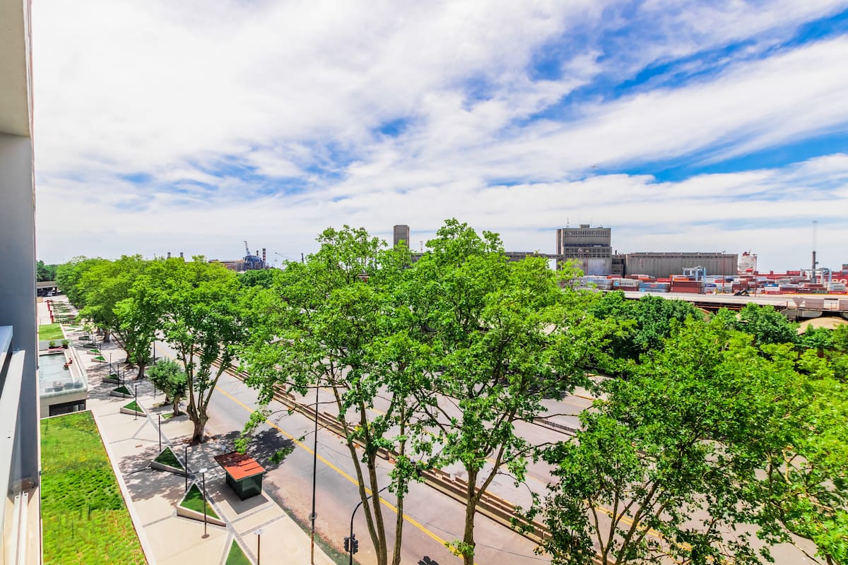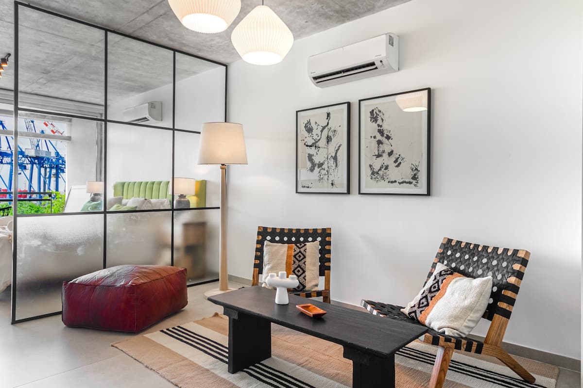 Studio no 6º andar, de frente e com vista para o porto e para o Rio de la Plata, em Retiro. Varanda ampla com mesa e cadeiras. Está equipado com cortinas blackout, TV Smart de 50 polegadas e ar-condicionado quente/frio.