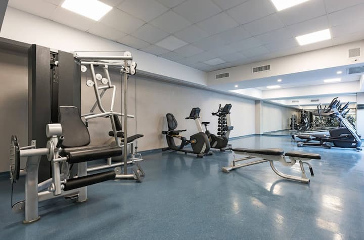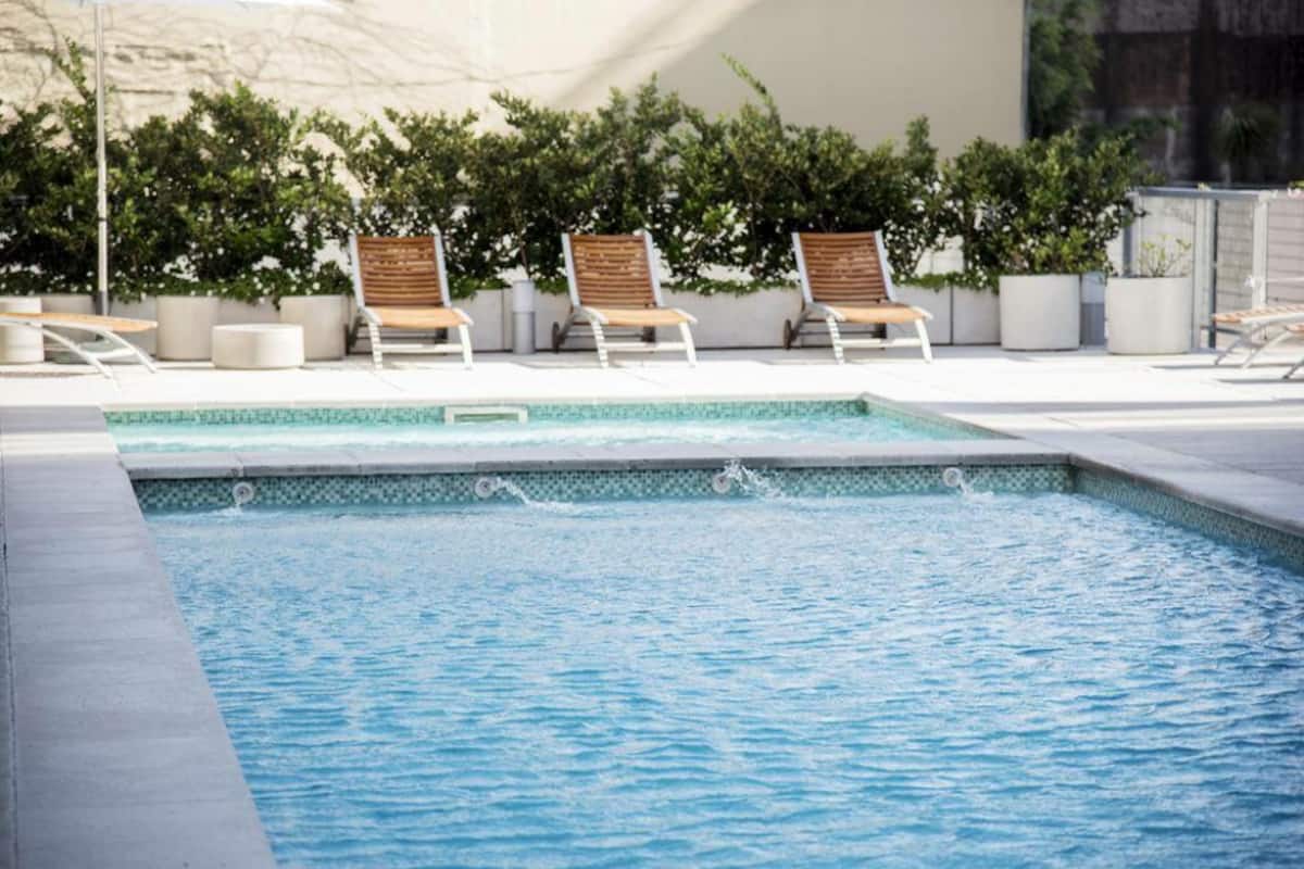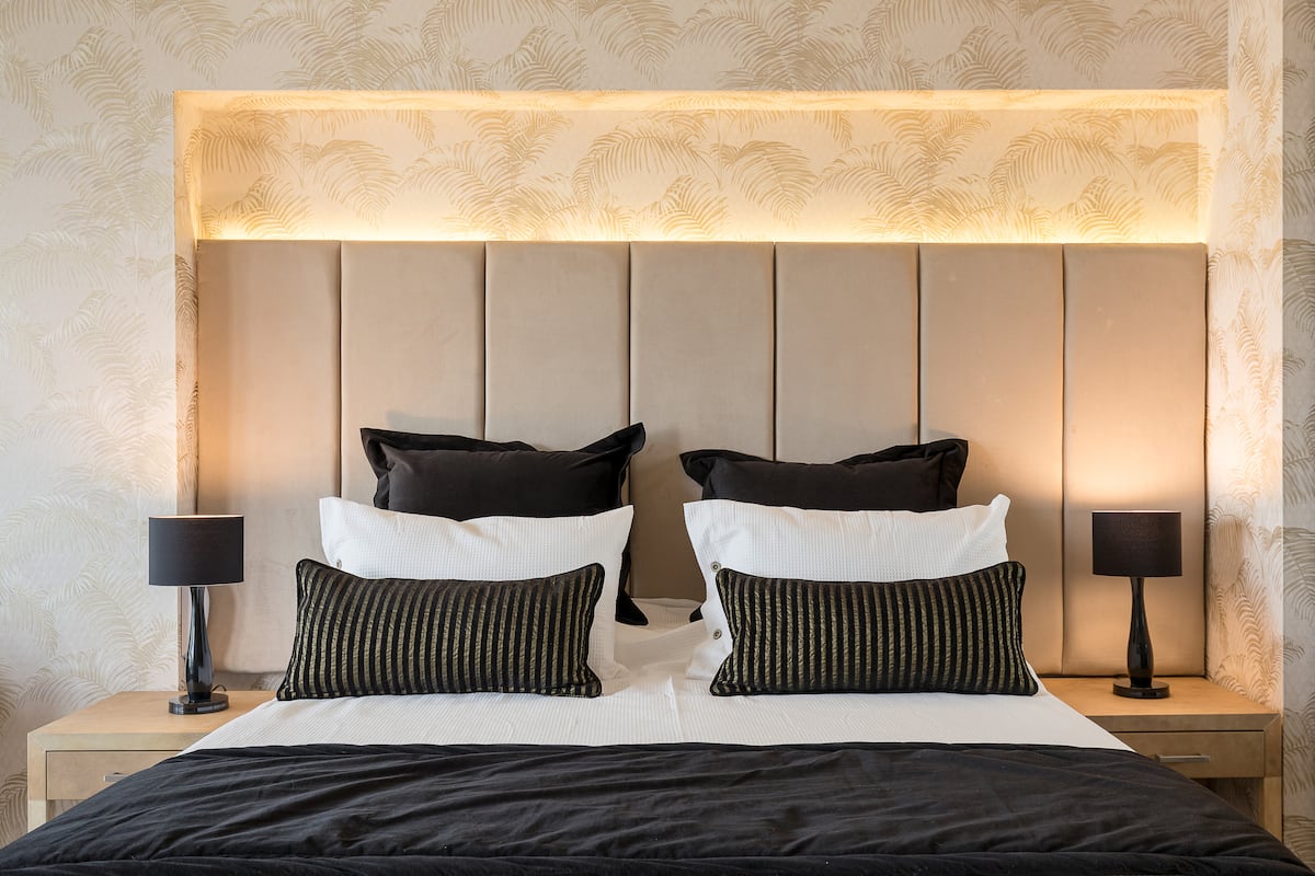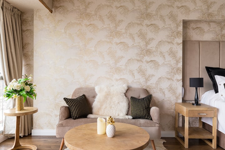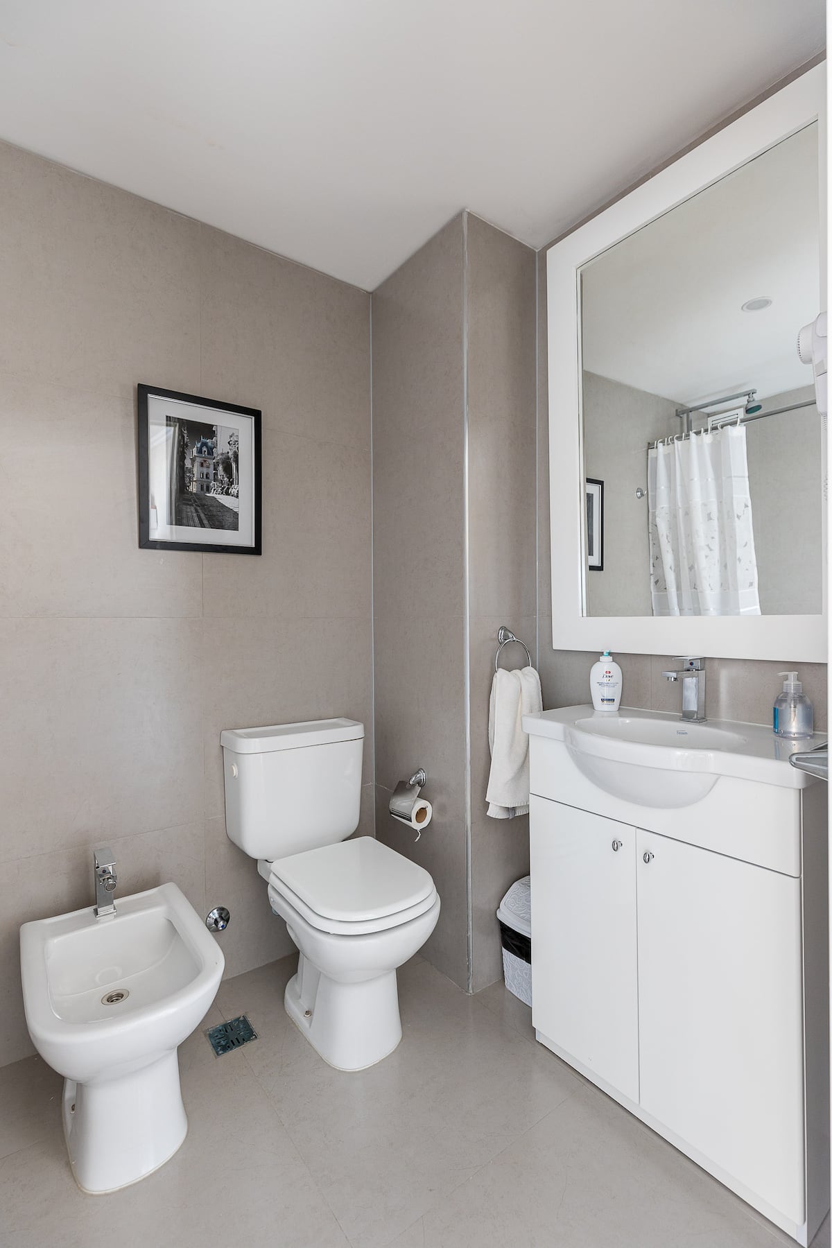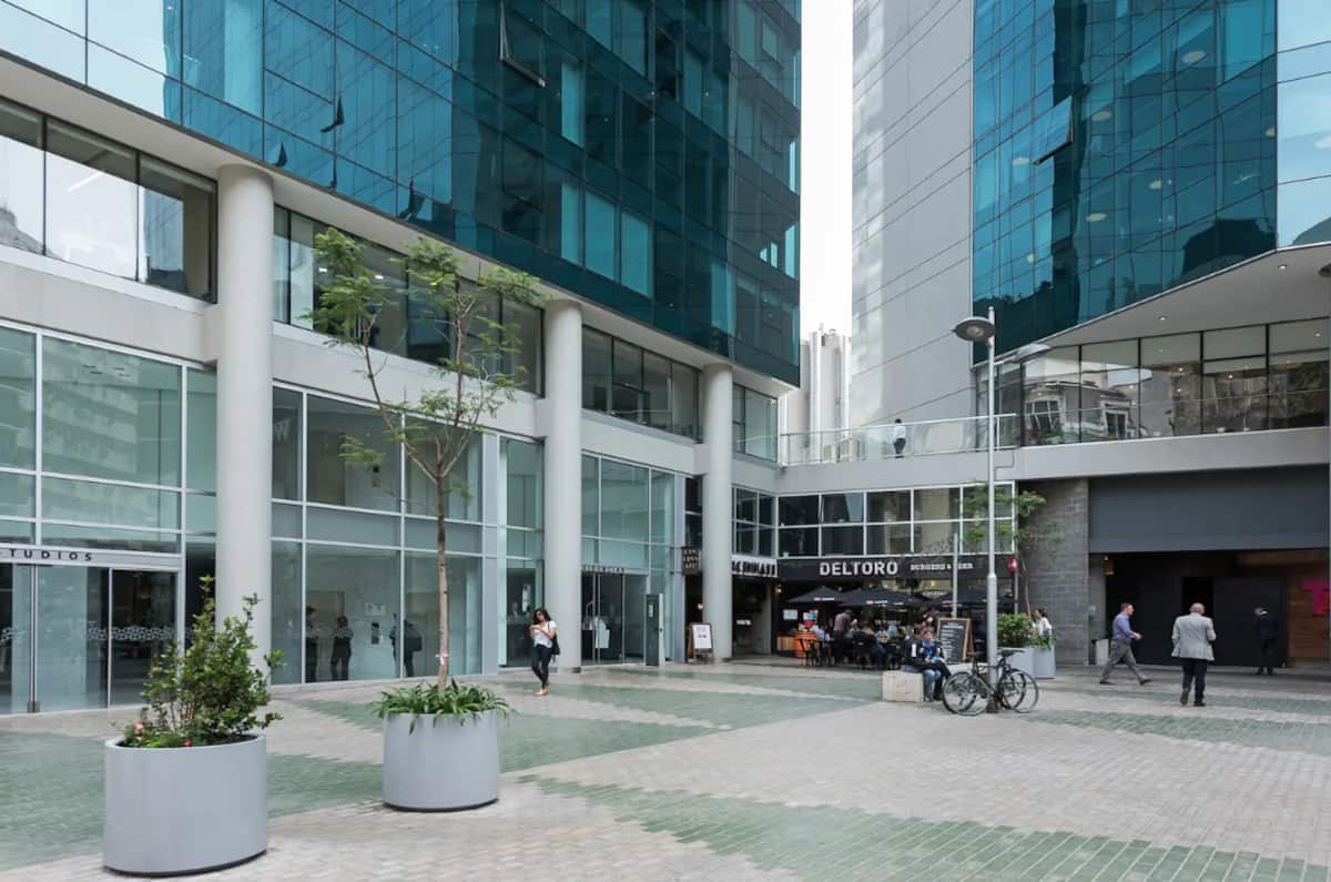 Estúdio no 21º andar da torre Bellini Esmeralda, em Retiro. Inclui varanda e área com sala pequena, cama queen-size e mesa. Há Wi-Fi de 50 Mbps, além de acesso a piscina e academia no prédio.