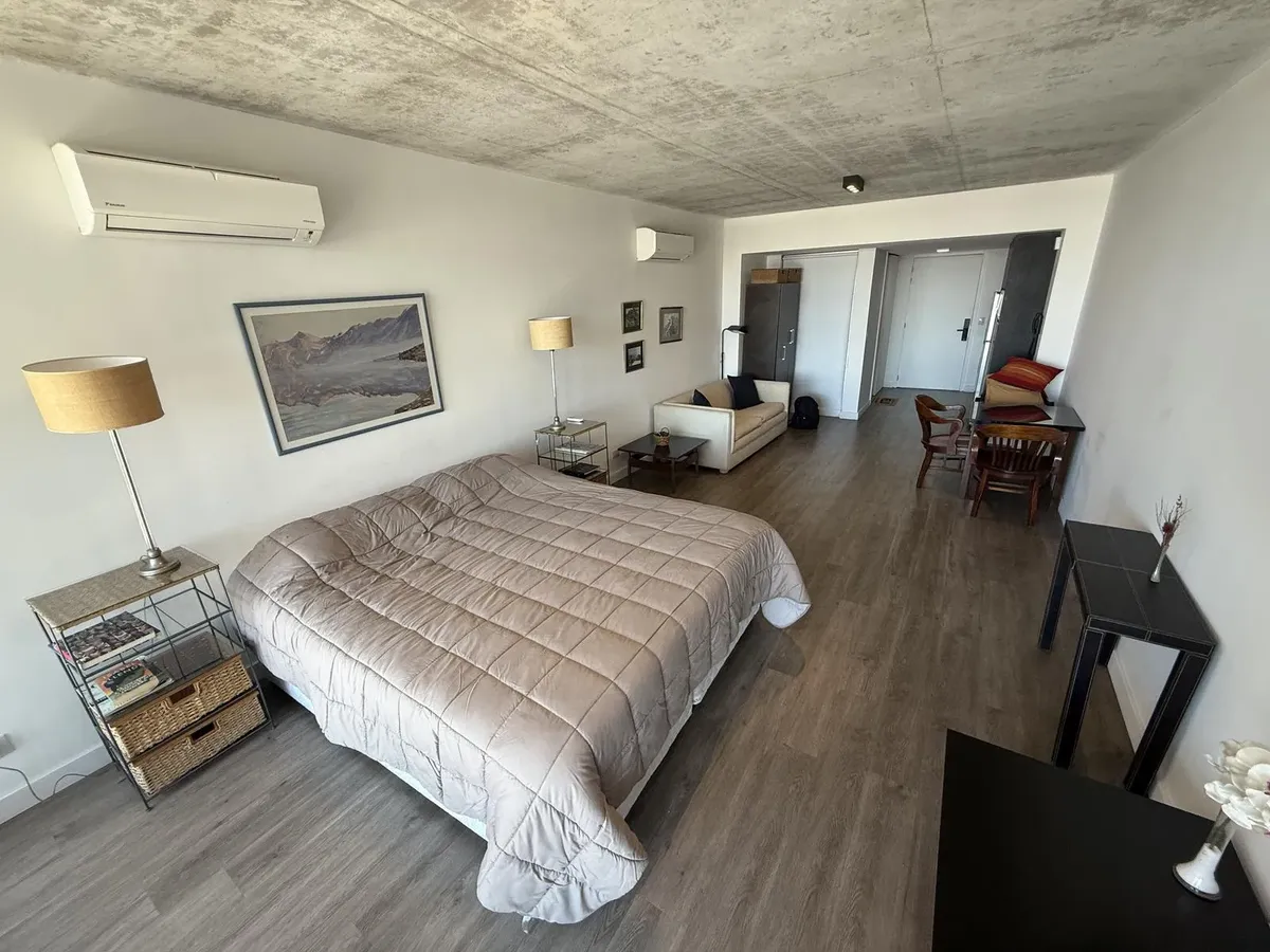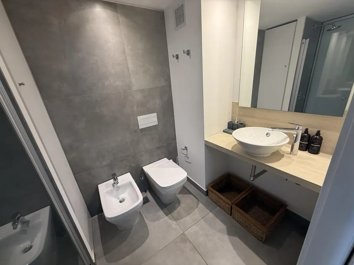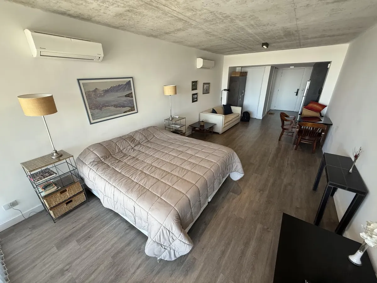 Apartamento de 1 ambiente em Retiro, com disposição lateral, no Quartier Retiro. O edifício oferece business center, 3 salas de reuniões e auditório, além de lounge, wellness center e academia. Há sauna, sala de massagens, piscinas coberta aquecida e ao ar livre com solário, lavanderia e vestiário para funcionários, além de 2 quiosques (quinchos), terraço verde e área de mirante. Fica na área do Paseo del Bajo, próximo à Estação Retiro, Terminal de ônibus de Retiro, Plaza San Martín e Torre Monu