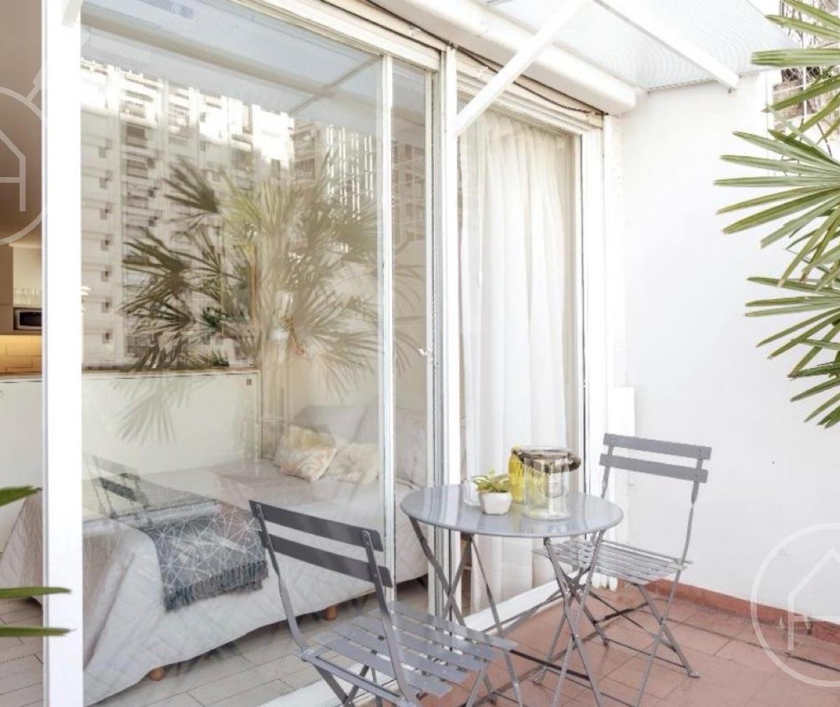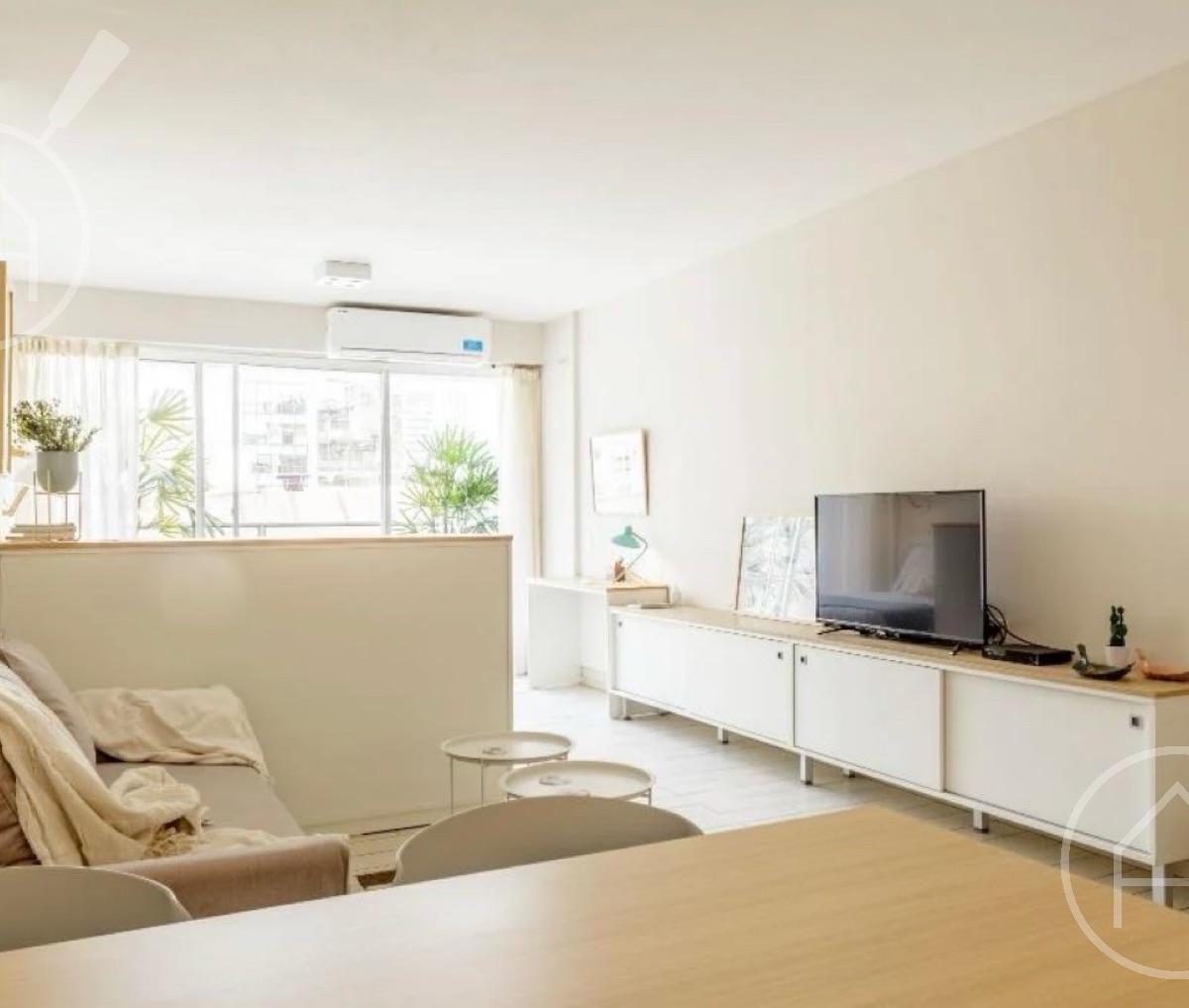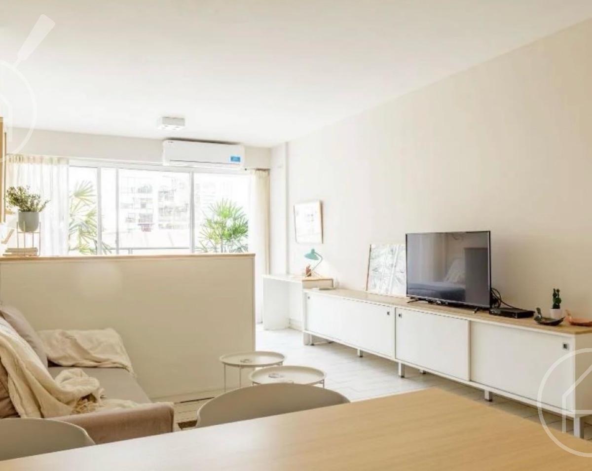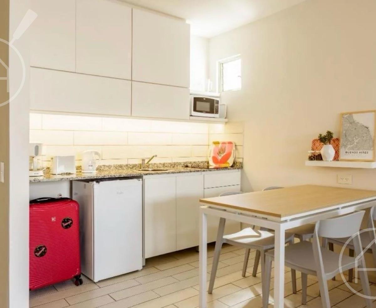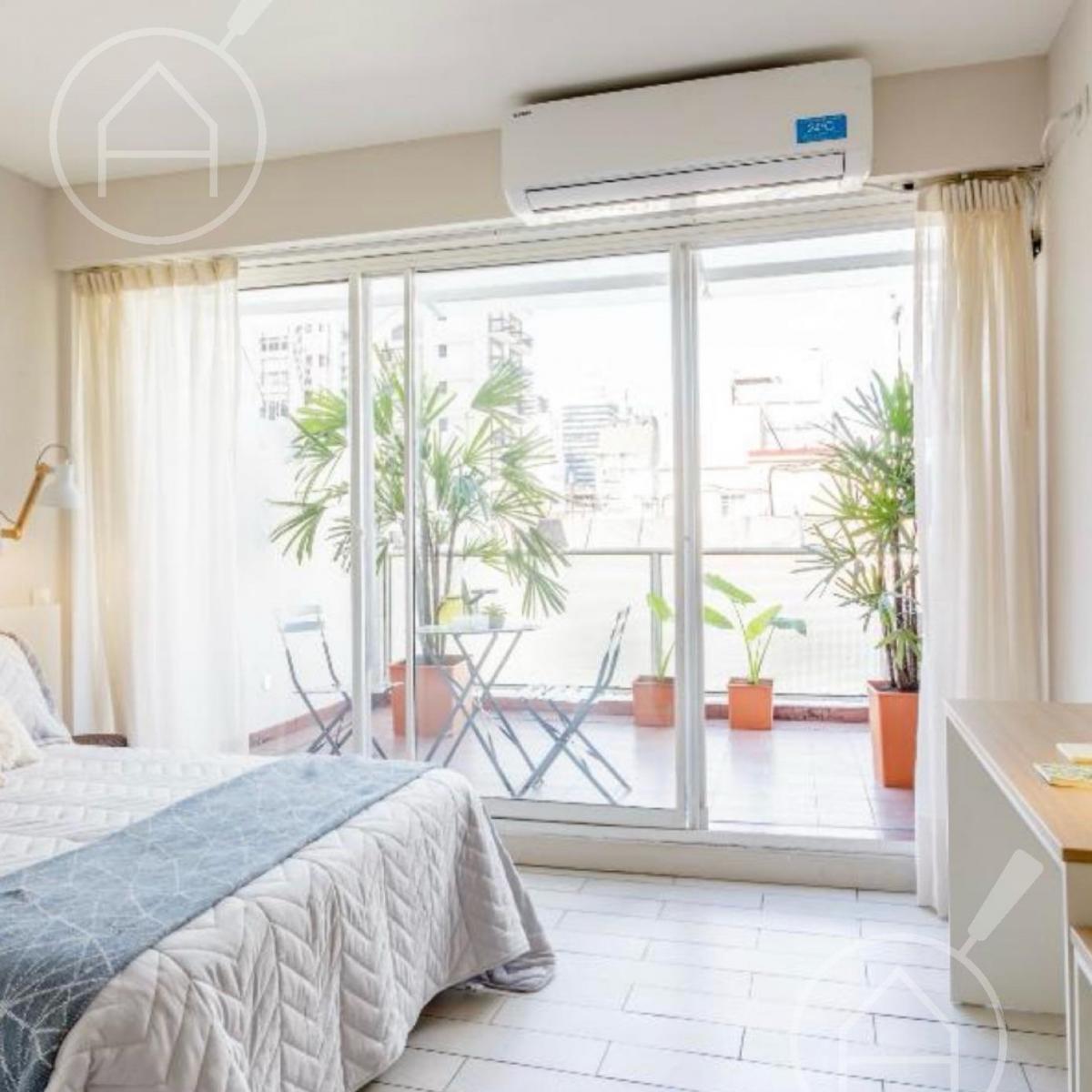 Apartamento-estúdio reformado no 9º andar, com varanda-terraço. Cozinha integrada e banheiro completo. Ar-condicionado frio/quente. Condomínio de aproximadamente ARS 130 e serviços a cargo do inquilino. Aluguel mínimo de 3 meses até 1 ano, com renovação. Localização em Retiro, na região da Plaza San Martín e Galerías Pacífico.