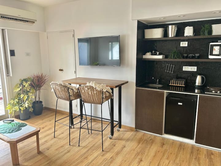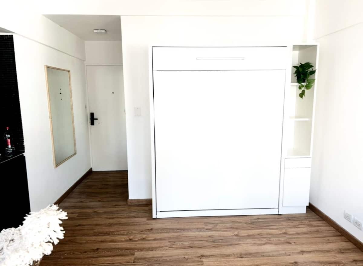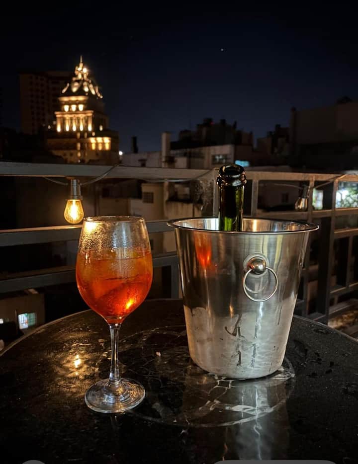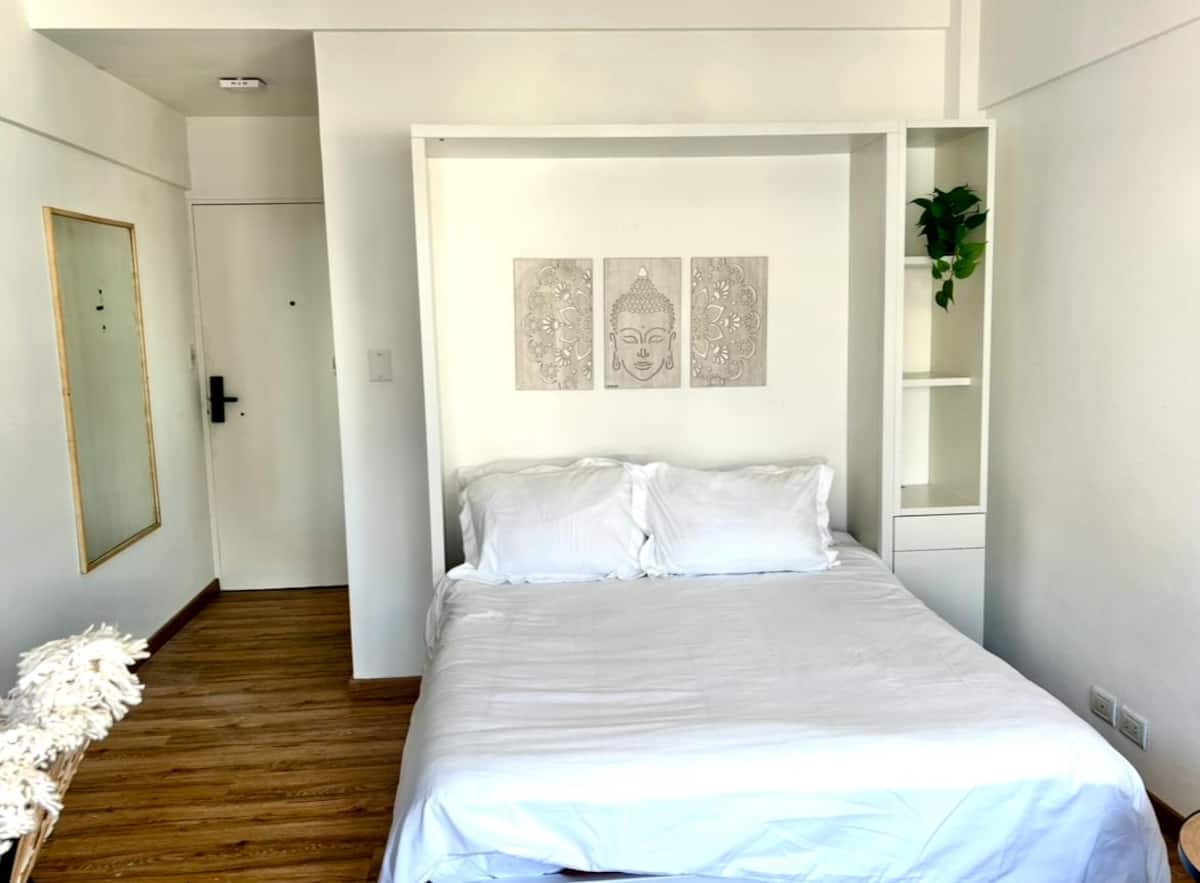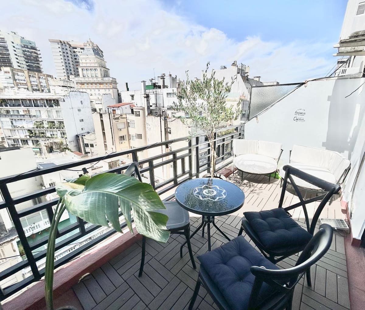 Kitnet (ambiente único) com varanda/terraço. Fica a 1,5 quarteirão da Av. 9 de Julio, da Av. Libertador e do Palacio Paz, na Plaza San Martín. Há estacionamento pago a um quarteirão; a região do entorno da Chancelaria tem bares, pontos turísticos e restaurantes.