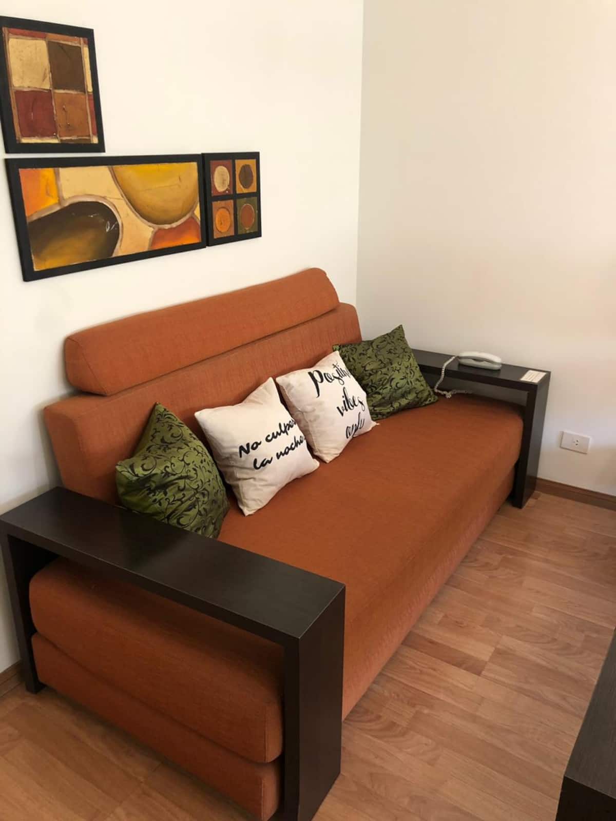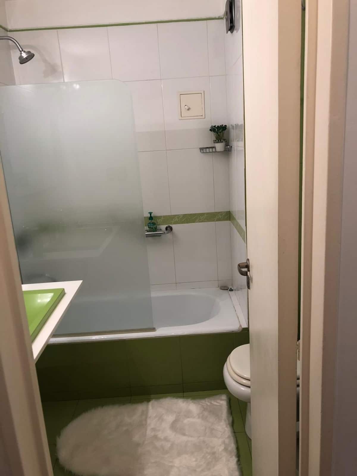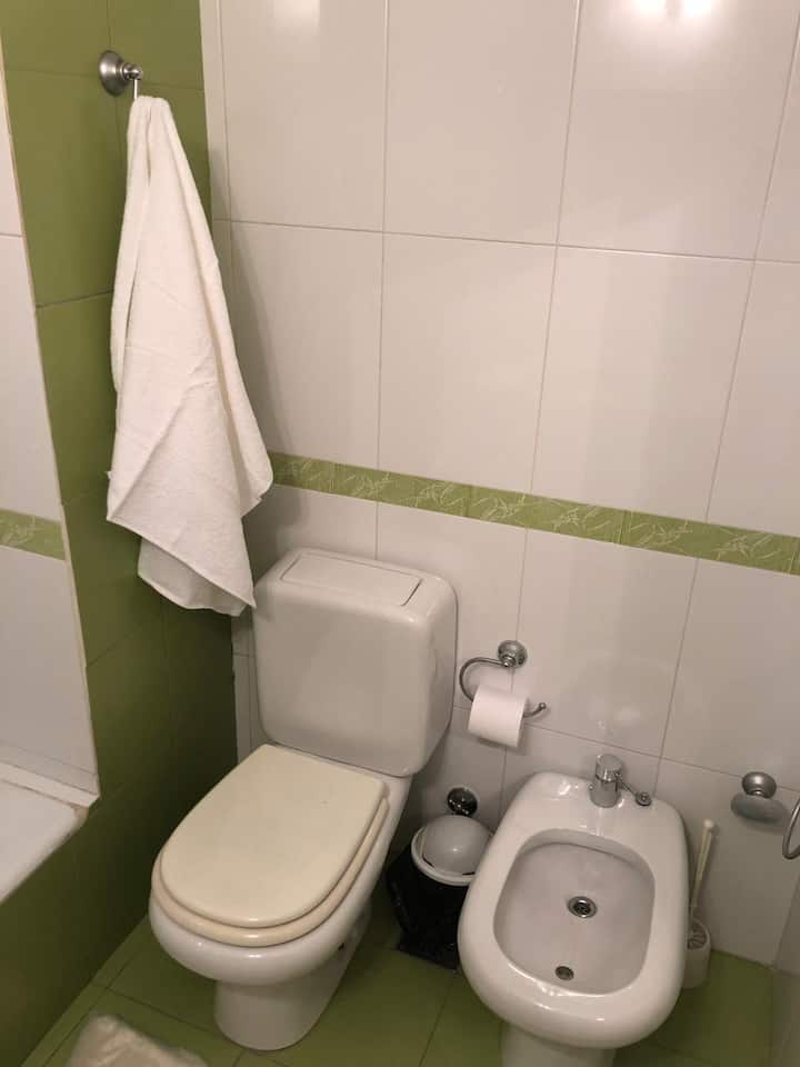 Kitnet mobiliada em Retiro/Recoleta. Ambiente único com divisória que funciona como mesa, ar-condicionado para frio e aquecimento por piso radiante. Inclui TV a cabo e Wi-Fi, cofre, cama e roupa de cama, toalhas de hotel e itens de banho; o banheiro tem banheira com chuveiro. Cozinha com geladeira, micro-ondas, cafeteira e itens completos de cozinha, além de utensílios e ferro. O prédio tem 4 elevadores e segurança 24 horas.