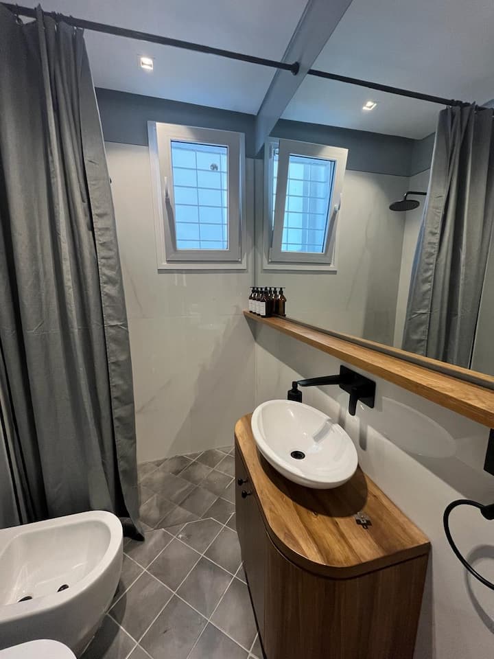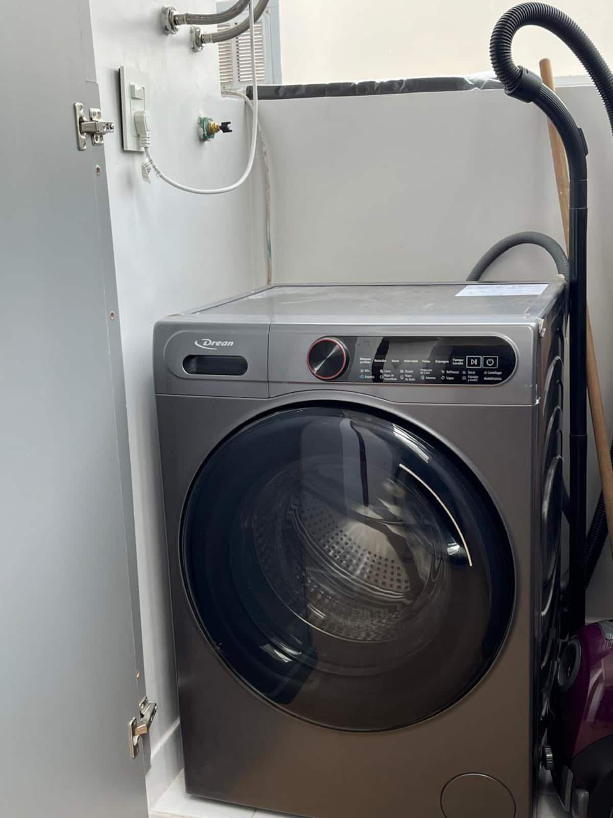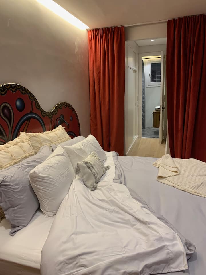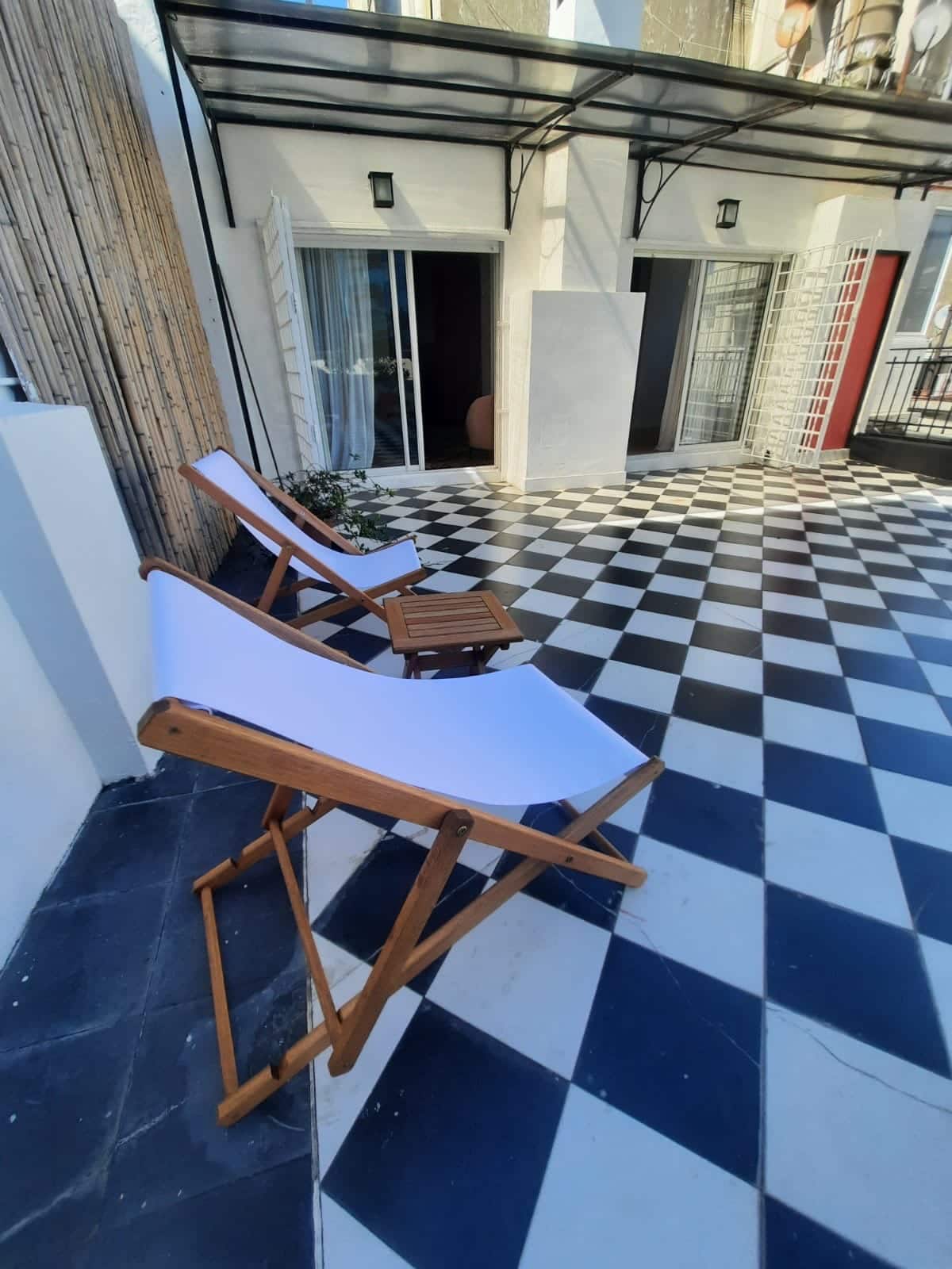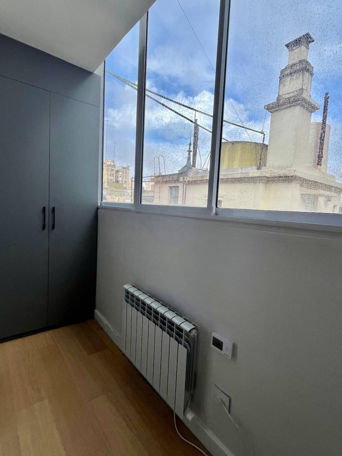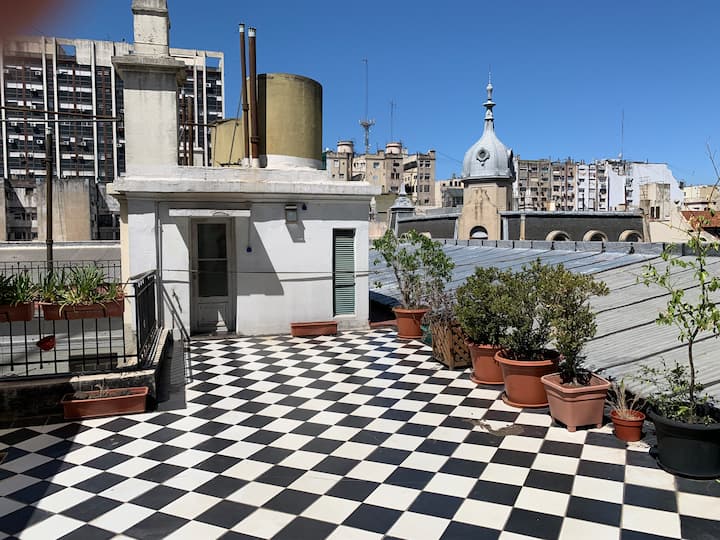 Loft no último andar com 68 m² em Retiro, com área de dormir na parte de trás que pode ser totalmente separada por cortinas móveis do teto ao chão. A área de estar inclui centro de entretenimento com tela de projeção de 90 polegadas embutida no teto, além de mesa de trabalho com vista para a varanda. A entrada dá acesso a uma varanda privativa de 68 m² com portas de correr de vidro; a unidade tem armários e banheiro principal junto à área de dormir, além de lavabo e lavanderia com máquina de lav