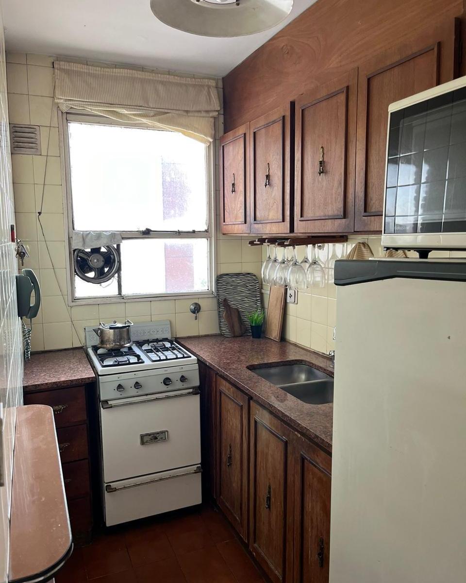 Kitnet de 1 ambiente com frente para a Plaza San Martín, no bairro Retiro. Inclui cama de casal, espaço de armazenamento, cozinha com fogão e forno a gás, micro-ondas e geladeira, além de utensílios e louças. Tem lavadora e aquecimento central. Não inclui TV. Condomínio e serviços ficam a cargo do inquilino; condomínio de julho: $ 110.000.