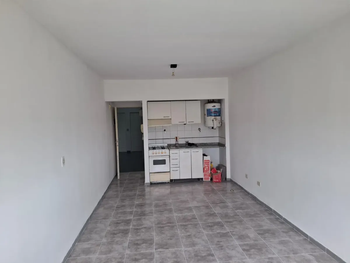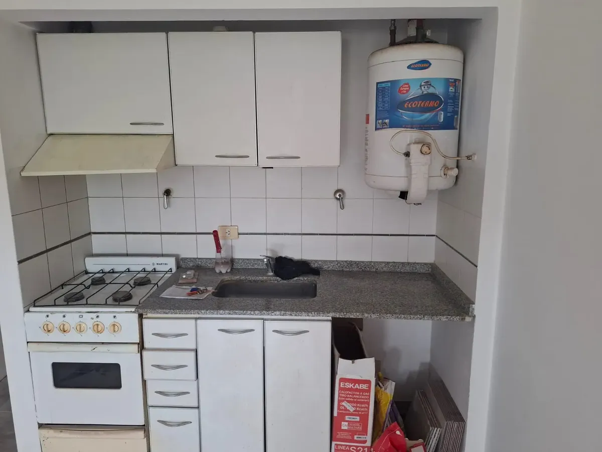 Kitnet de 26 m² em San Miguel. Possui cozinha e living integrados, com calefação e aquecedor de água (termotanque). O prédio tem elevador.