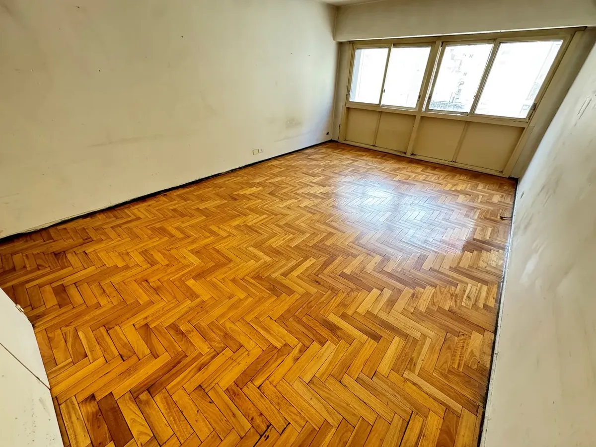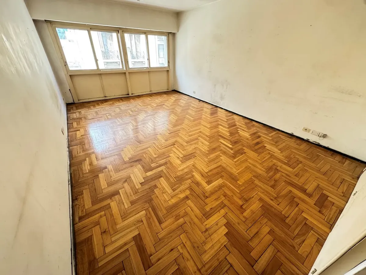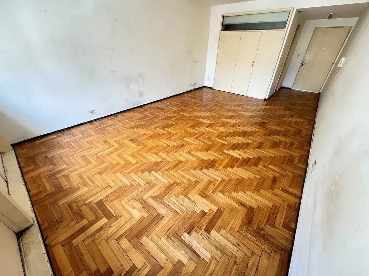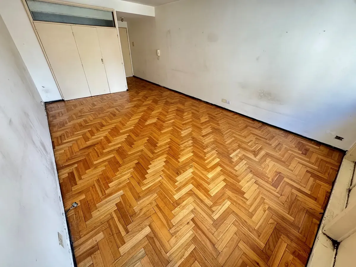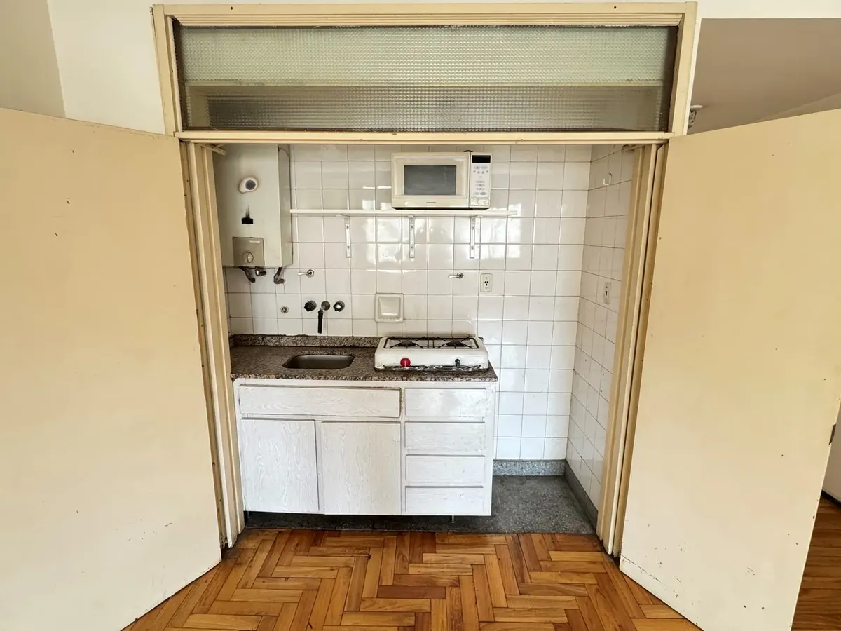 Kitnet de 1 ambiente de frente para a rua, com piso de parquet e banheiro completo. Localizada na zona de Tribunales, no centro de Buenos Aires.