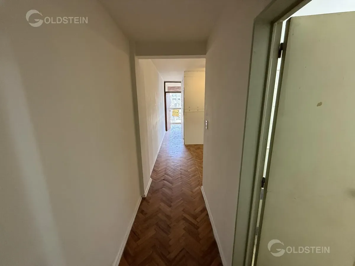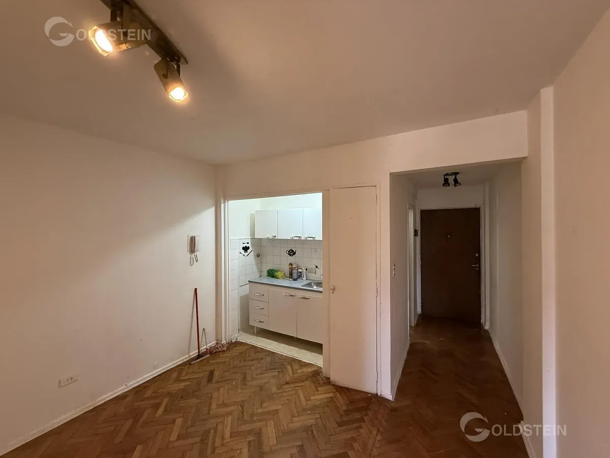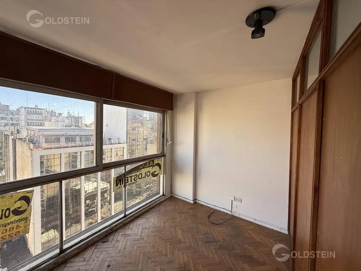 Apartamento tipo kitnet com ambiente dividido de frente e boa luminosidade. Não tem gás. Fica na Av. Corrientes 1600, entre Montevideo e Paraná, na linha do Subte B, com linhas de ônibus e comércio próximos, incluindo a área do Obelisco.