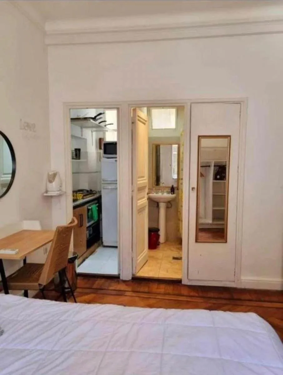 Kitnet para aluguel em San Nicolás, Buenos Aires, na Calle Uruguay entre Viamonte e Tucumán. Unidade no piso alto, acessada por elevador, com orientação ao norte e disposição interna. Possui cozinha com armários superiores e inferiores, espaço principal com armários embutidos e 1 banheiro completo. Área total aproximada de 24 m², sendo 18 m² cobertos. Condomínio em 29/12/2025 de aproximadamente $150.000.
