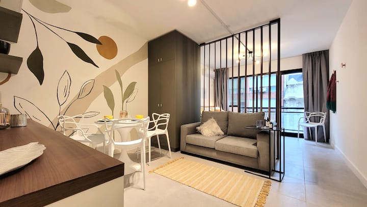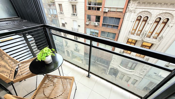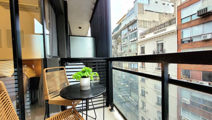 Kitnet em San Nicolás, em Tribunales, com um ambiente. Inclui cozinha equipada e banheiro privativo. Há Wi-Fi, ar-condicionado e aquecimento. A localização é próxima da Avenida Corrientes e do Obelisco.
