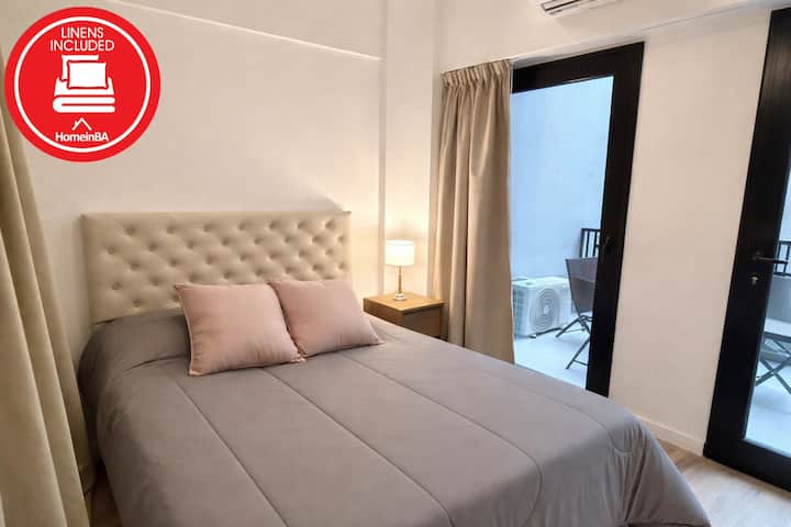 Kitnet em edifício novo, na área central de San Nicolás. Unidade mobiliada e equipada com ar-condicionado, aquecimento, cozinha, geladeira e secador de cabelo. Fica a curta distância do Obelisco, do Bullrich Patio, das Galerías Pacífico e do teatro Colón.